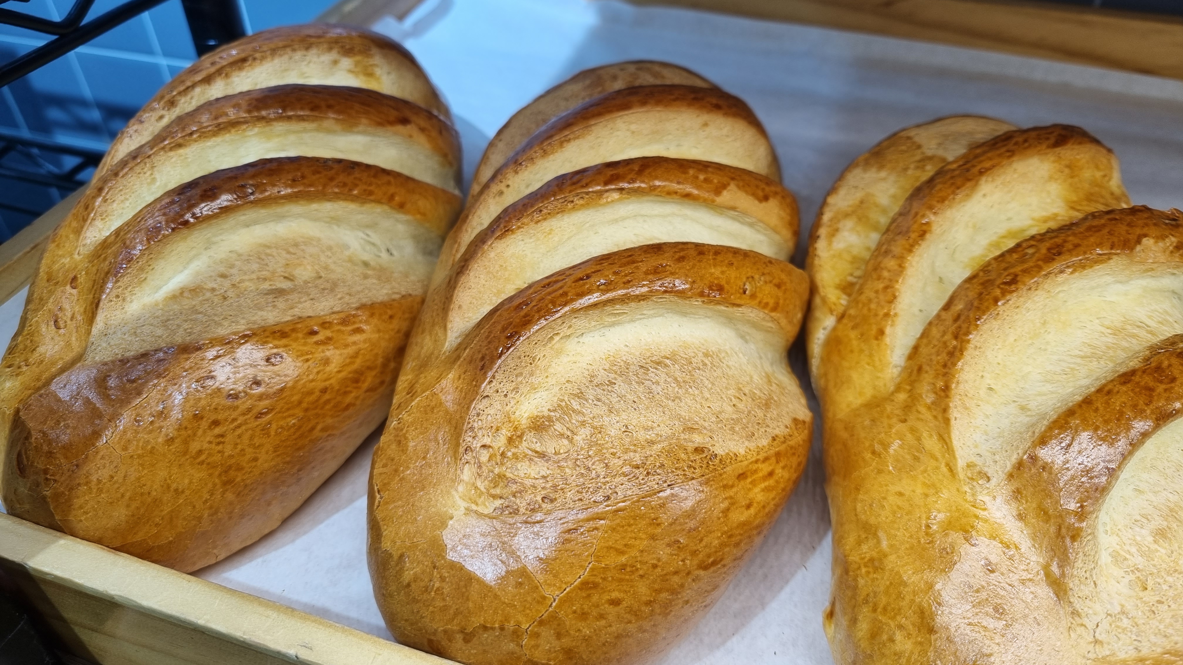 프랑스 바게뜨처럼 길죽하지 않고, 퉁퉁하고 투박한 느낌임.