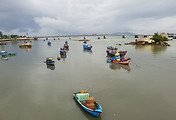 긴 다리와 돌섬. 그리고 흩어진 배들이 비안개와 섞여 멋진 풍경을 자아낸다.