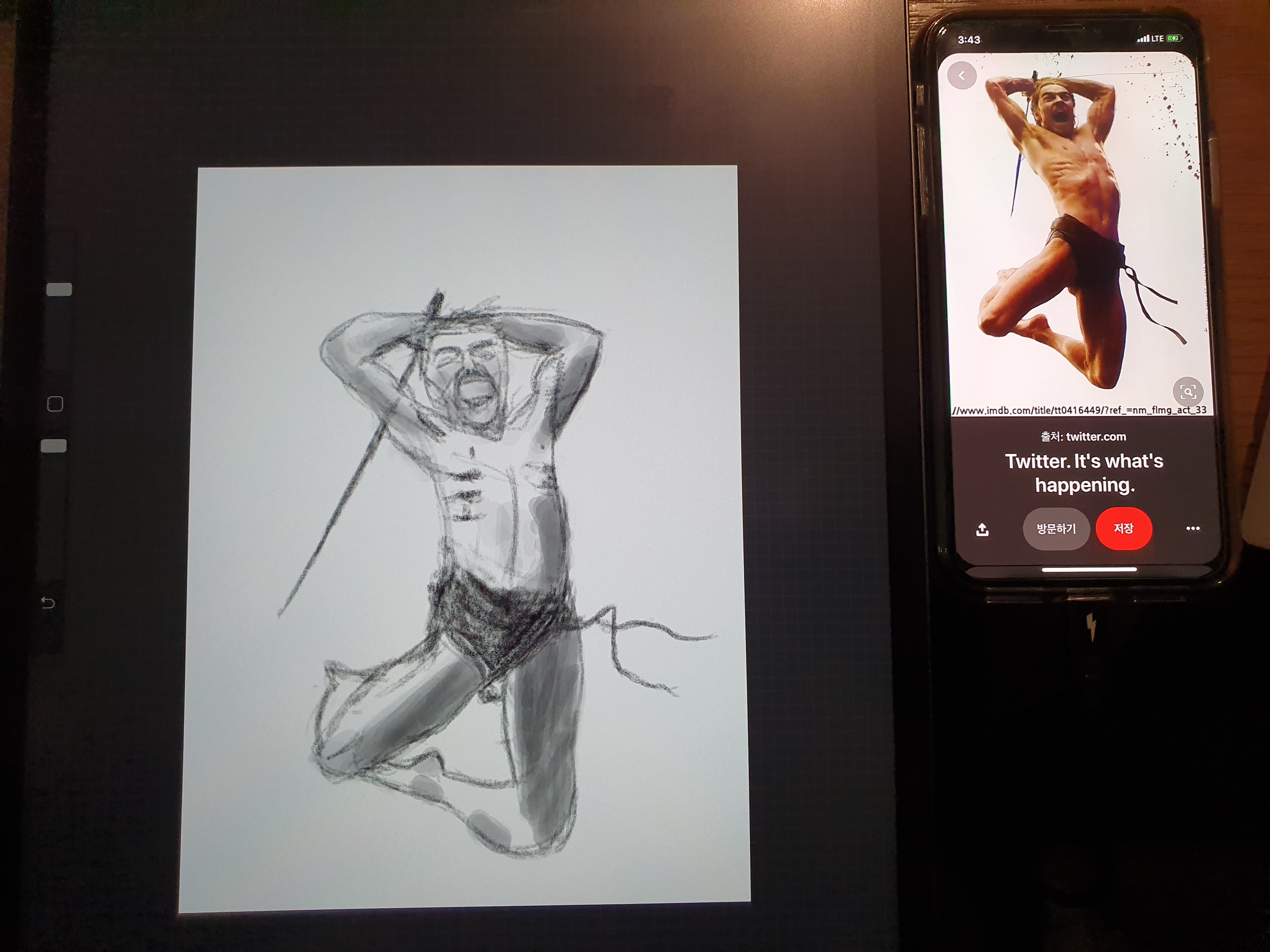 아주 인상적인 그림이 있어서 나도 한번 그려보고 싶어 그려본다고 아이패드를 빼았었다.
