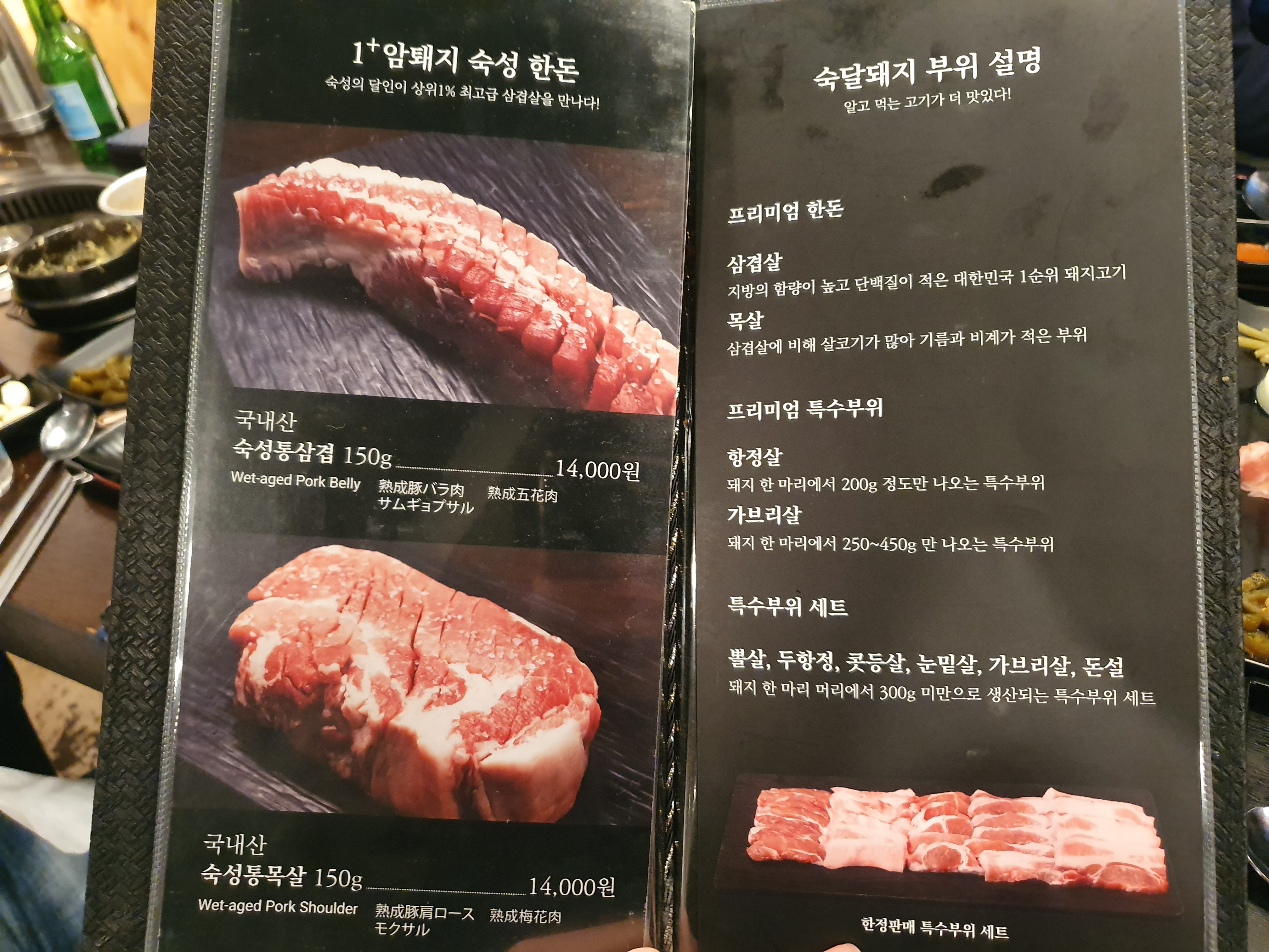 여튼 요지는 좋은 고기를 웻 에이징(Wet aging) 하여 최상의 고기를 제공한단다.