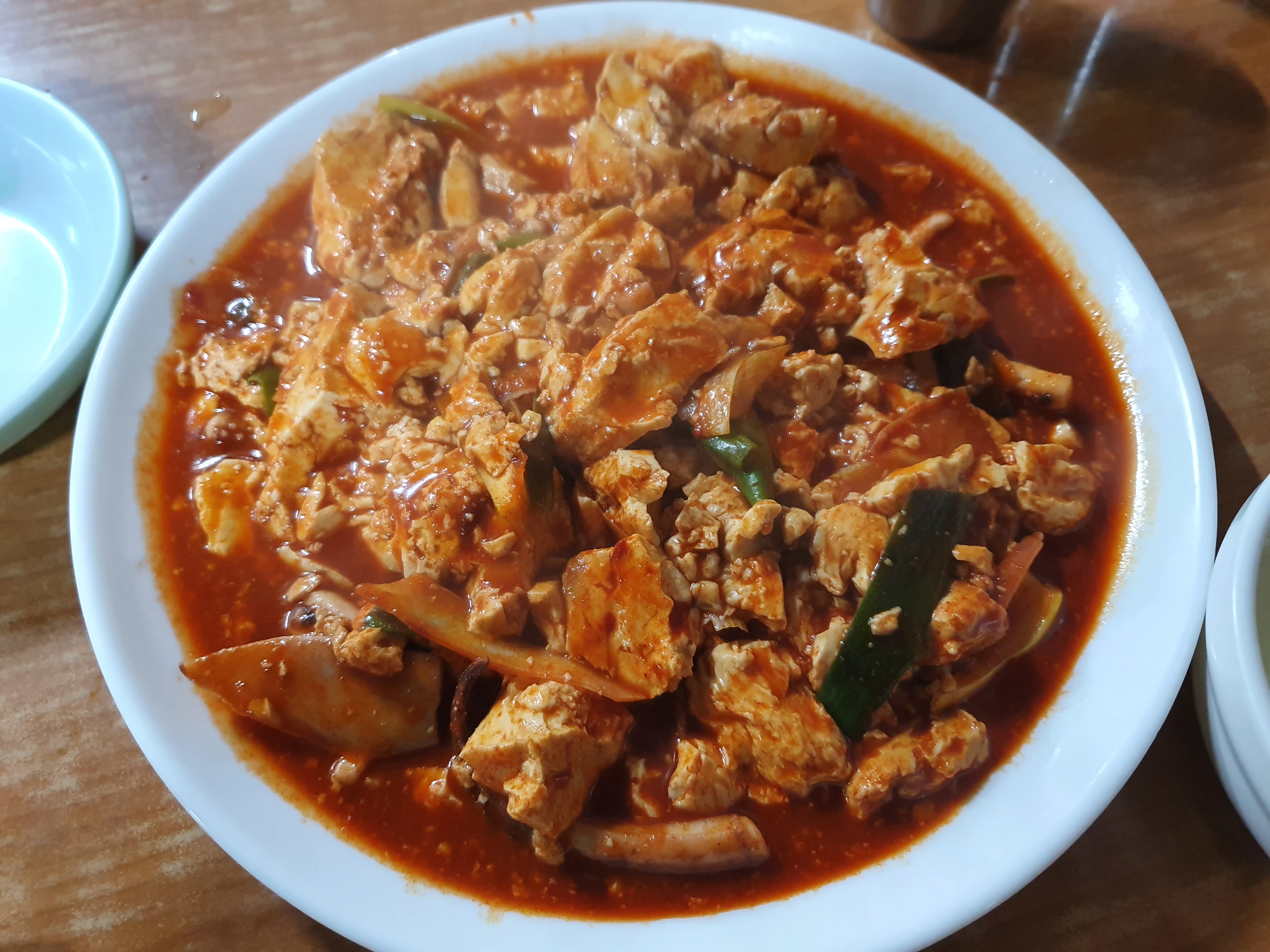일단 광천식당과 달리 두부가 각진 형태가 아닌 약간 마파두부 느낌으로 으스러져 있는 형태이다.