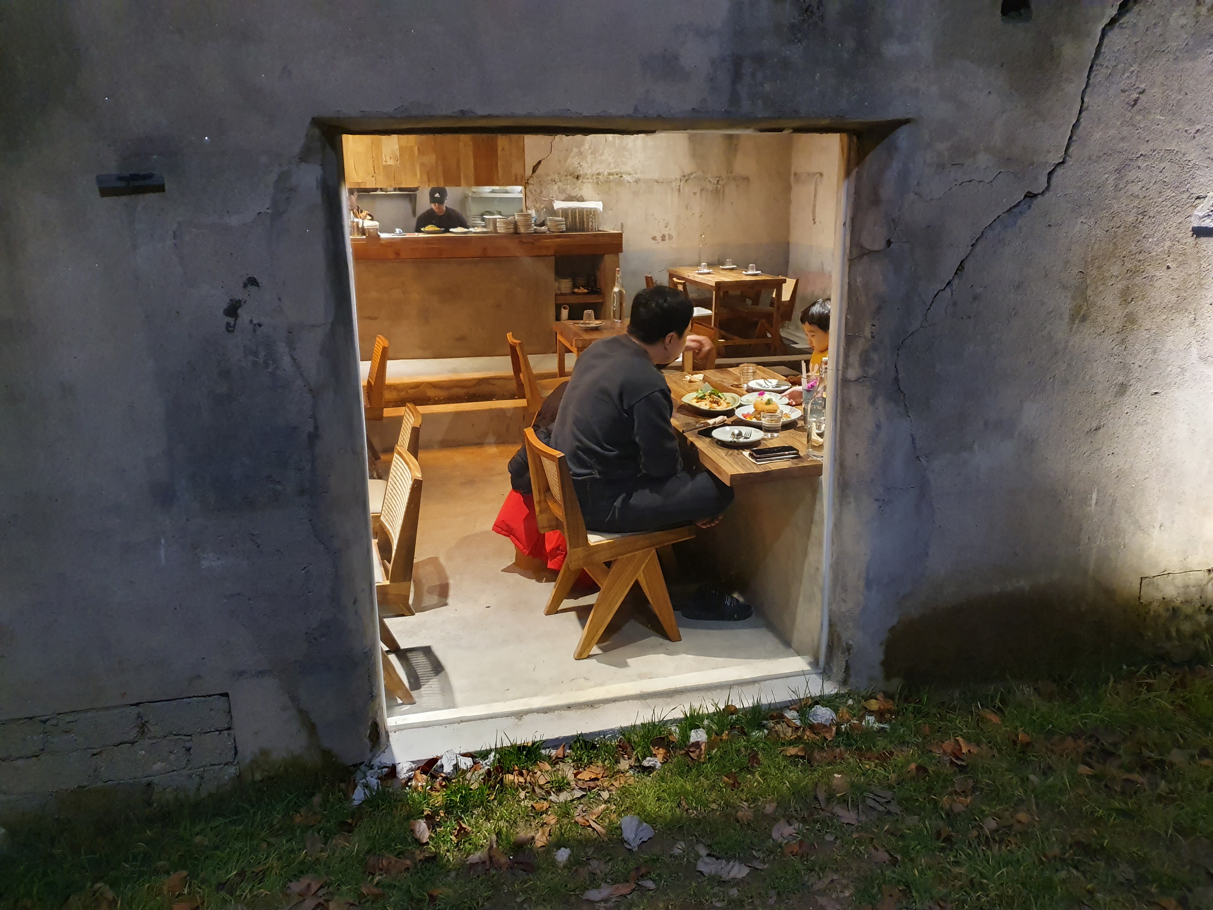 벽 한쪽을 통유리로 내서 실내를 볼 수 있게 해놓았다.