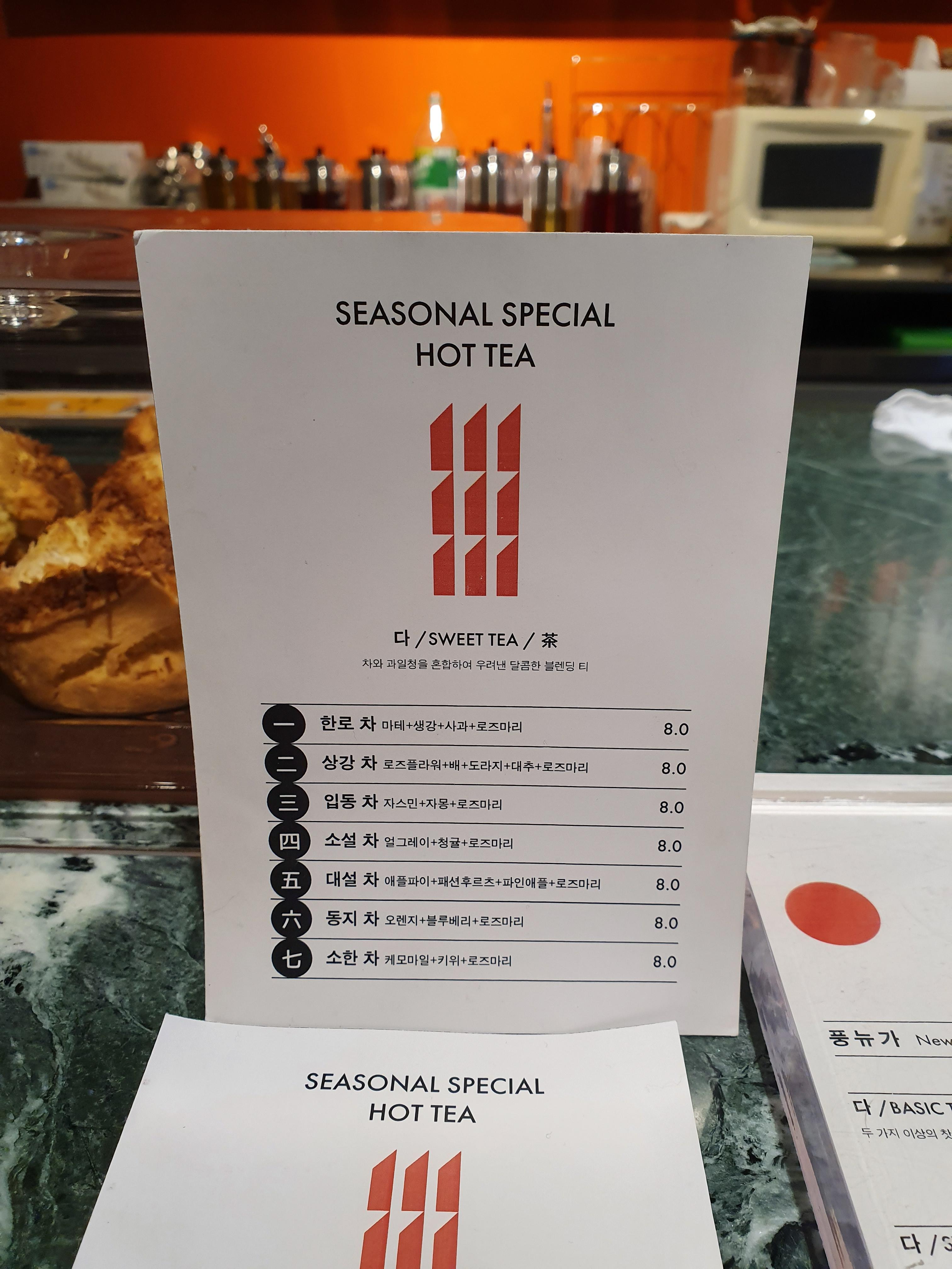 SEASON SPECIAL HOT TEA 는 총 7가지의 차가 있고, 그 조합이 다 새로워 뭐를 선택해야 할지 몰랐다.