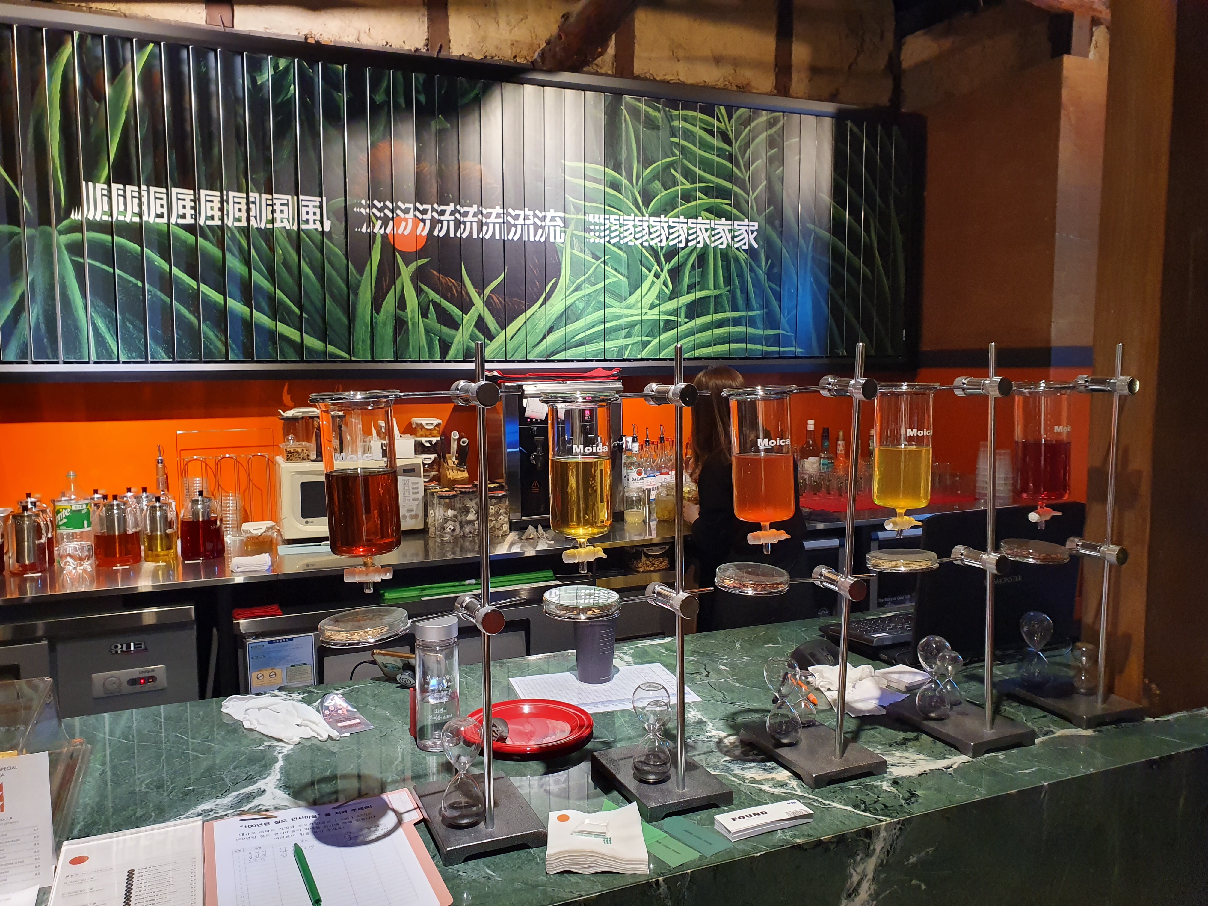 차의 양이 대체로 일정한 것으로 보아 색상을 보여주는 용도 + 인테리어 용도로 사용하는 듯 하다.