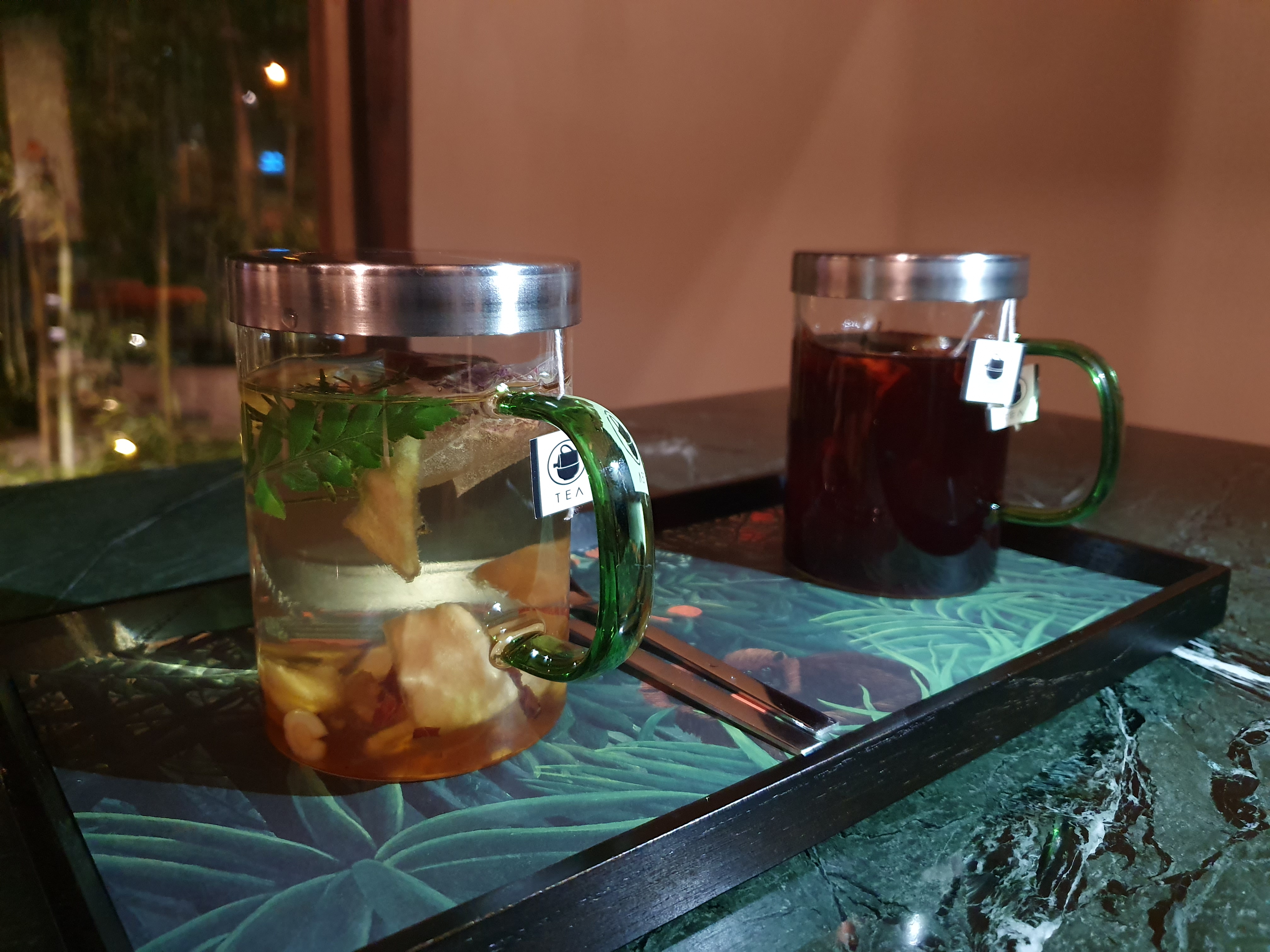 일단 푸짐한(?) 내용물들이 잘 보이게 투명한 잔에 차가 제공되는 것이 좋았다.