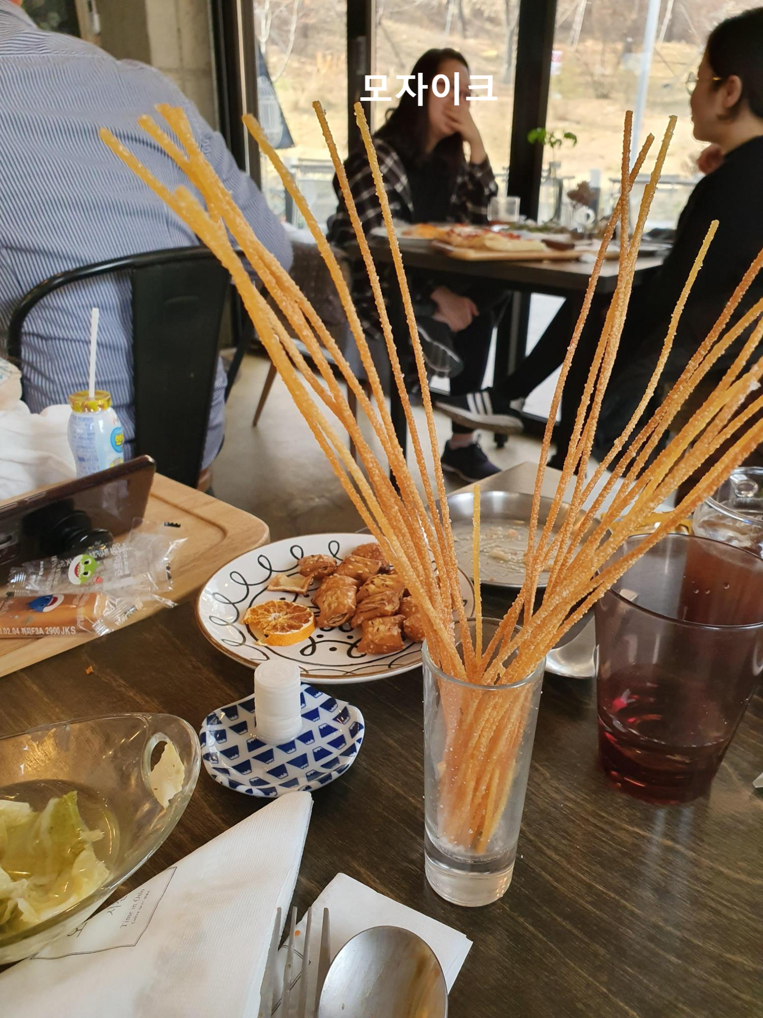 사장님께서 아기가 있다며 스타게티 면 튀김 과자를 서비스로 주셨다.