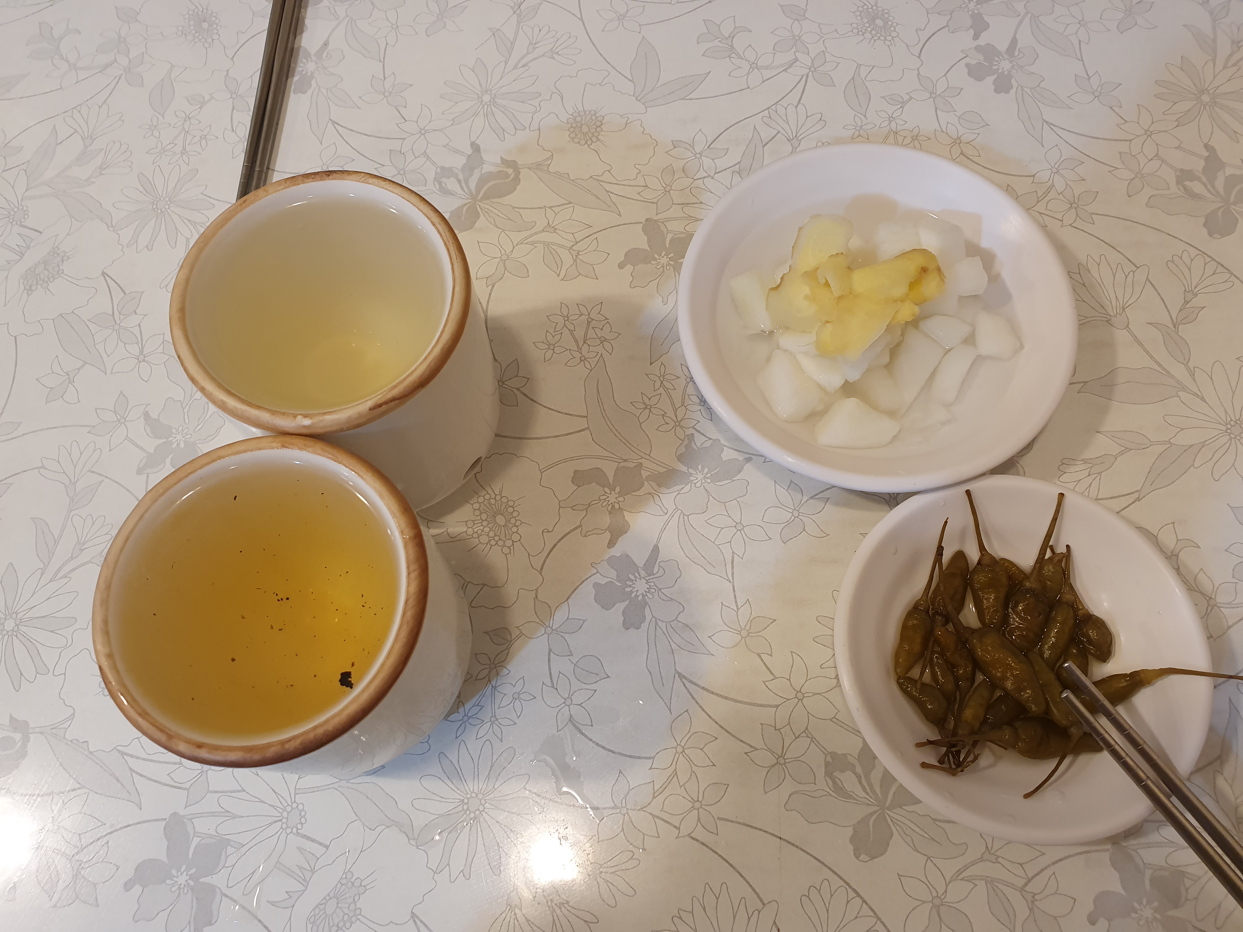 먼저 정종을 가져다 준 정종과 밑반찬.