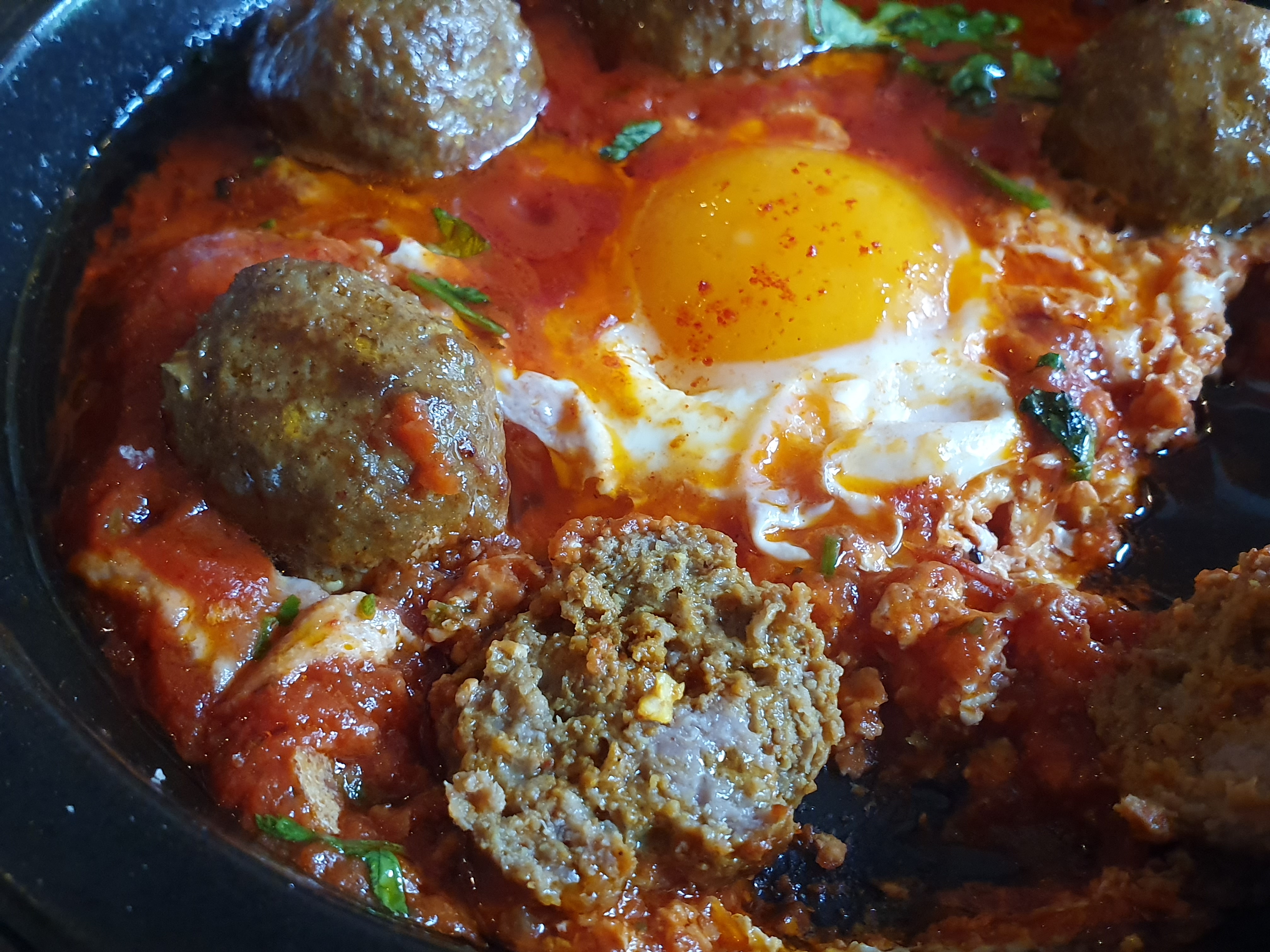 전체적인 비쥬얼은 가운데 계란과 빨간 스튜로부터 샥슈카(a.k.a. 에그 인 더 헬)이 떠오른다.
