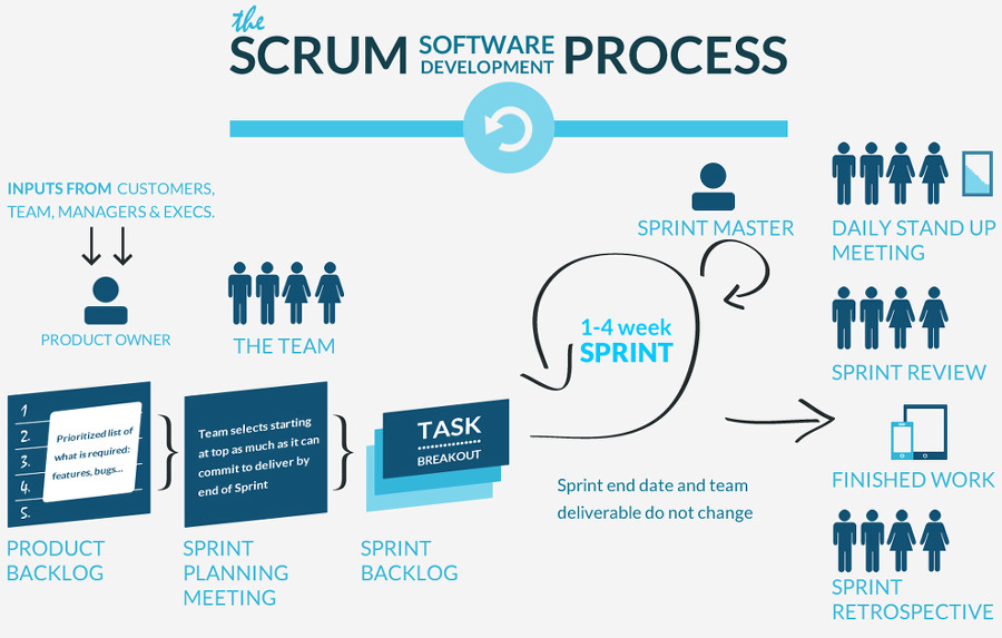 Scrum 은 애자일 방법론 중 하나로, 개발주기를 짧게 가져가며 해당 개발주기( Sprint 라 부름 )마다 가시화된 Product 를 볼 수 있게 하는 효율적인 개발 방법.