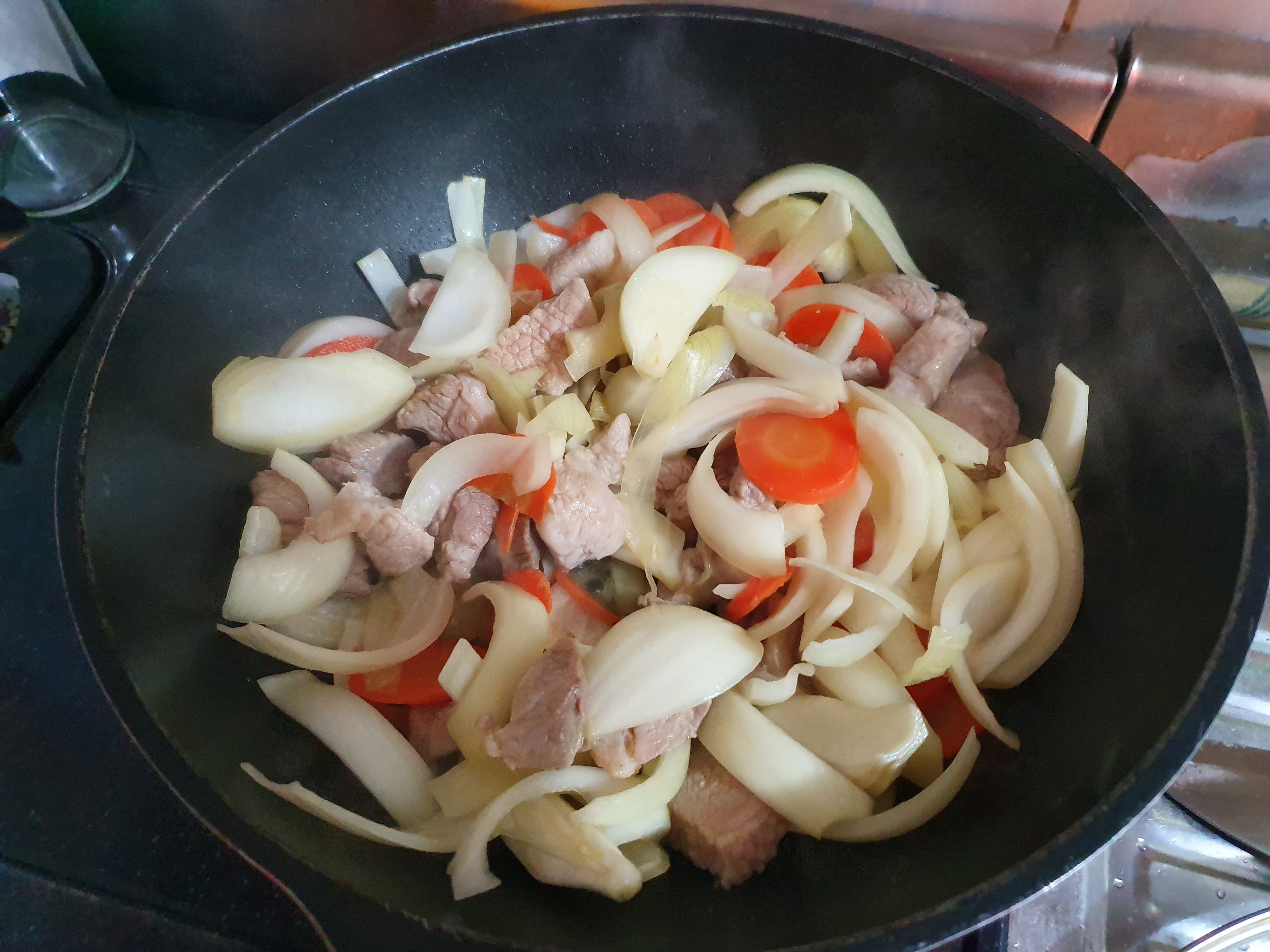 그냥 준비한 재료들을 볶기 좋게 썰어서 볶는다.