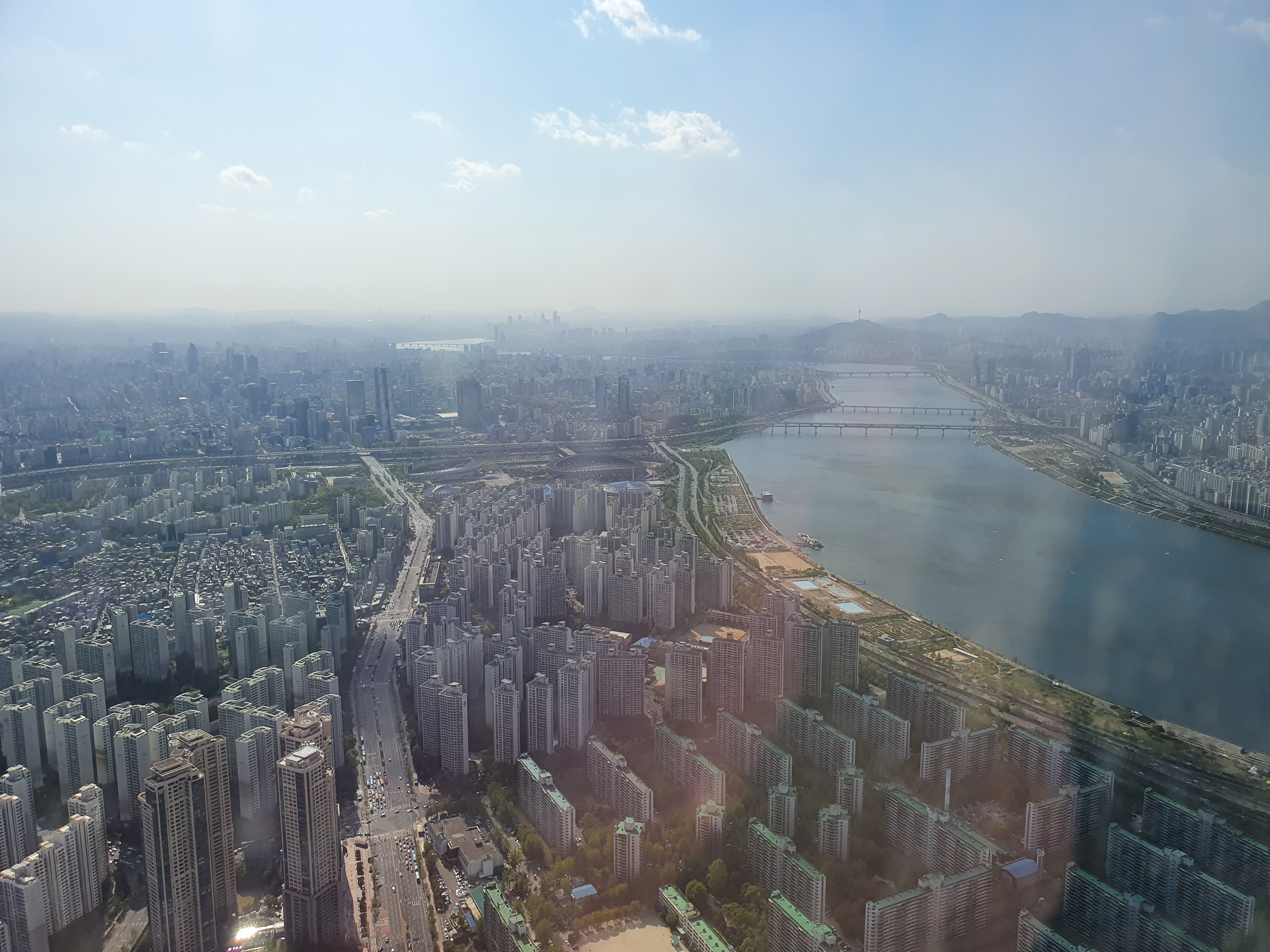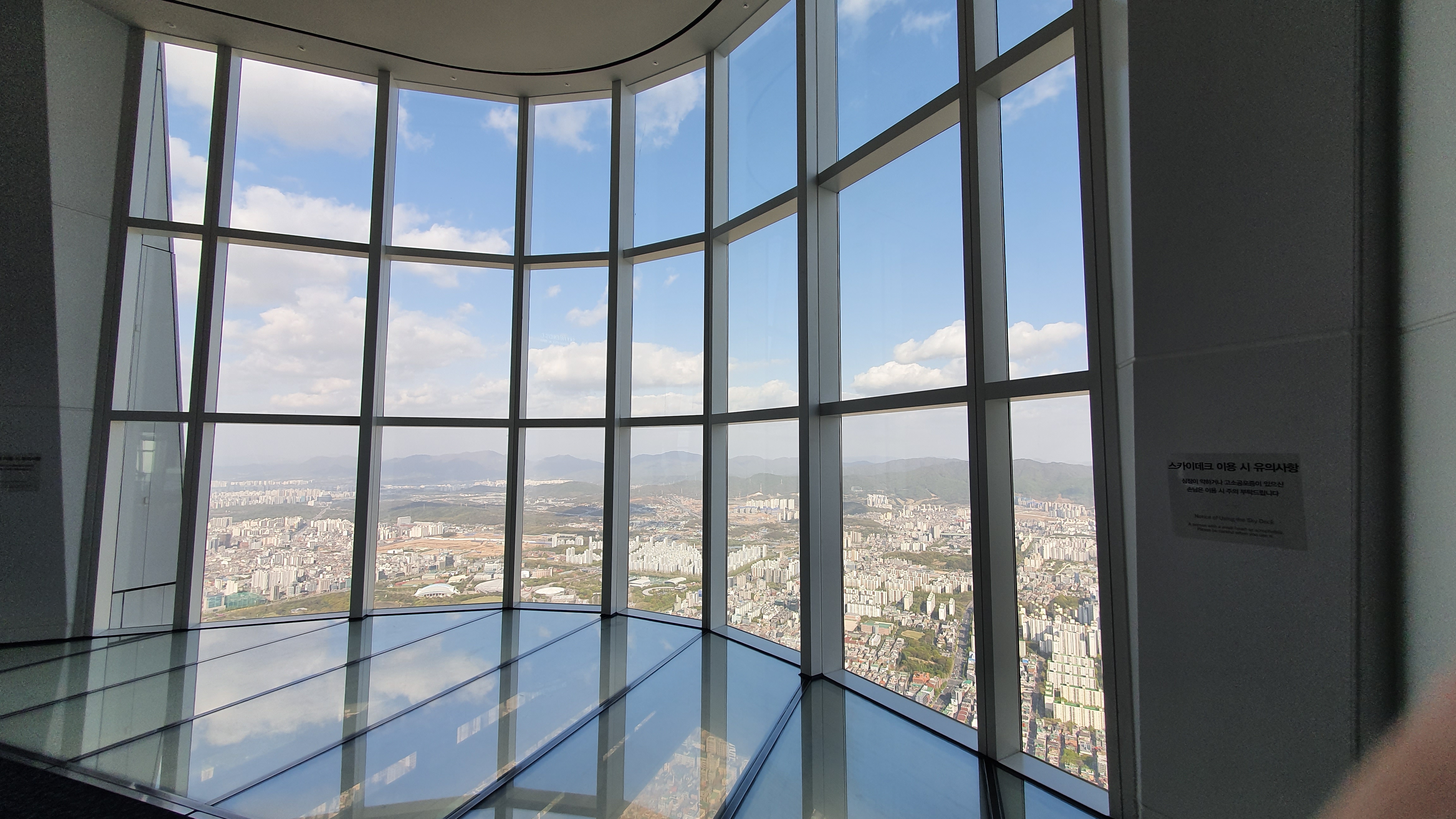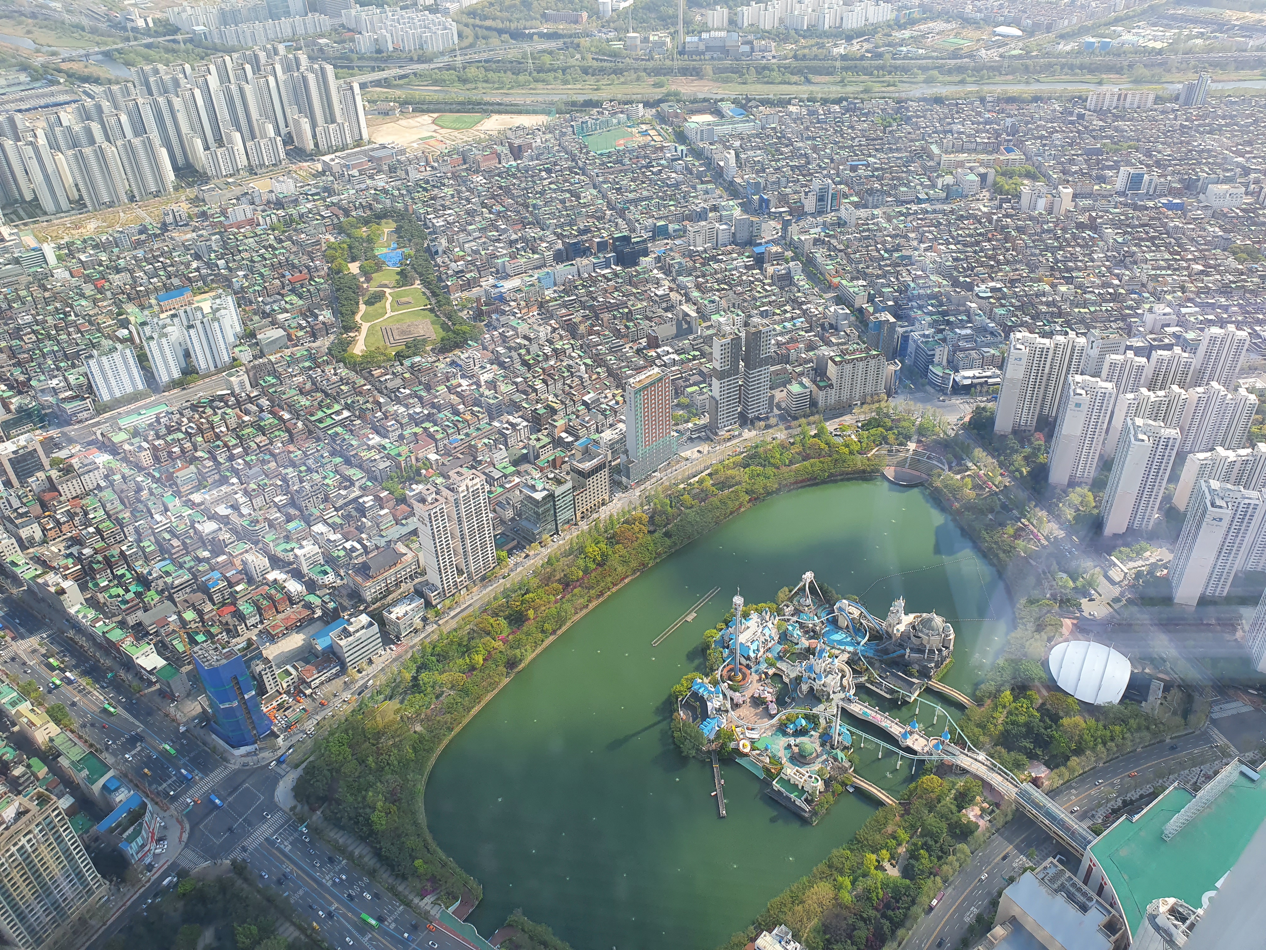 롯데타워 앞쪽의 황금빛 타워도 내려다볼 수 있다.