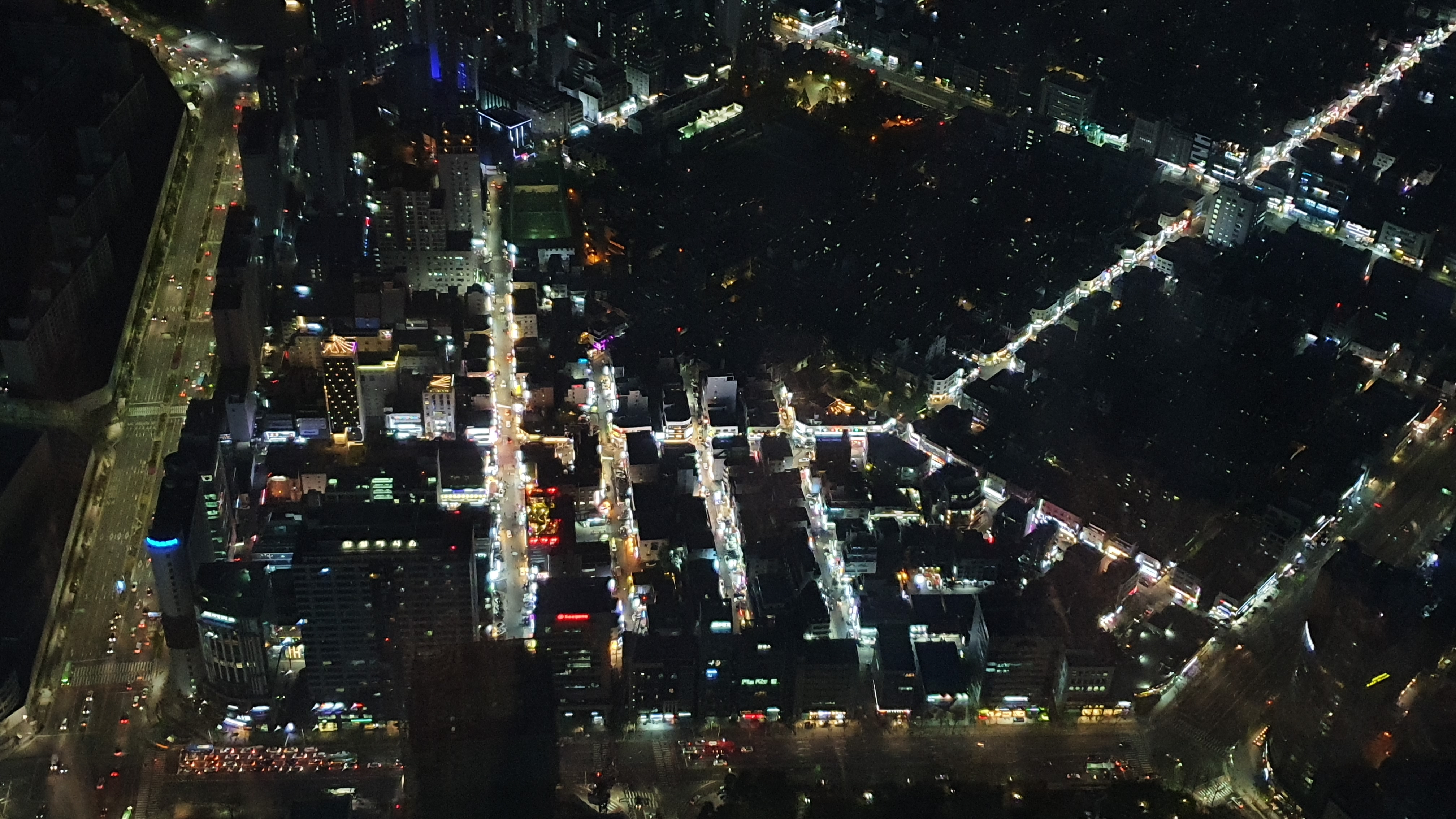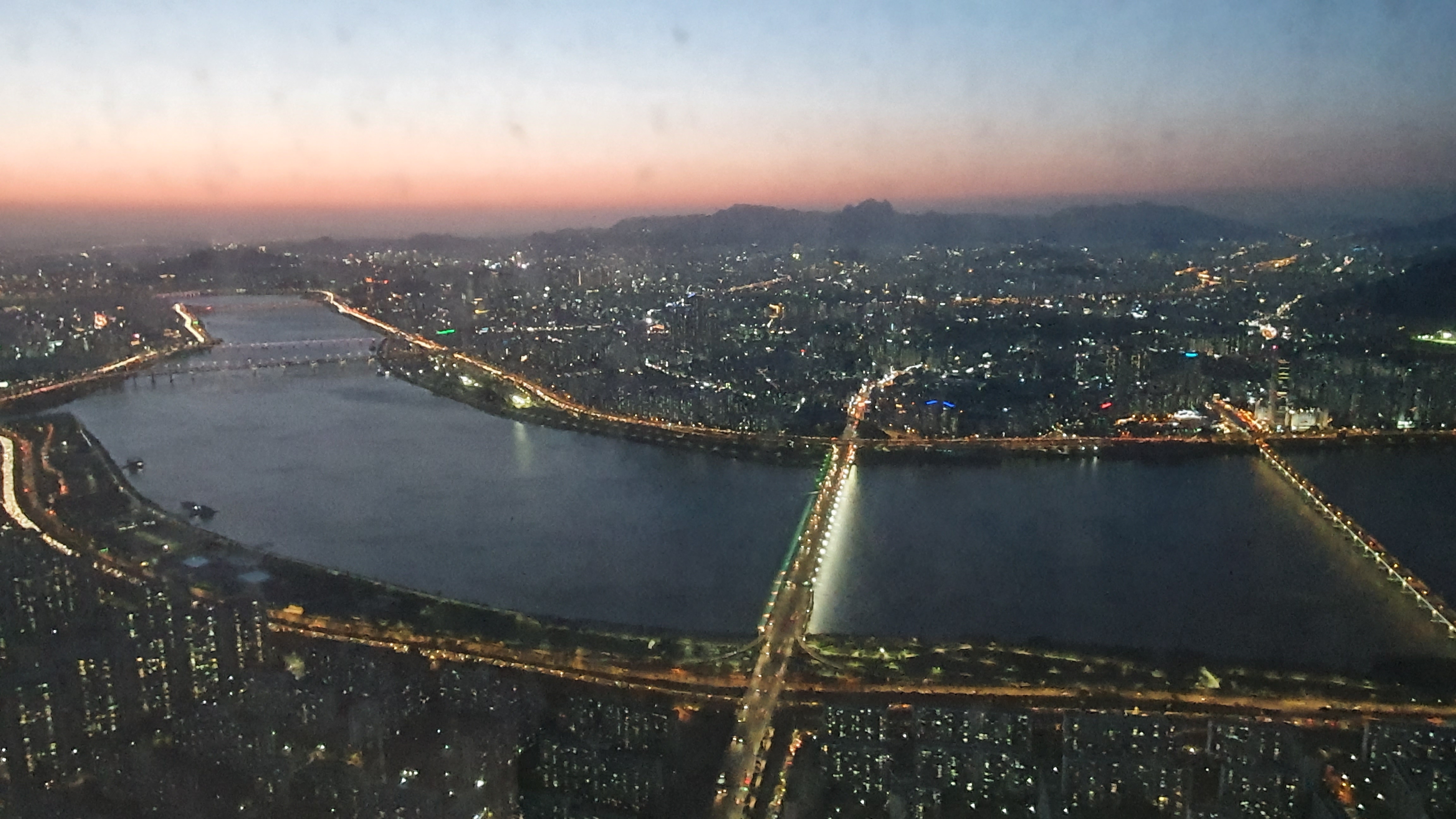 불이 하나씩 켜지고, 한강 다리에도 불이 들어온다.