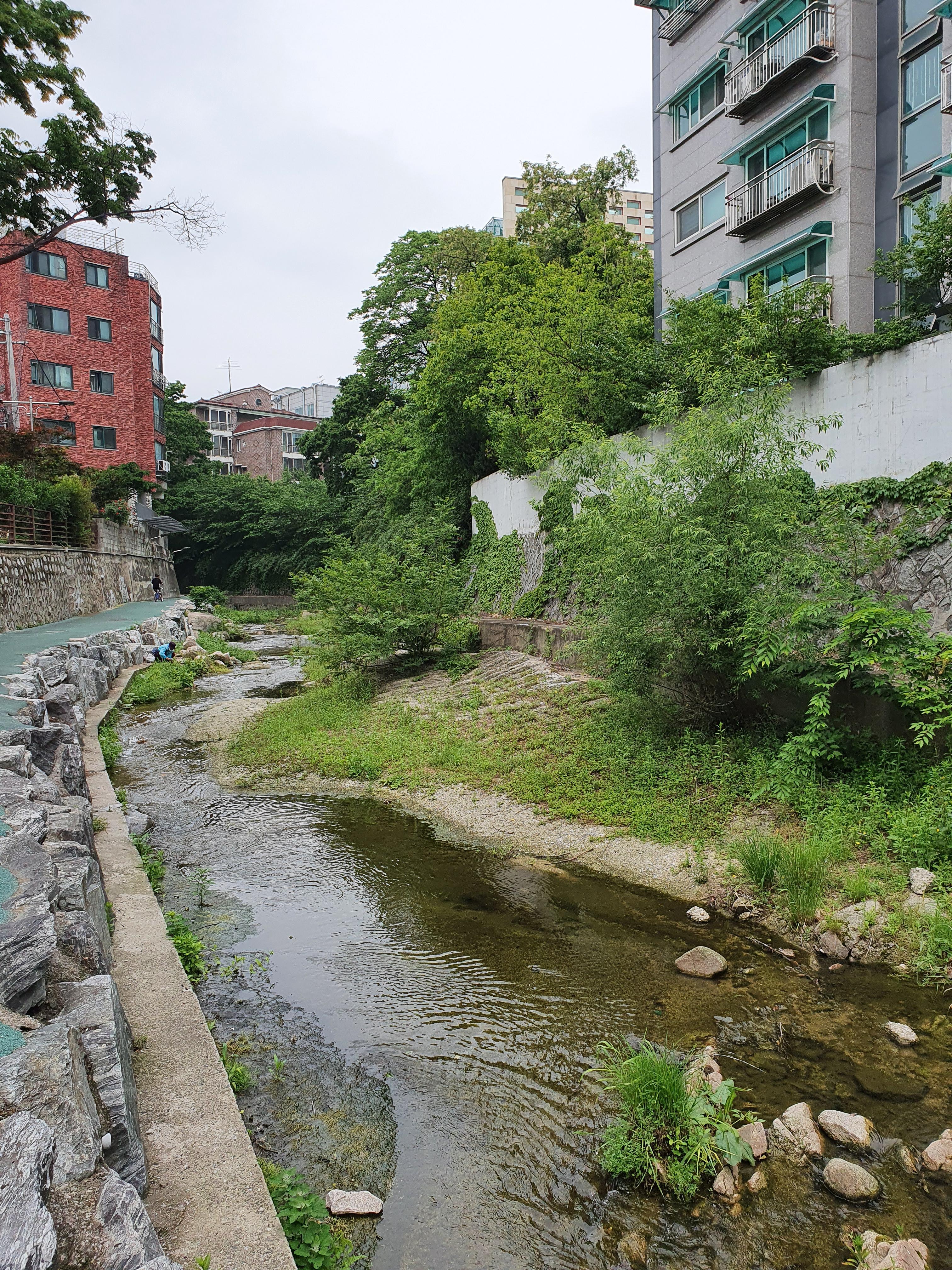 정릉천 상류는 물살이 쎄지 않은 계곡 같은 느낌이 든다.