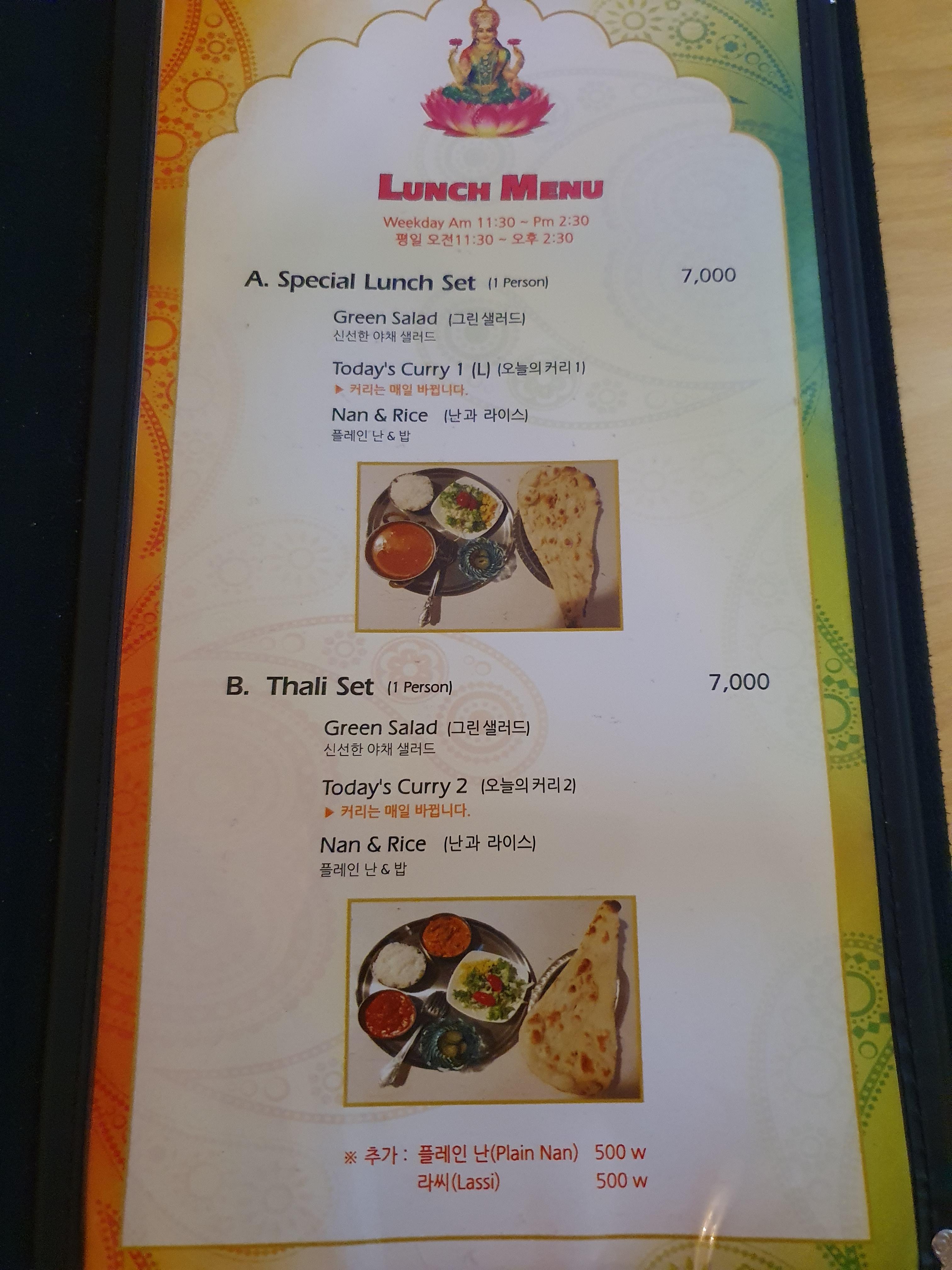 둘의 차이는 인도 커리가 한 개 나오냐 두 개 나오냐의 차이이다.