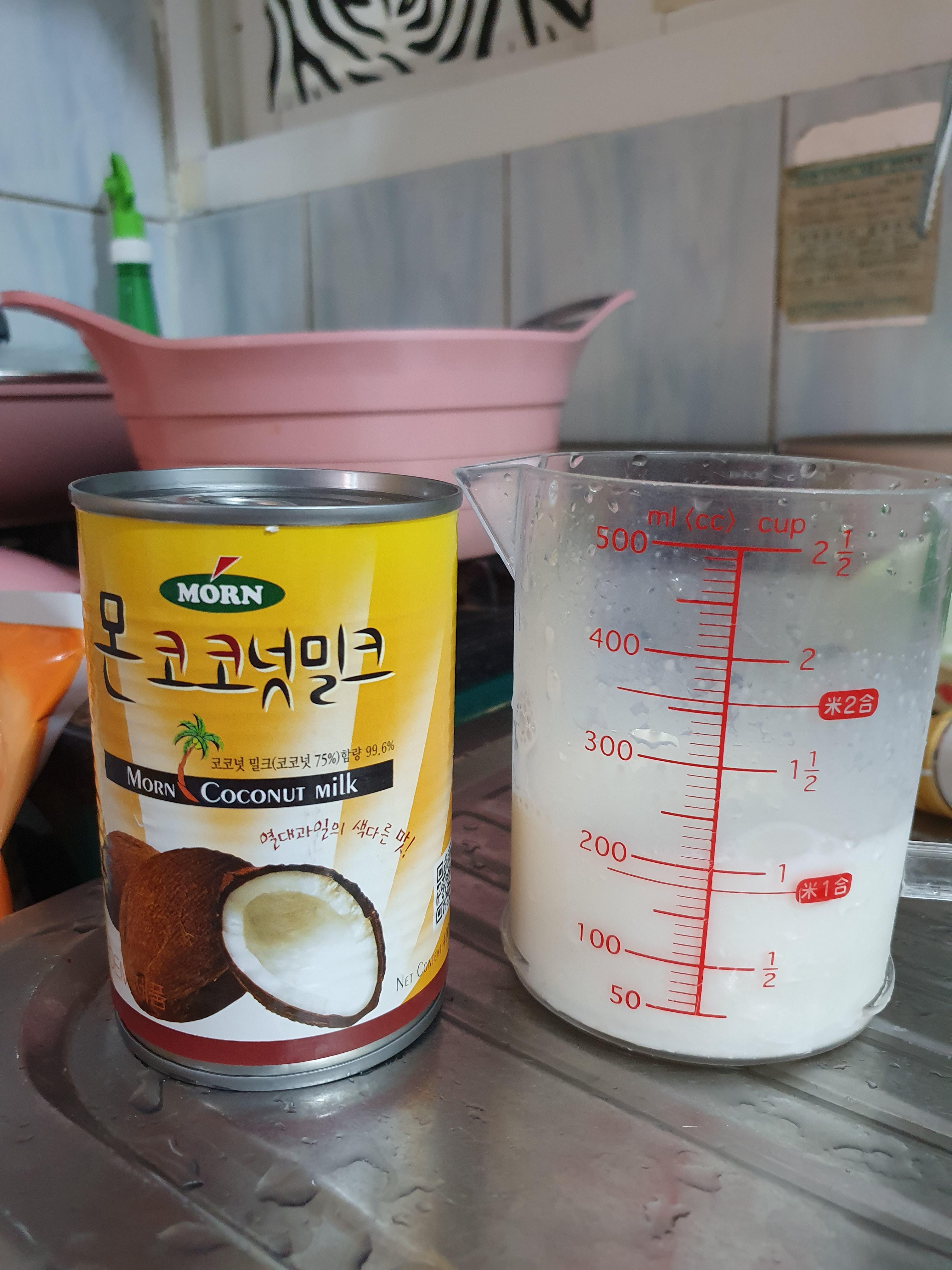 코코넛 밀크 200ml + 우유 200ml 더 부어서