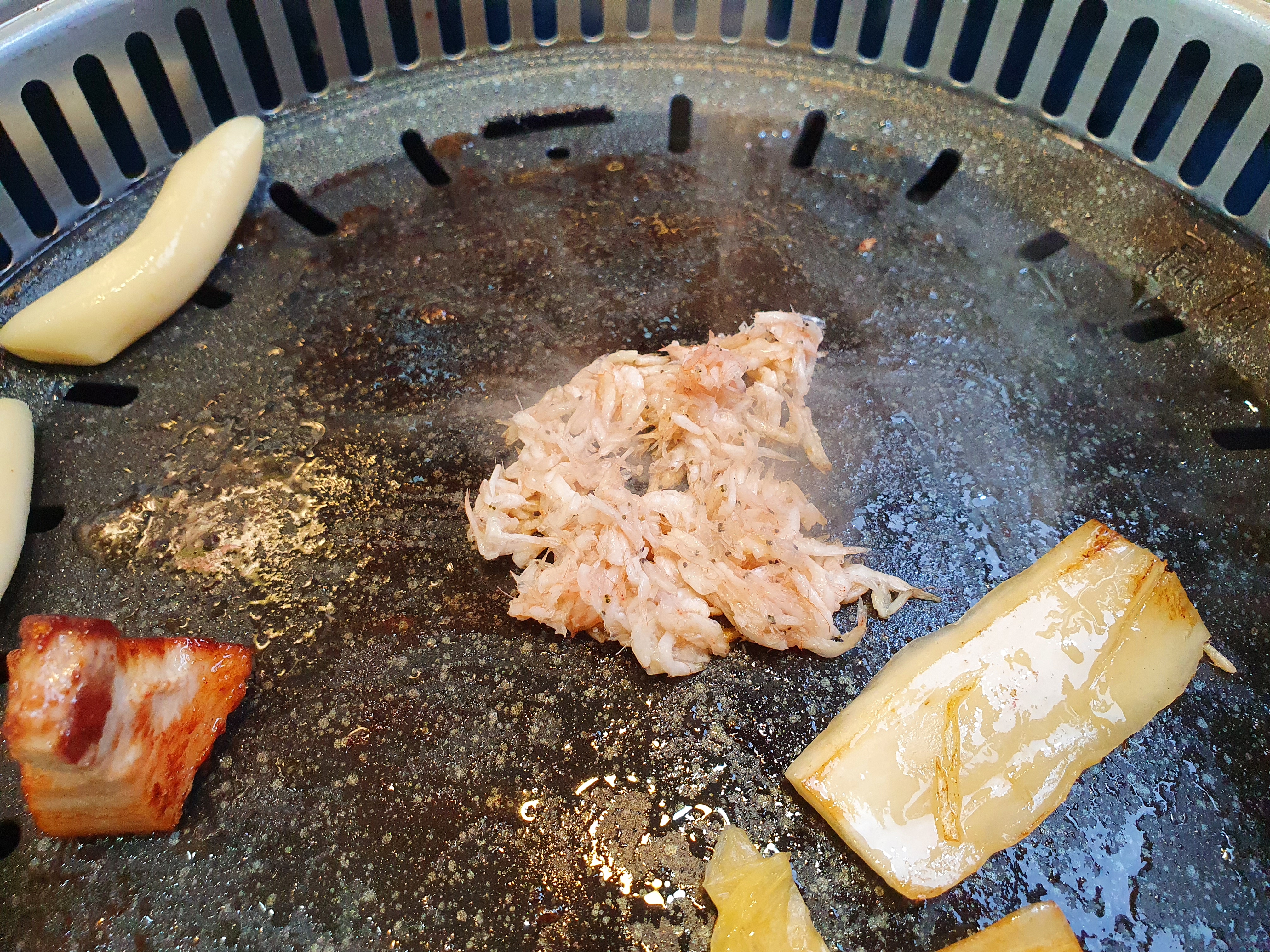 고기를 다 굽고 난 다음 이렇게 새우젓을 구워준다.
