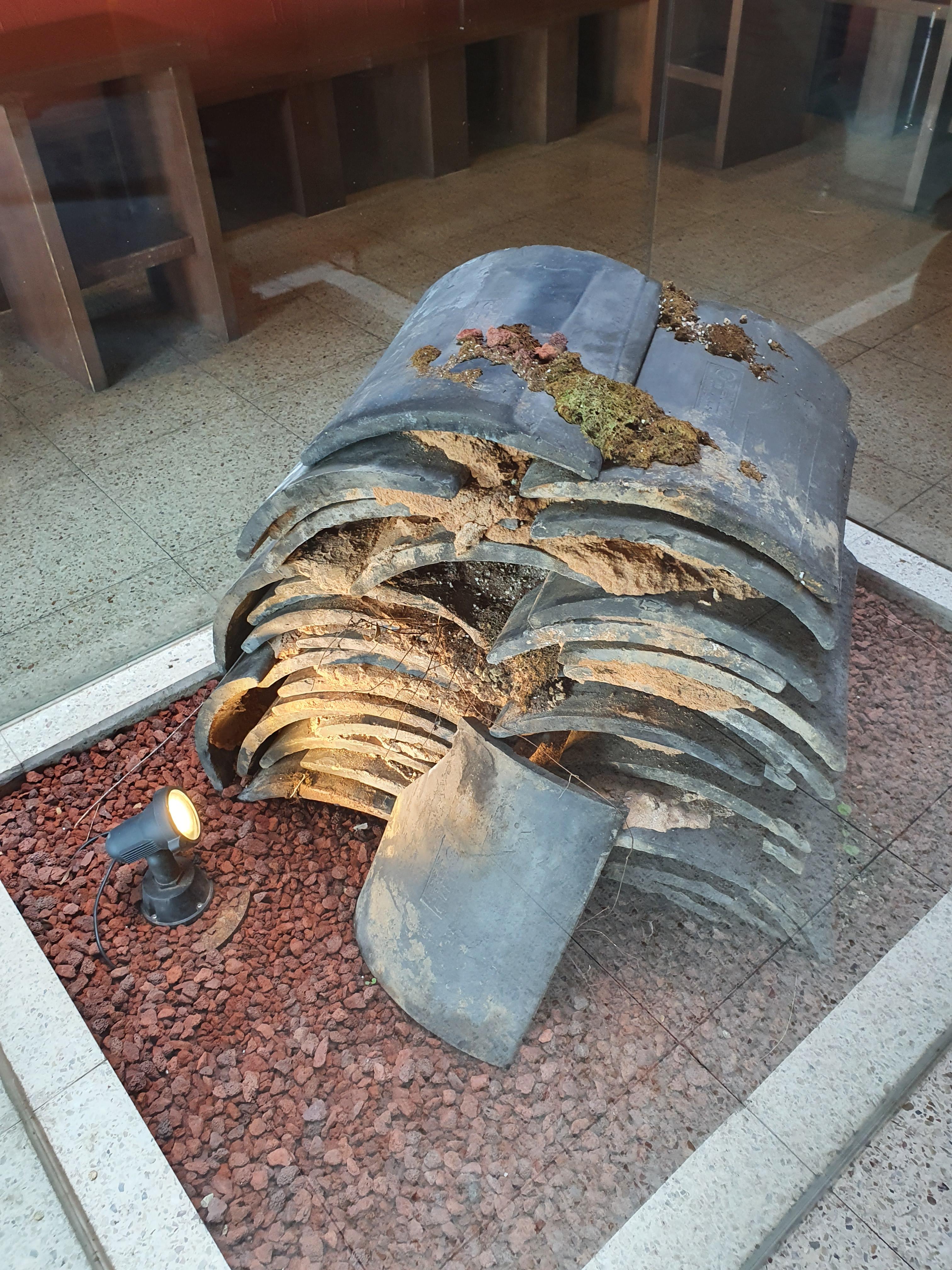 2층 중앙에는 기와를 쌓아올린 작품이 있었다.