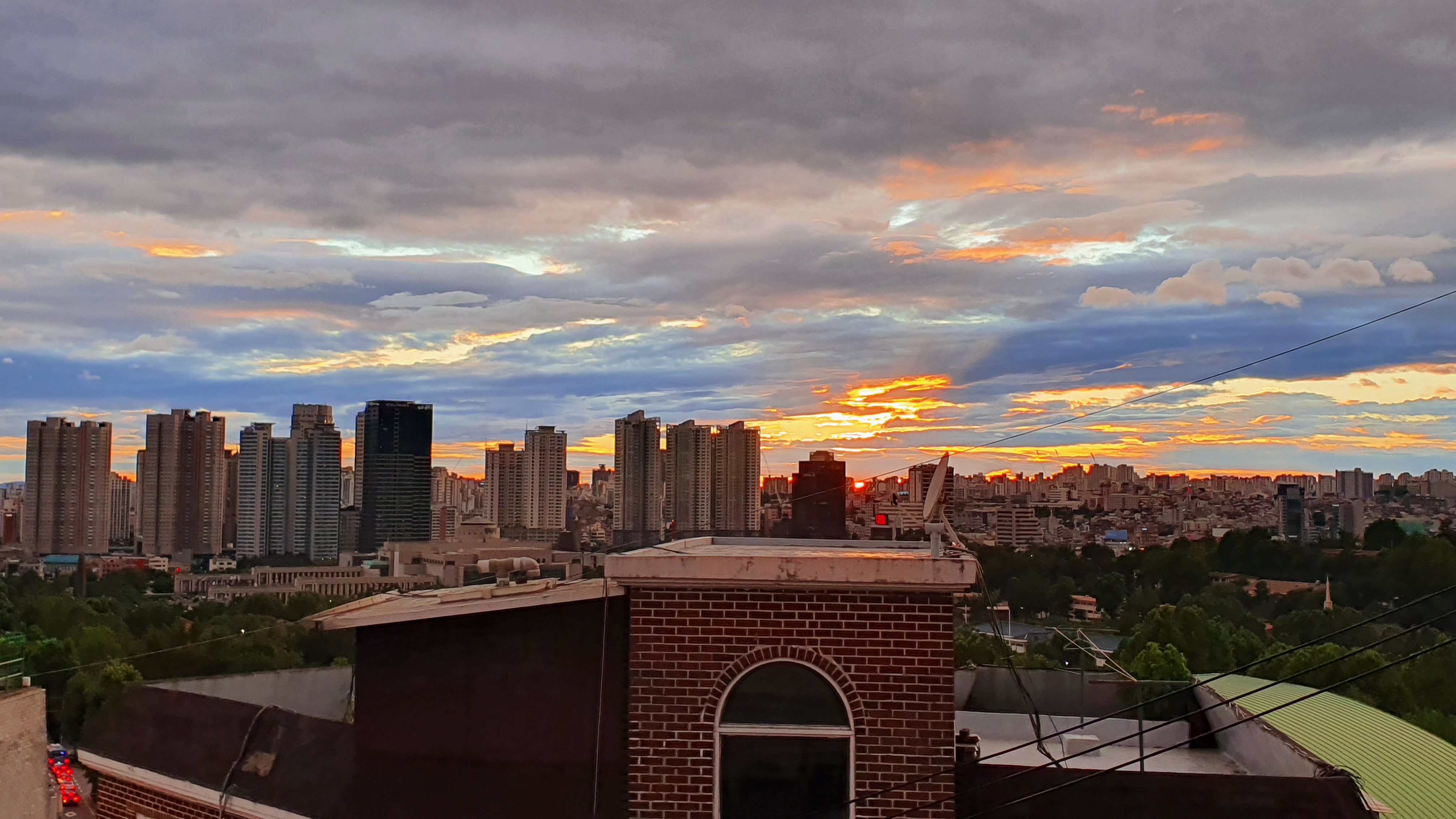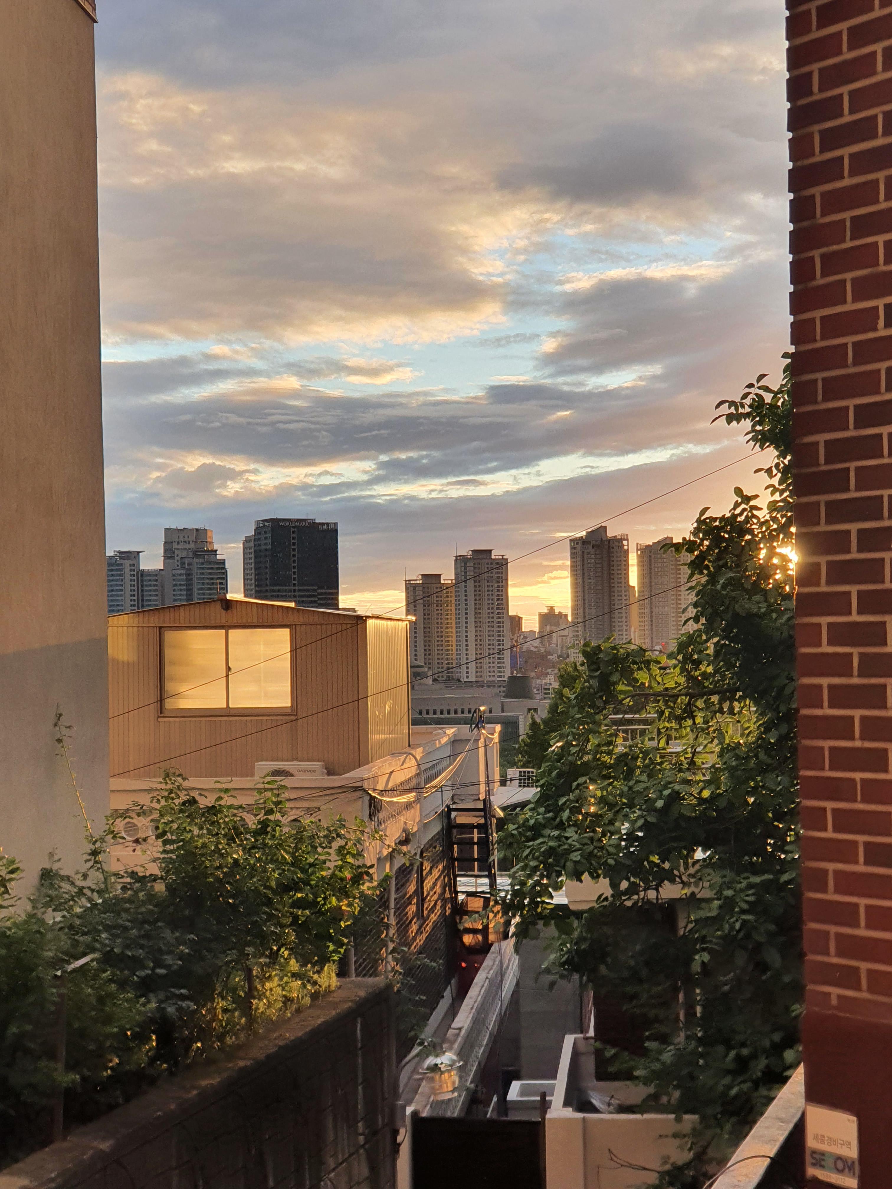 후니훈과 찾아간 '팬케이크샵' 카페의 루프탑에서 찍은 저녁 노을.