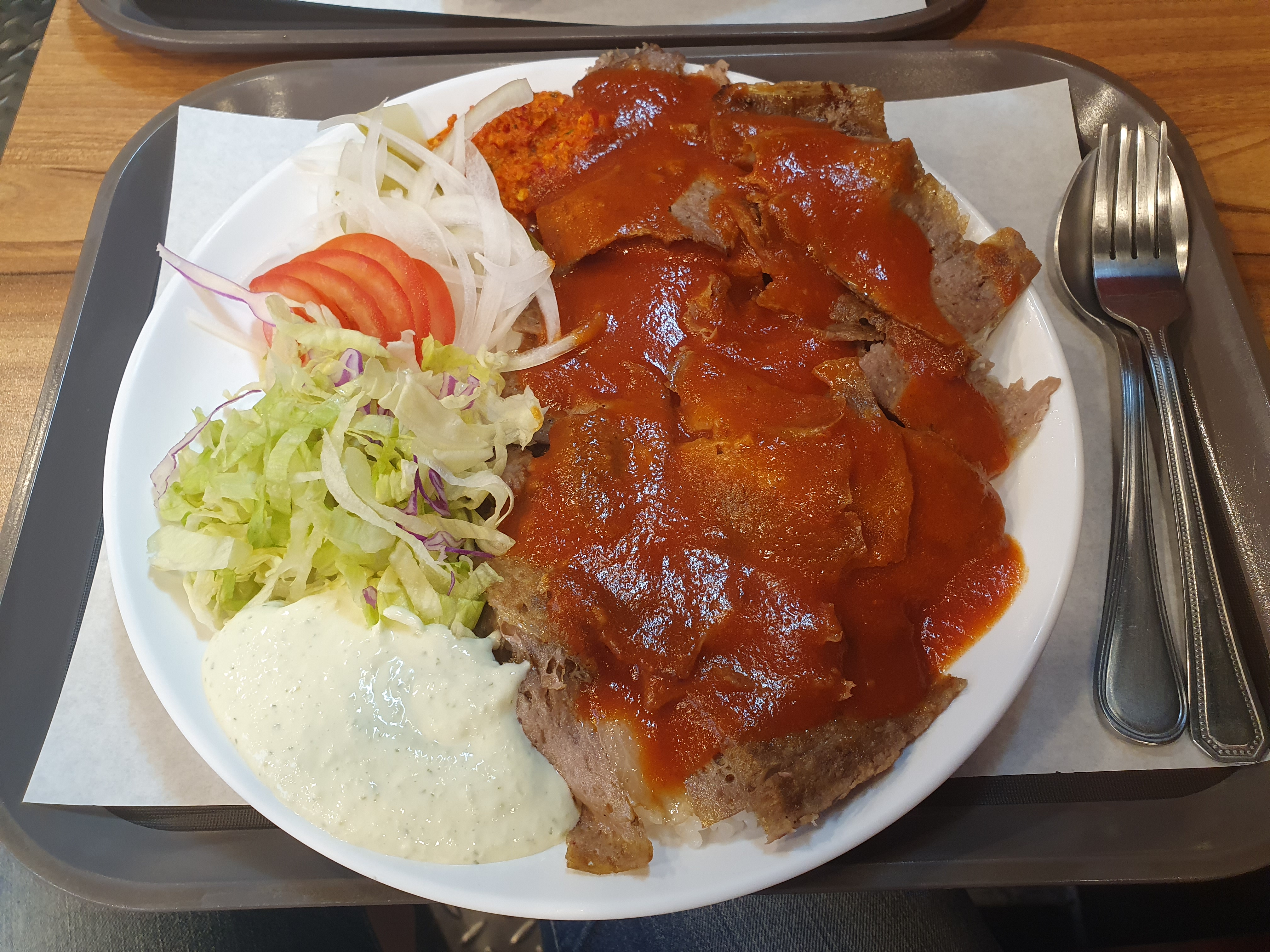 9900원 하는 '램 케밥 덮밥' (양고기 케밥 덮밥)이다. 매운맛과 보통맛을 결정할 수 있는데 나는 매운맛.