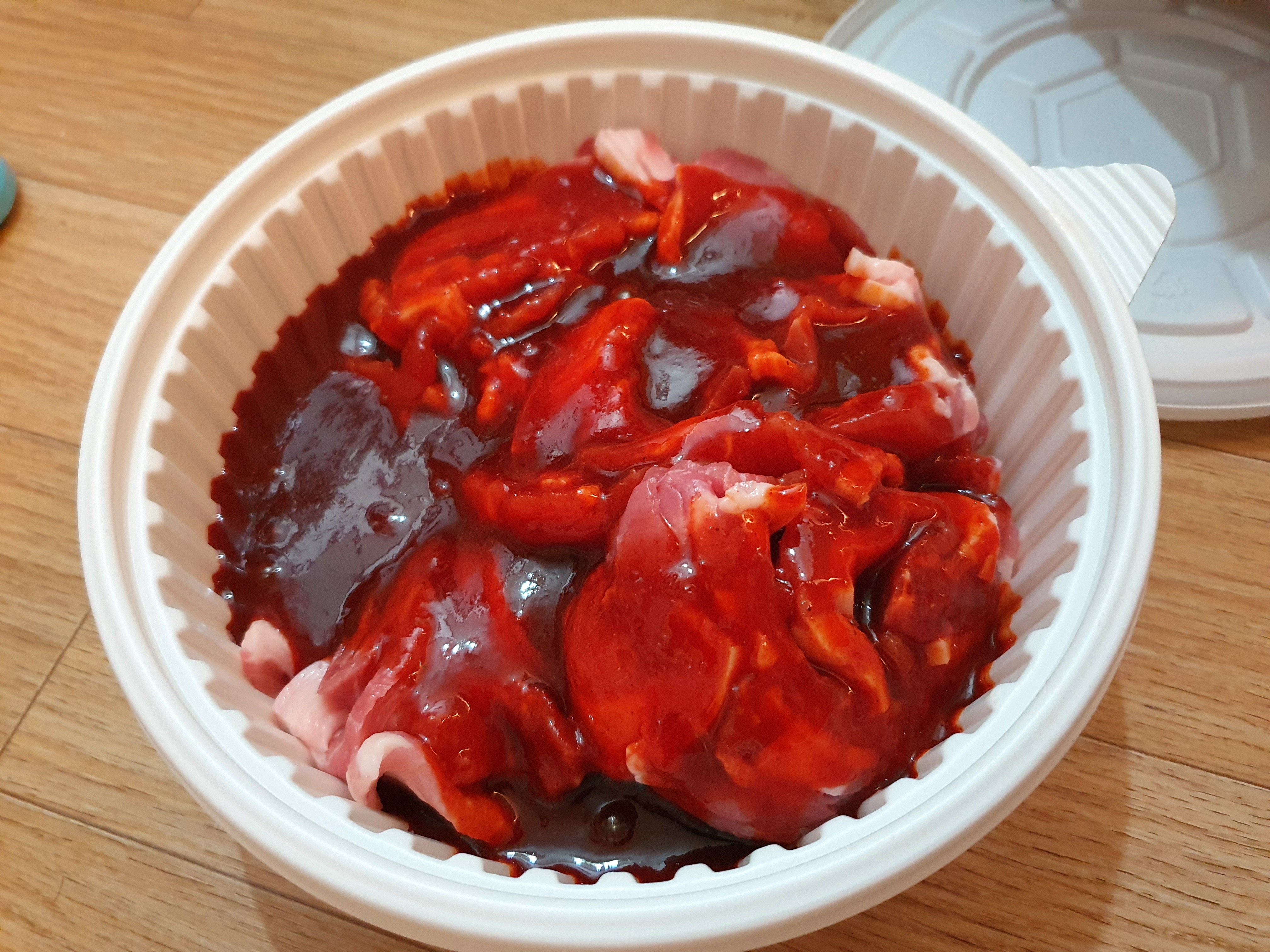 확실히 바깥에서 파는 제육볶음에 비해 기름짐이 덜 하고, 약간 더 살코기 느낌은 많이 난다.