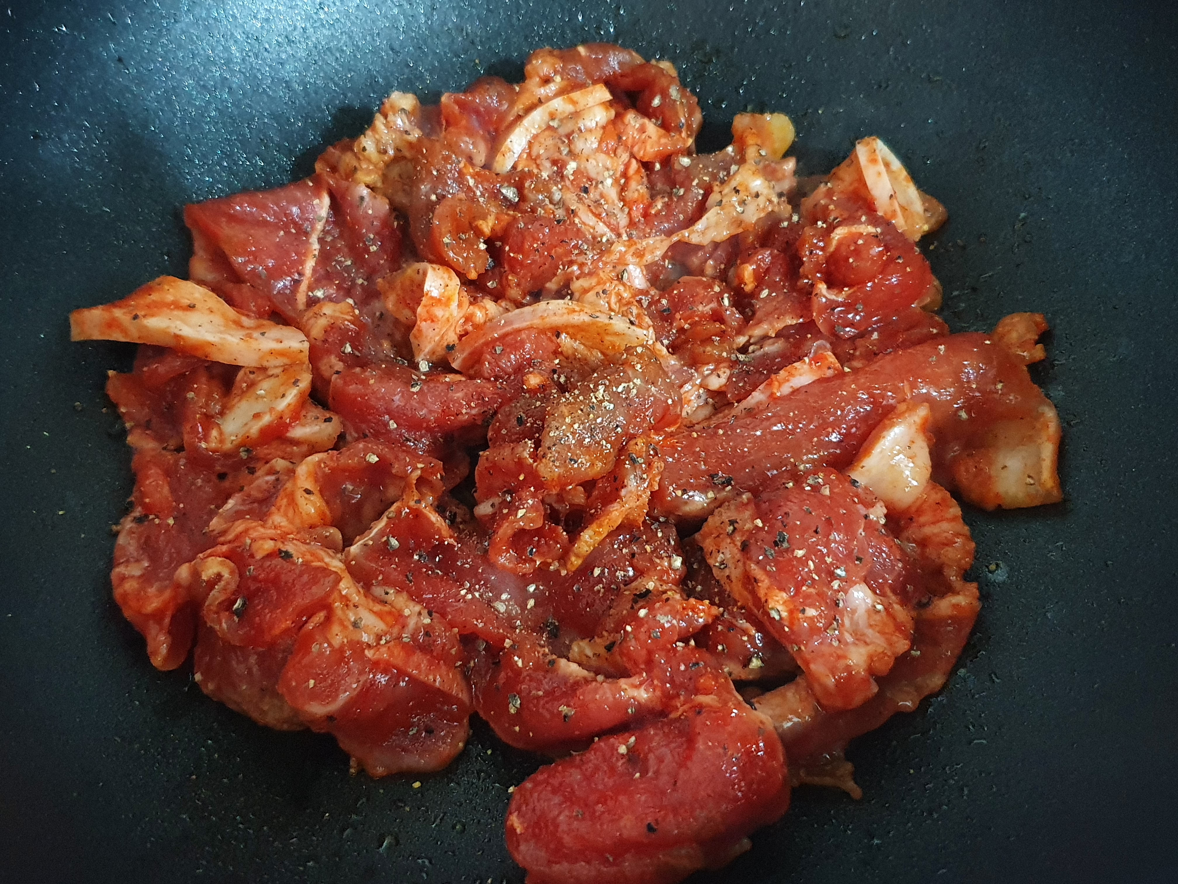 고기를 적당히 볶아서 살짝 익을 때쯤,
