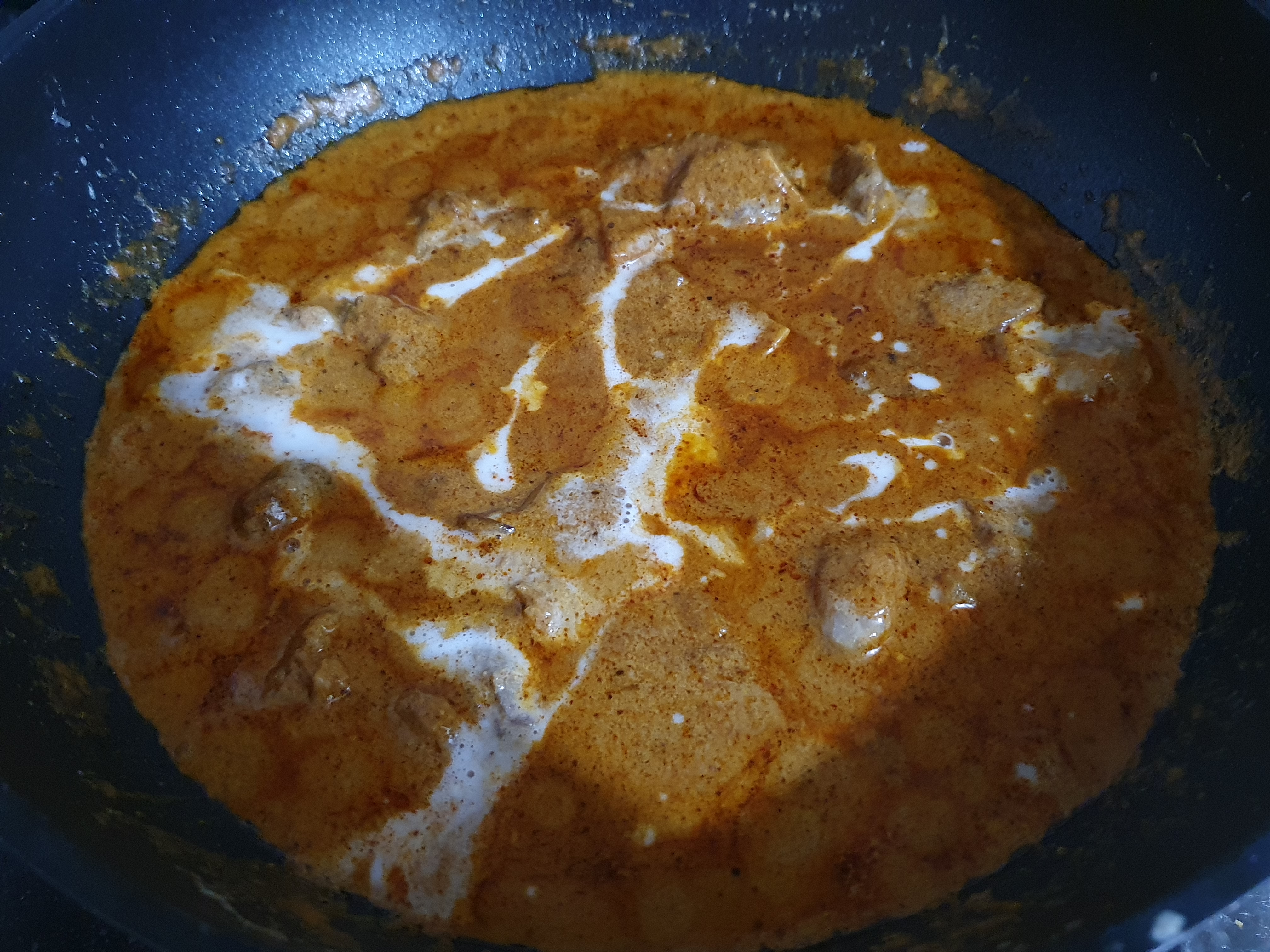 카라멜라이즈된 양파의 색이 우유에 베면서 뭔가 인도커리 다운 색이 조금씩 남을 느낄 수 있다.