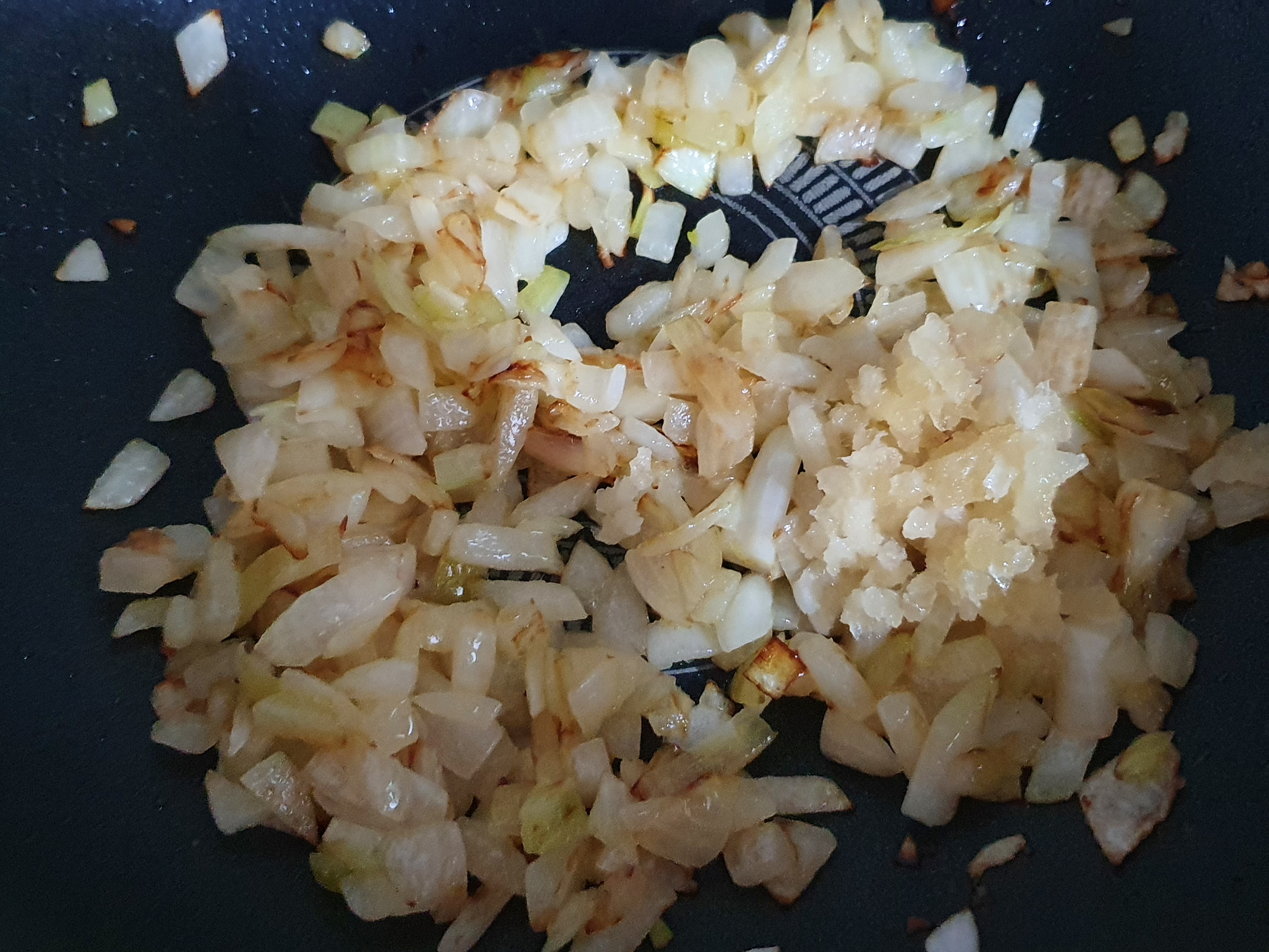 양파가 카라멜라이즈 되었으면 취향에 맞게 더 넣고 싶은 야채를 넣는다.