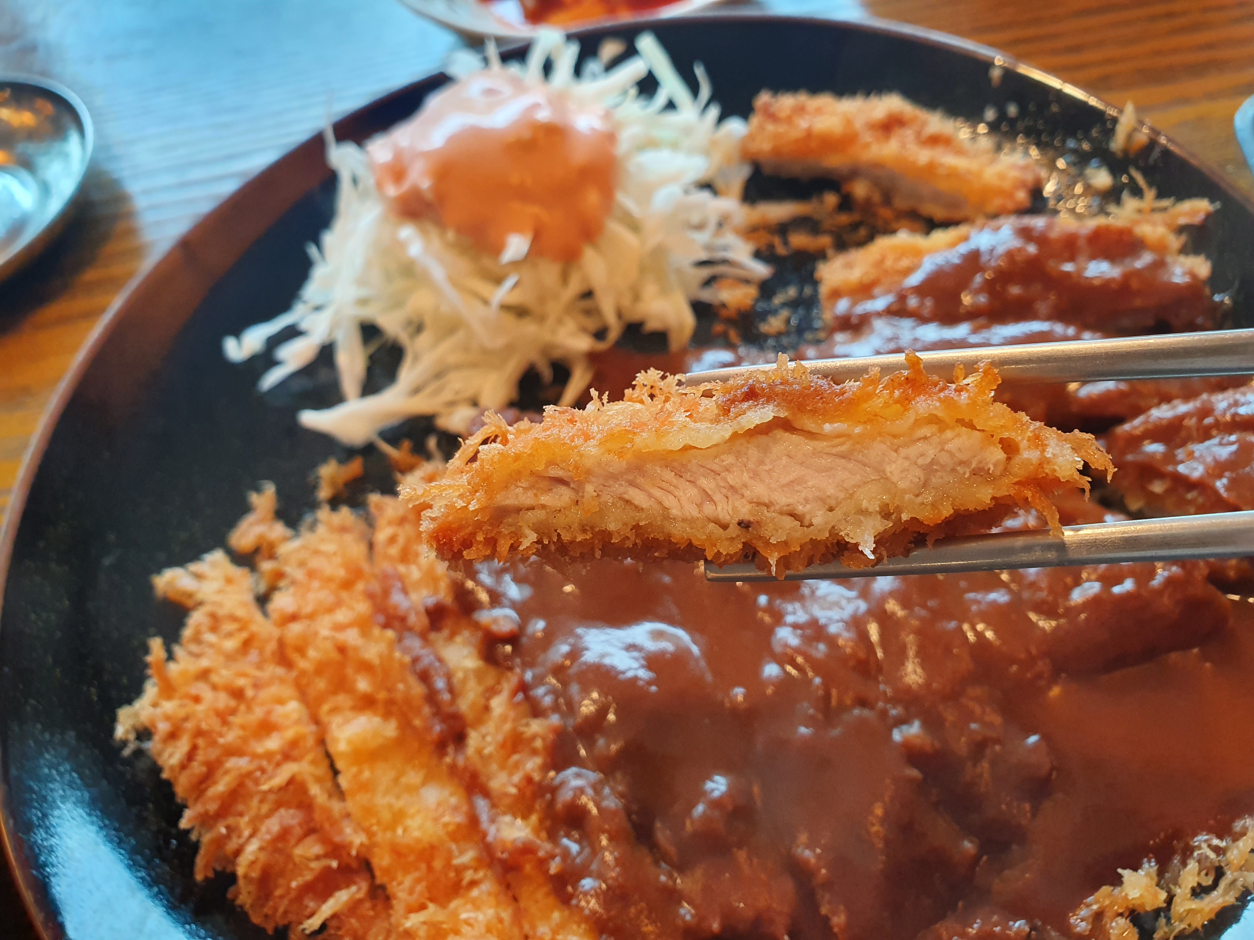돈까스는 바삭하게 잘 튀겨졌으며, 소스가 홈메이드 소스의 느낌을 주는 아주 걸죽한 녀석이었다.