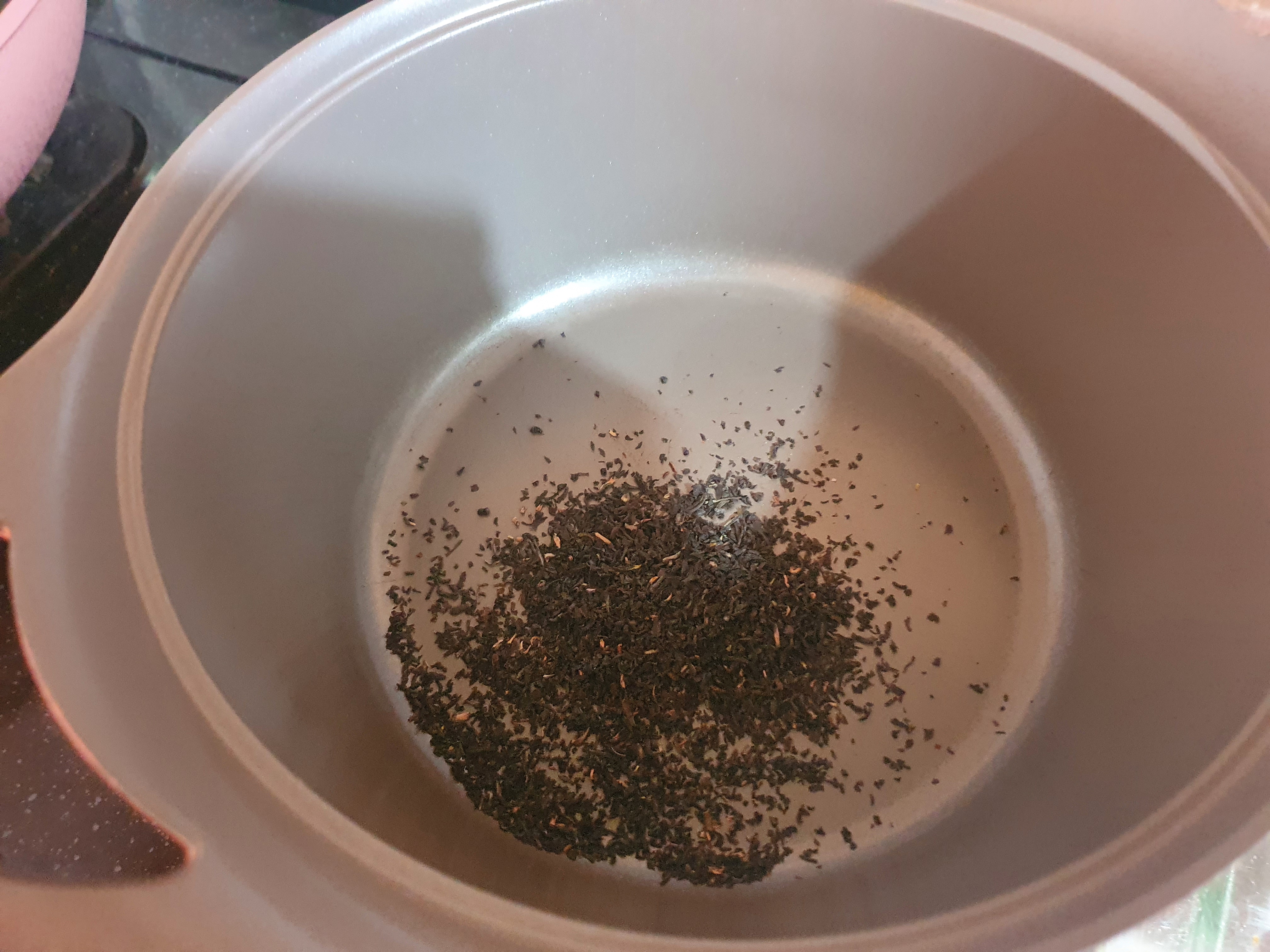 그래서 밥 숟가락으로 0.5 스푼 찻잎을 더 추가해주었다.
