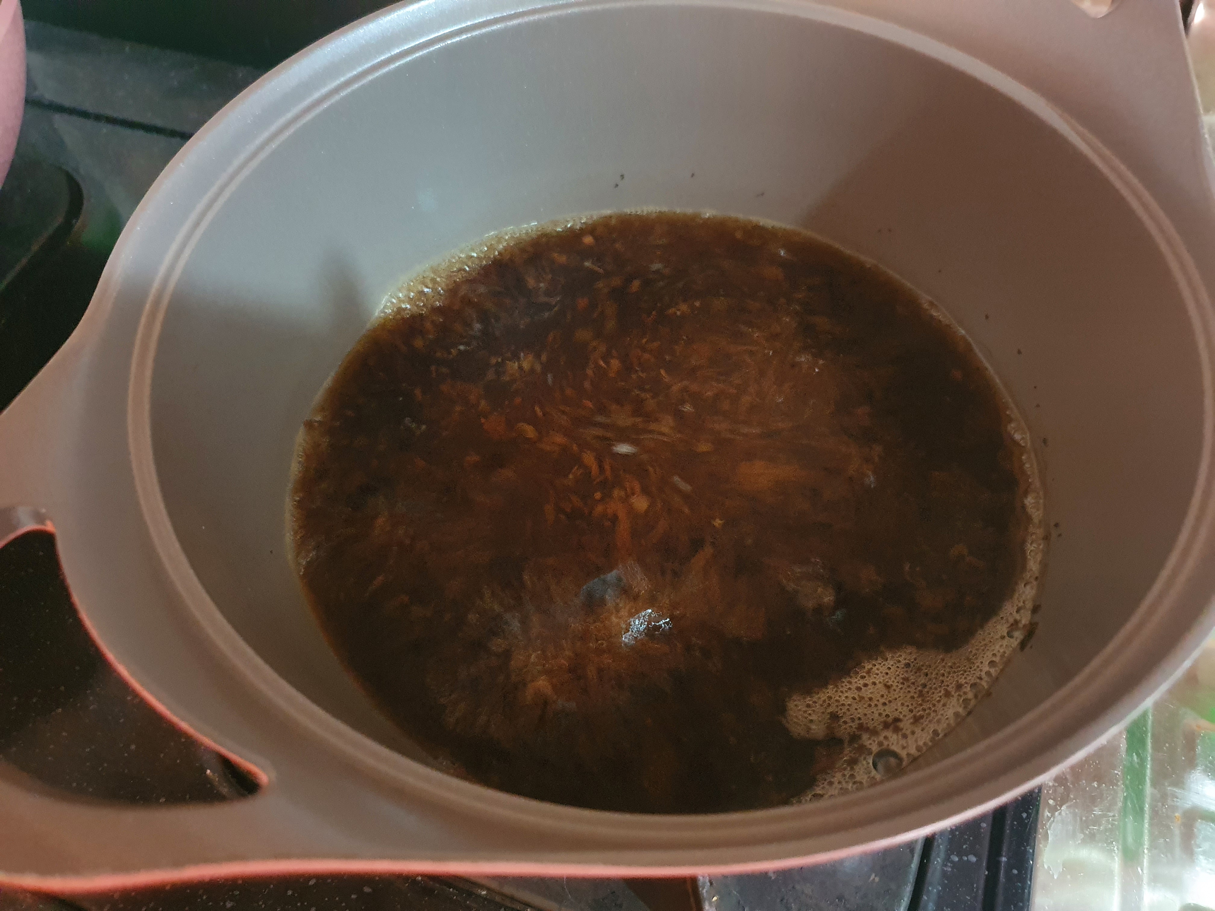 물을 600mL 넣고 끓인다. ( 300mL 씩 두번 넣었다. )