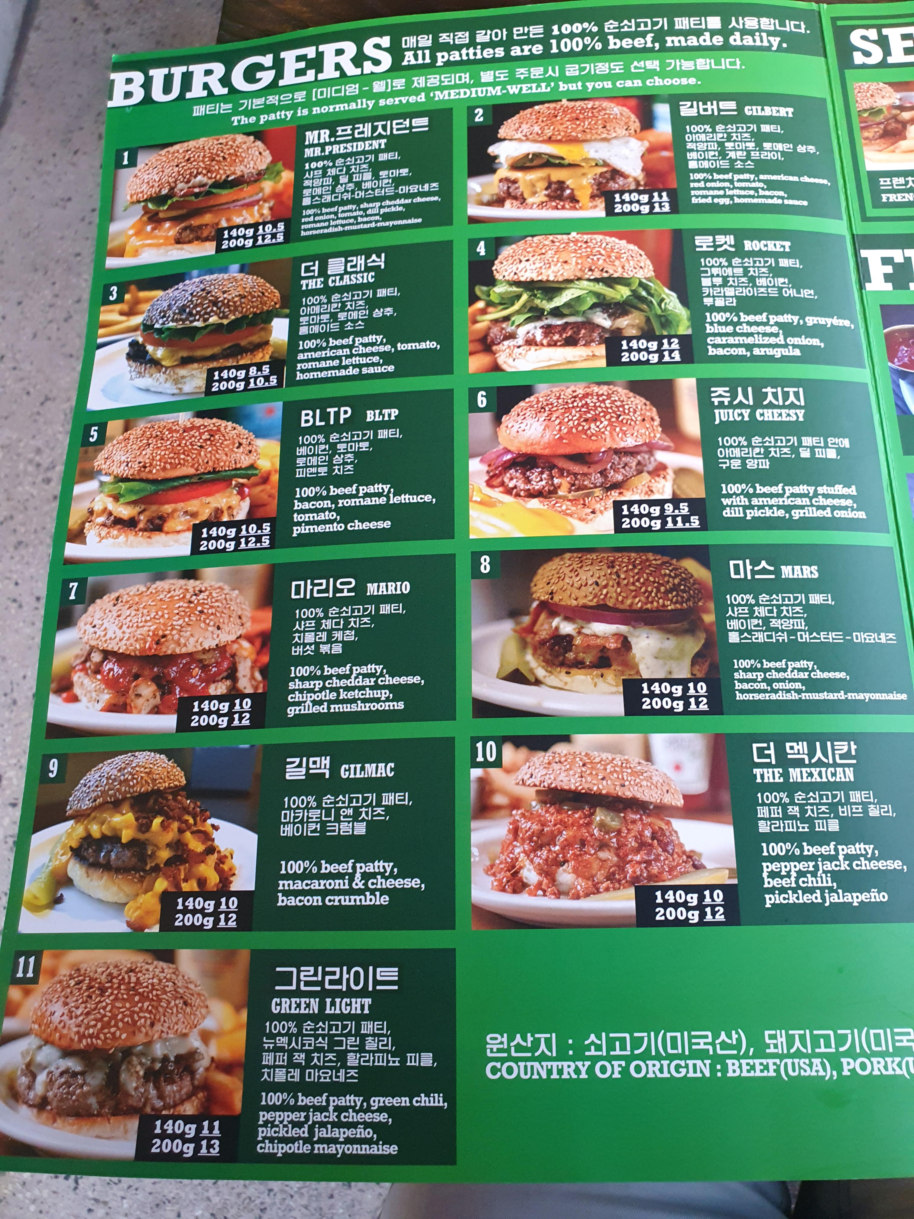 미국 냄새 물씬 나는 사이드 메뉴들도 팔고 있지만, 우리는 버거만 먹기로 한다.