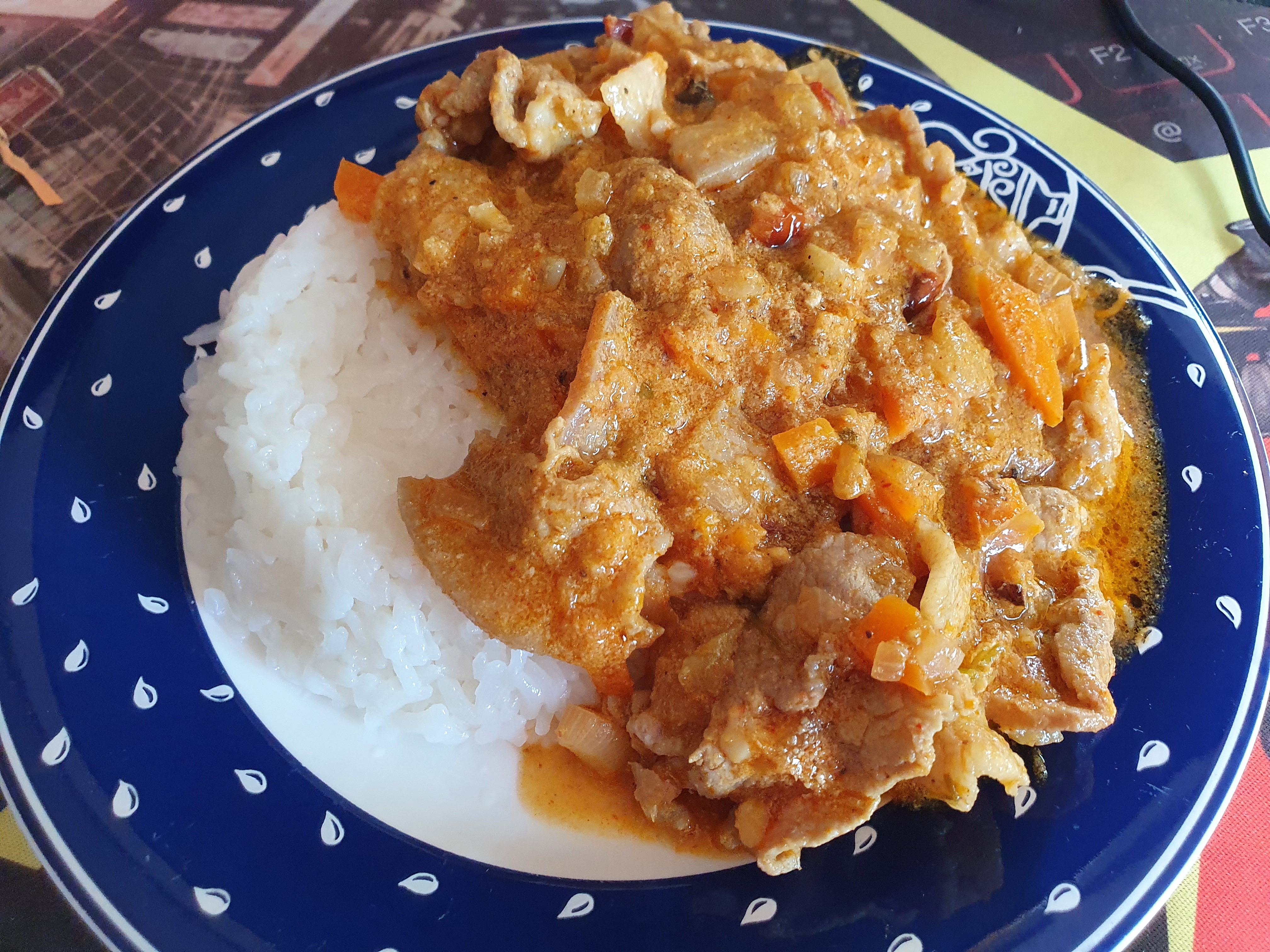확실히 돼지고기에 조화되는 커리 소스는 통후추의 맛이 진하게 나는 걸죽한 느낌의 녀석이 좋겠다는 생각이 들었다.