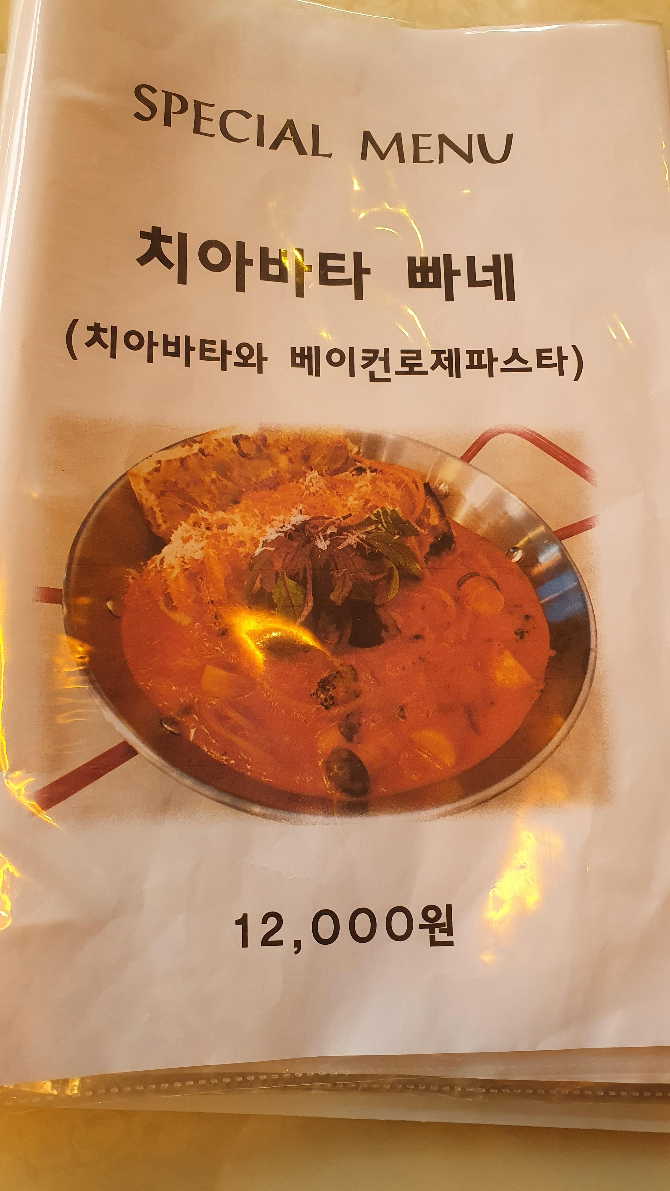 가장 첫 페이지에 시그니처 메뉴처럼 '치아바타 빠네' 가 있었다.