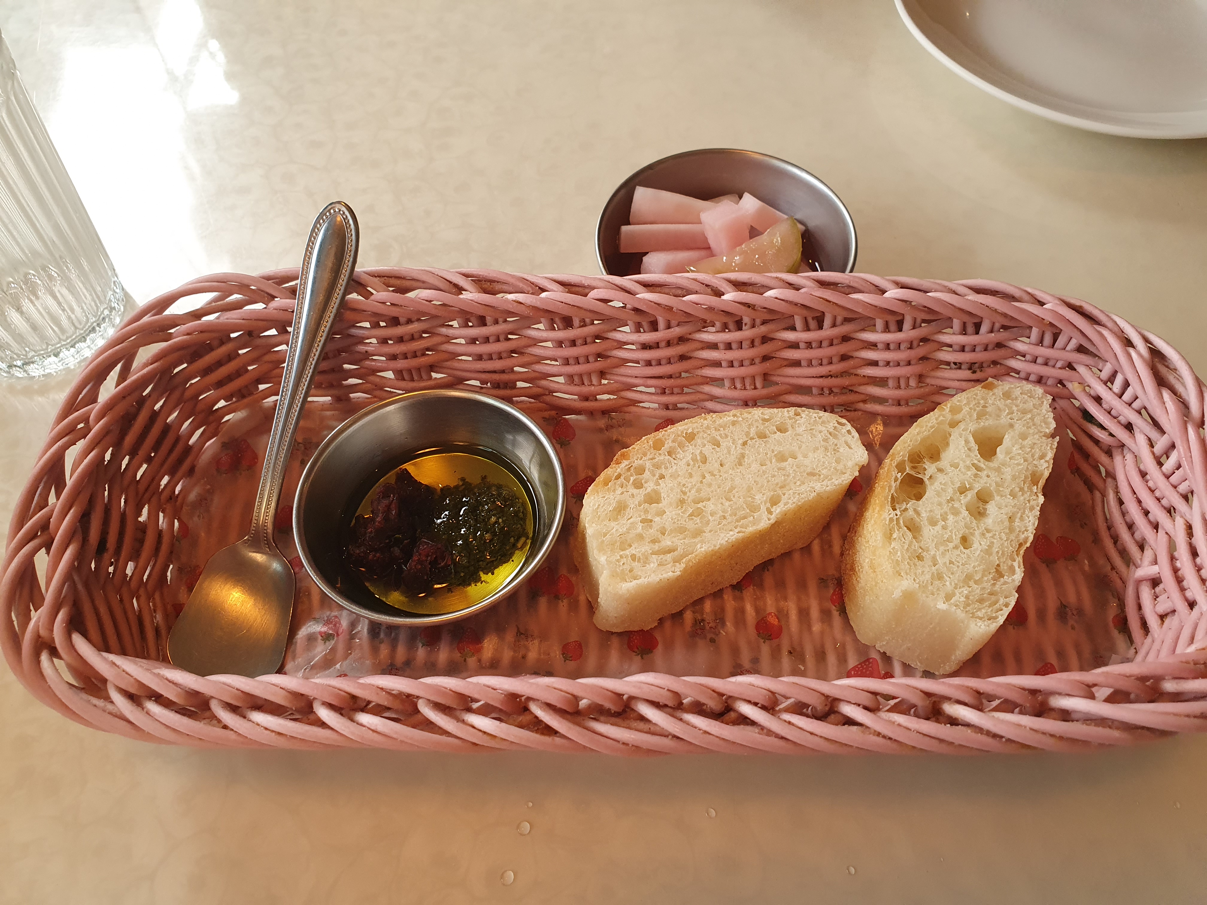 정확한 규칙은 모르겠지만, 1인 1식사 메뉴를 시키면 이렇게 치아바타를 식전빵으로 내주신다.