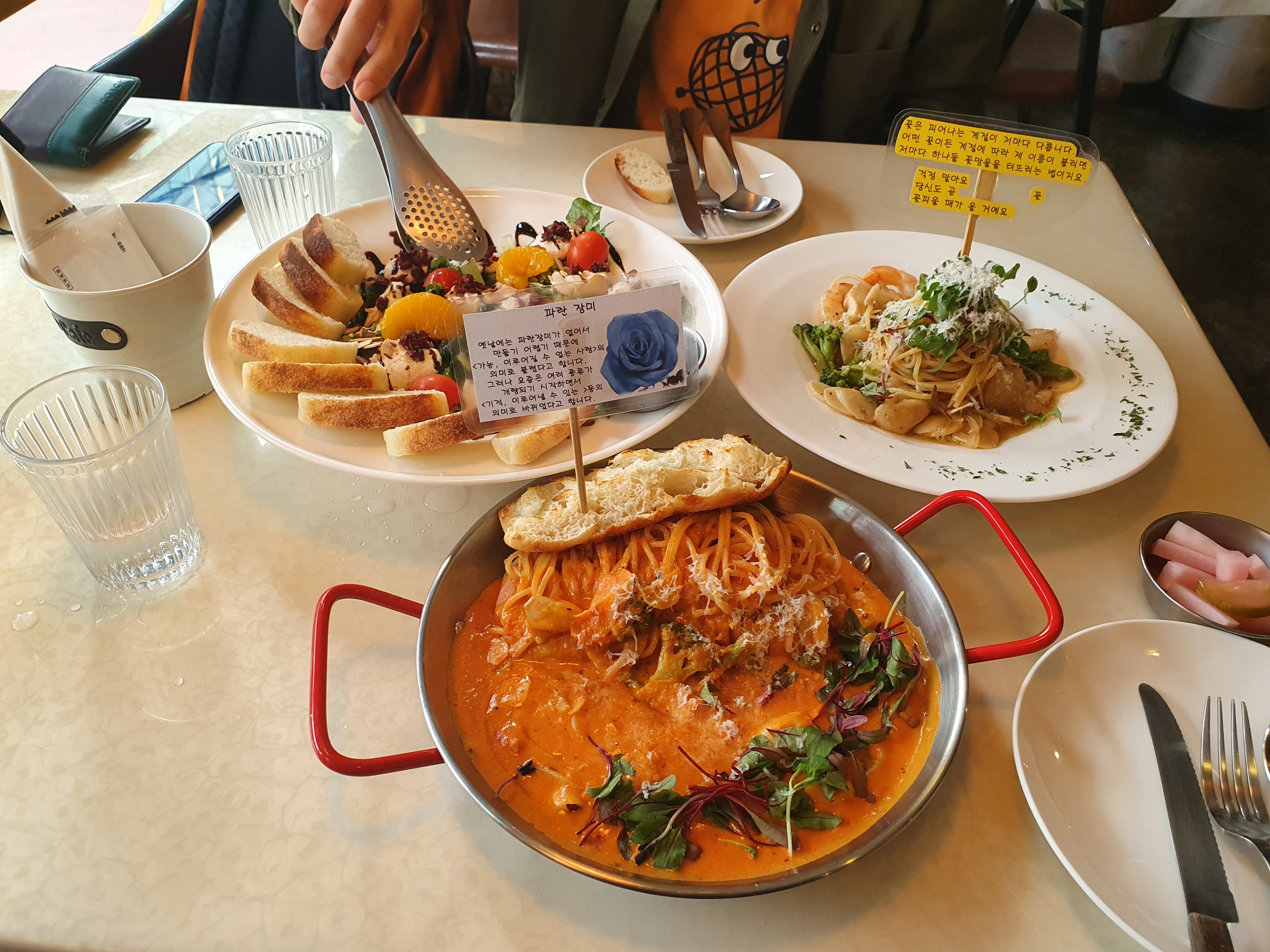 배가 고픈 친구는 1인 1메뉴로 만족하지 못하고, 리코타 치즈 샐러드까지 주문한다.