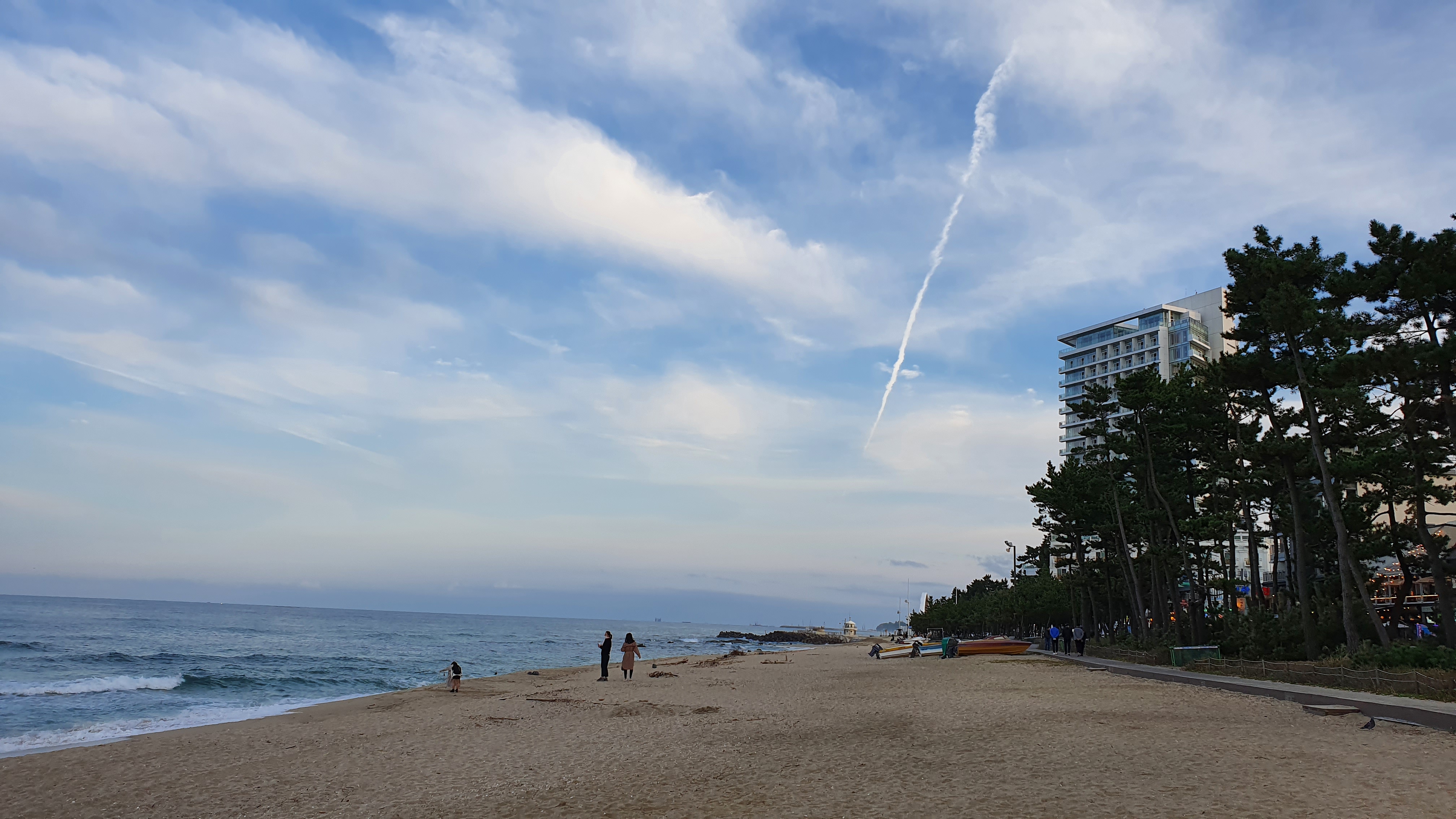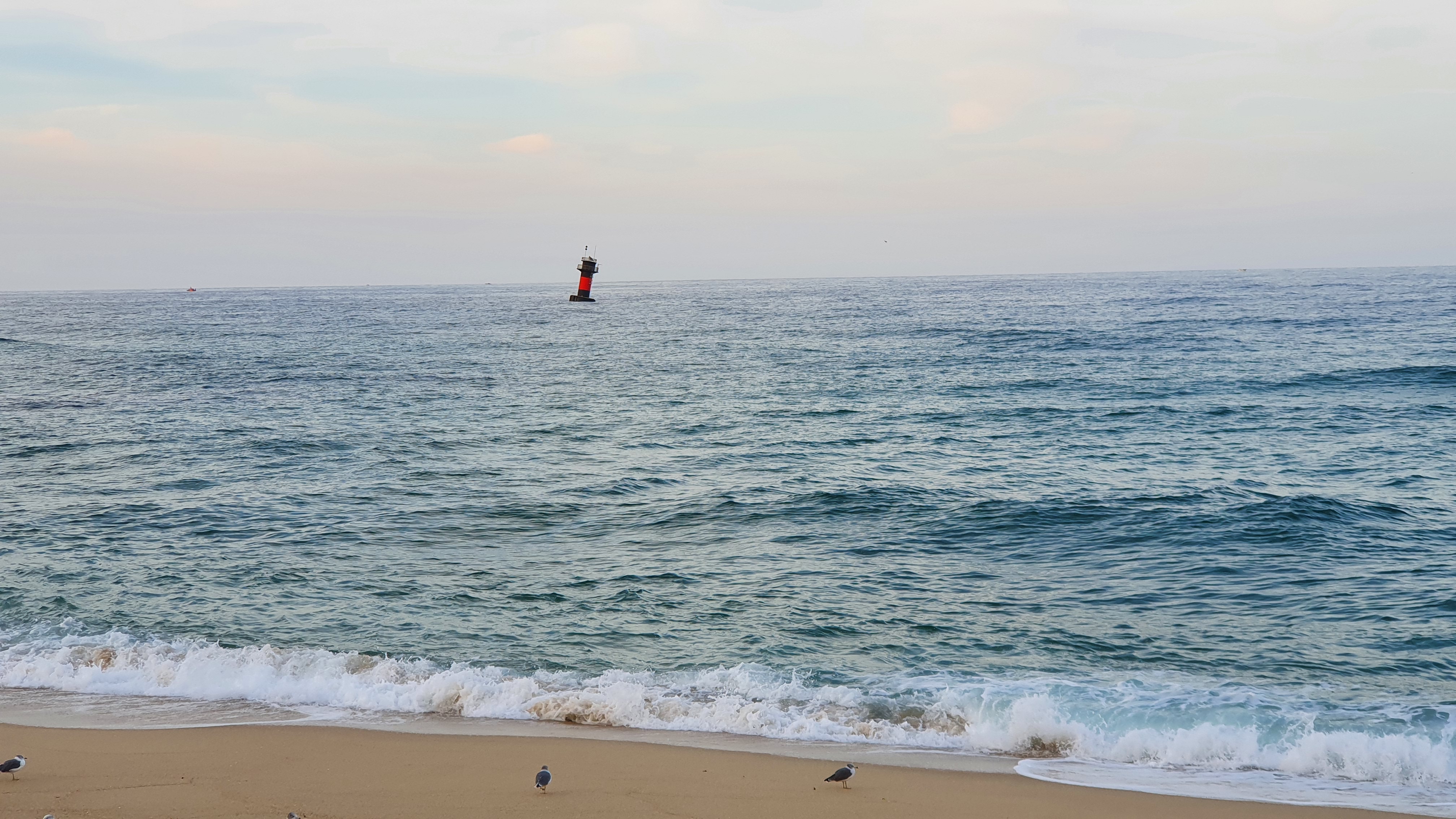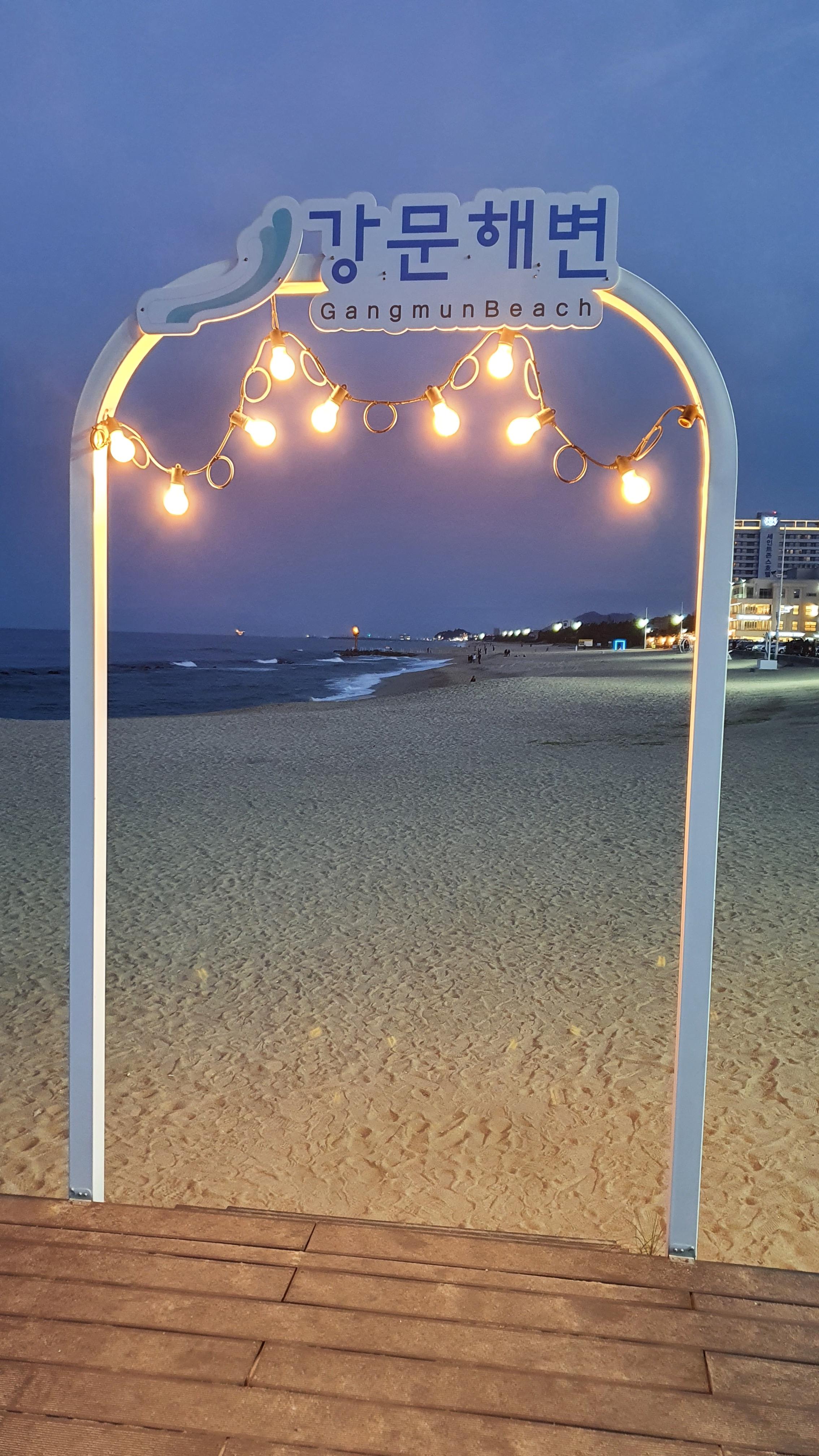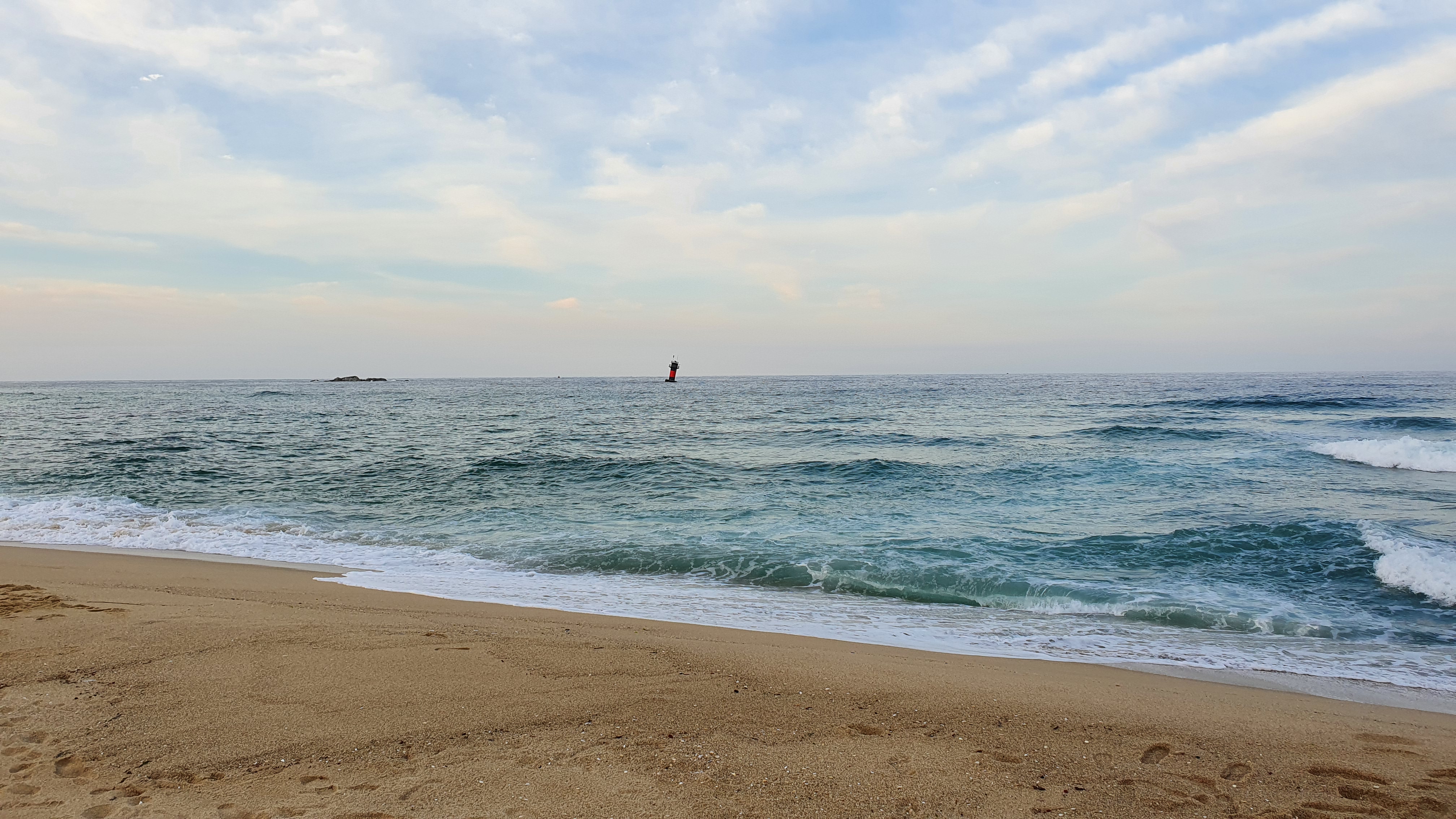 숙소가 경포 해변 바로 앞에 있어서 나가자 마자 바닷가로 진입 가능했다.