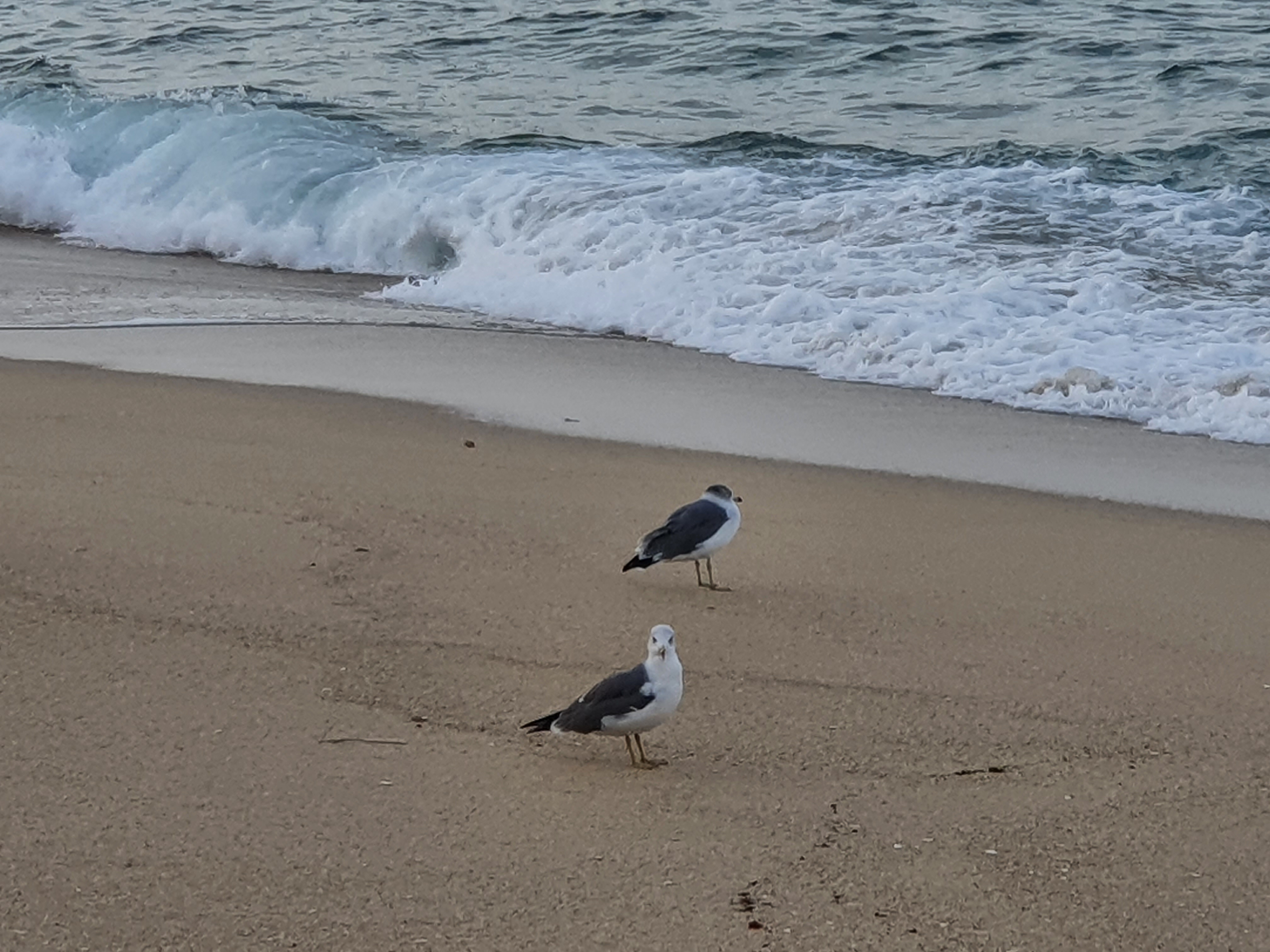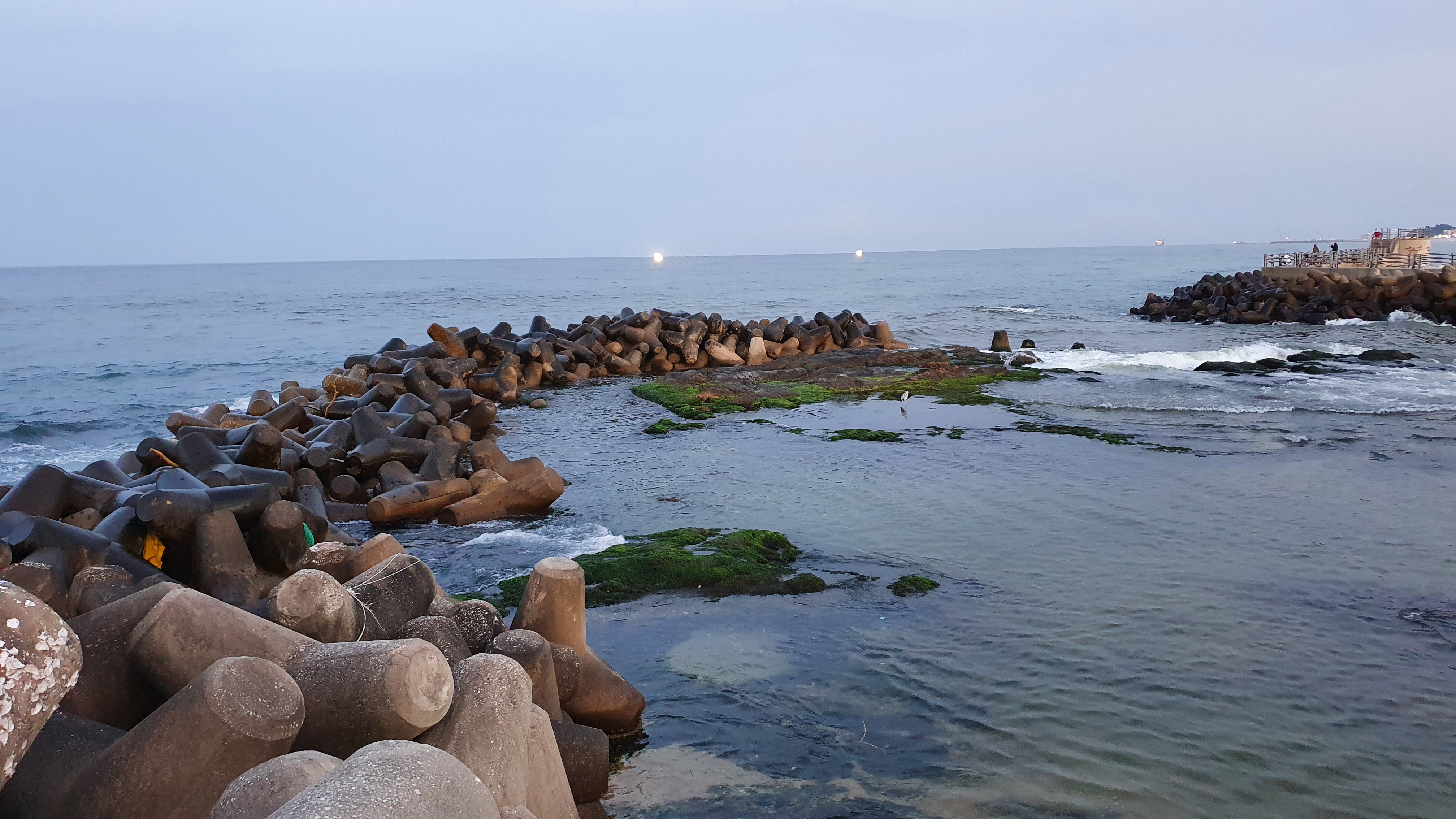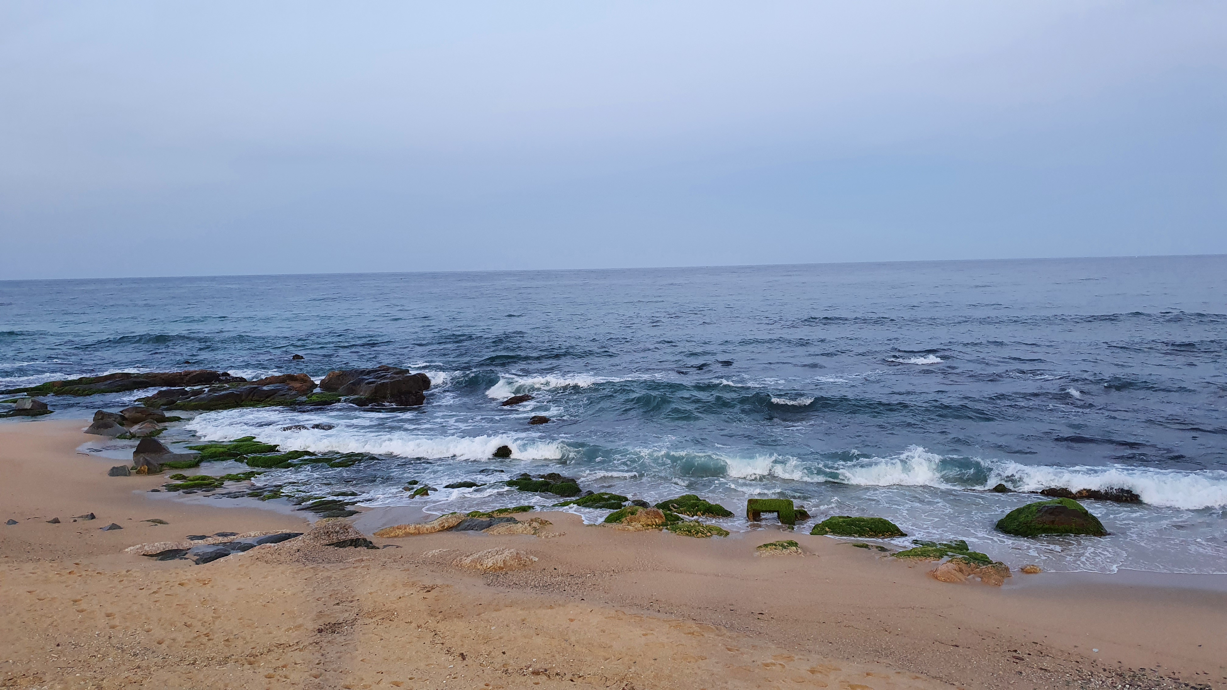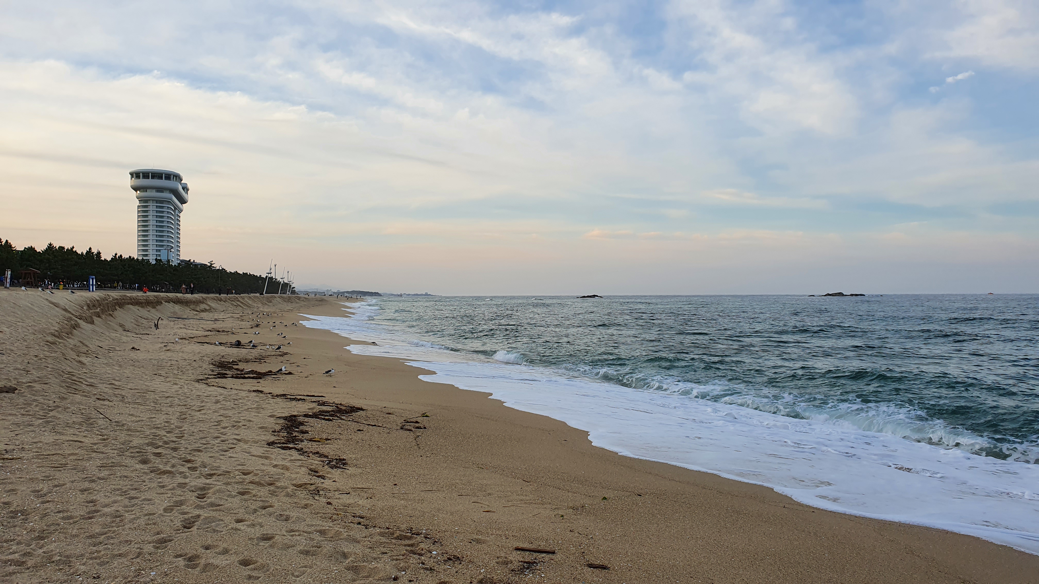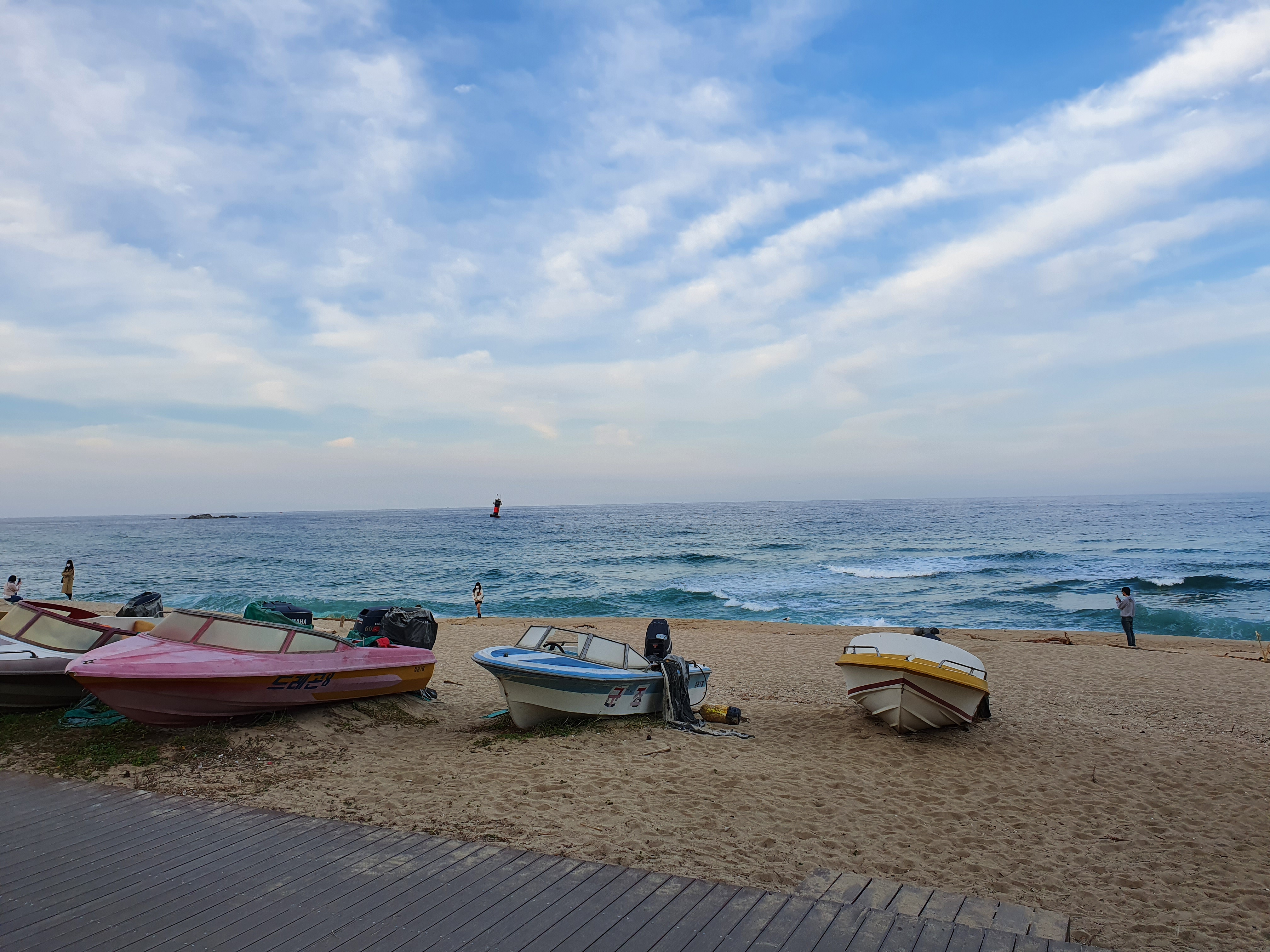 숙소가 경포 해변 바로 앞에 있어서 나가자 마자 바닷가로 진입 가능했다.