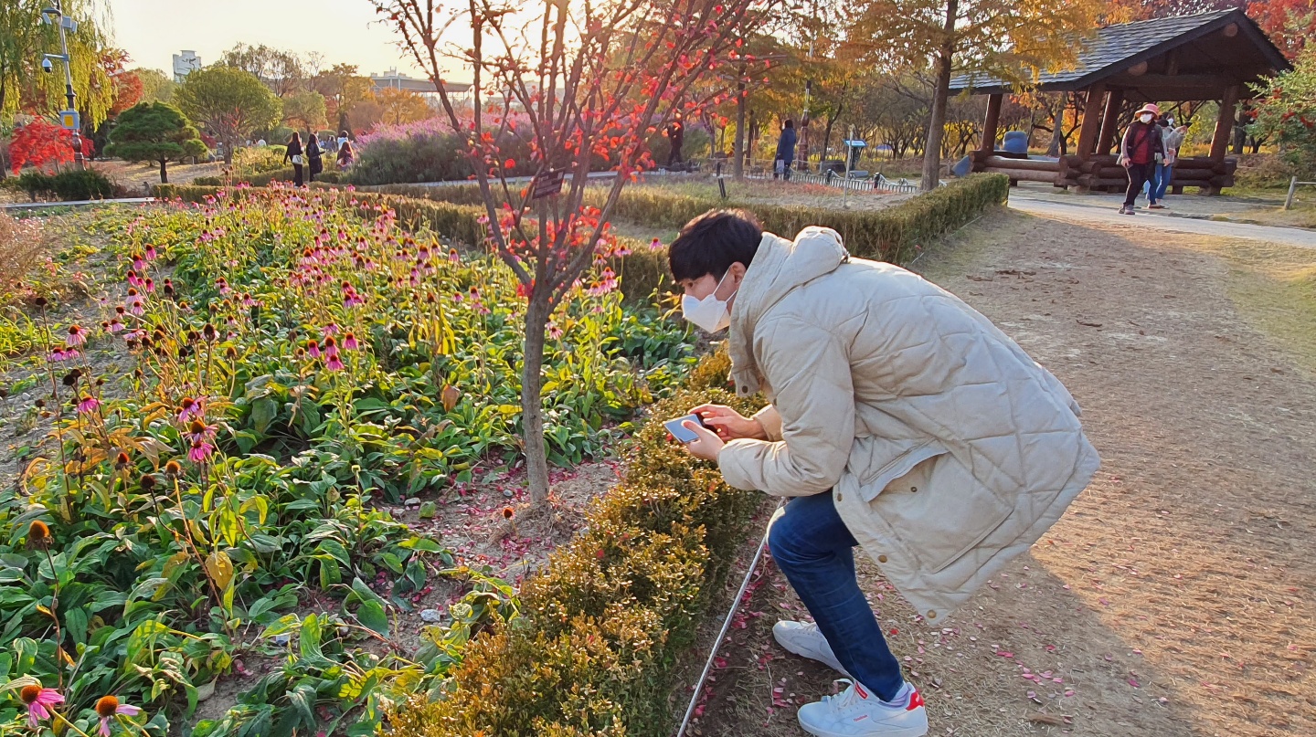 셔틀콕 모양의 꽃을 찍는 나를 찍어주셨다. ㅋ