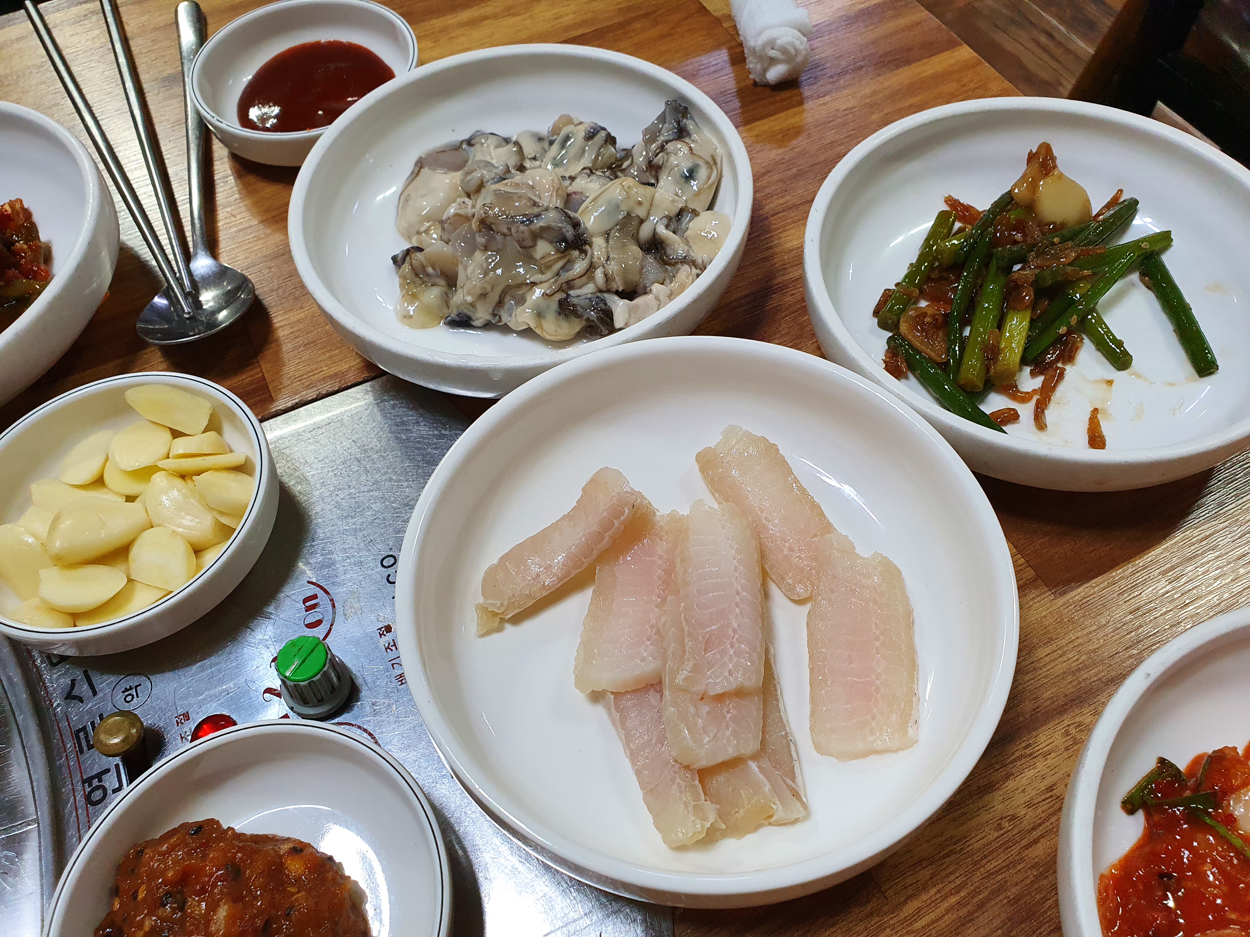 생굴 신선도도 좋고, 홍어의 삭힌 정도도 적당히 캬~ 하게 좋았다.