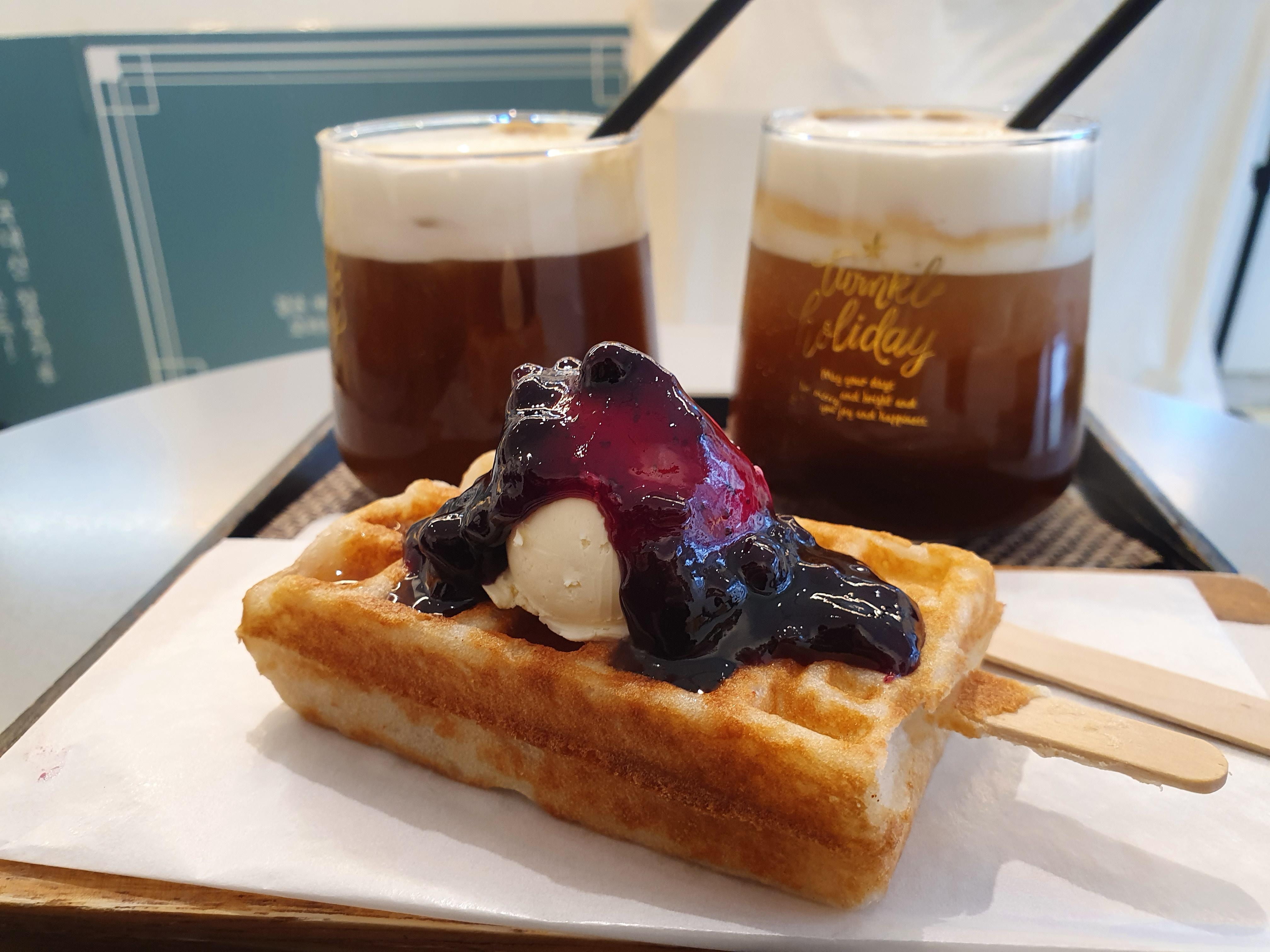 블루베리 크림치즈 찹쌀와플도 하나 추가한다. 가격은 5500원. (흑당 제플에 비해 아이스크림이 작게 나온다.)