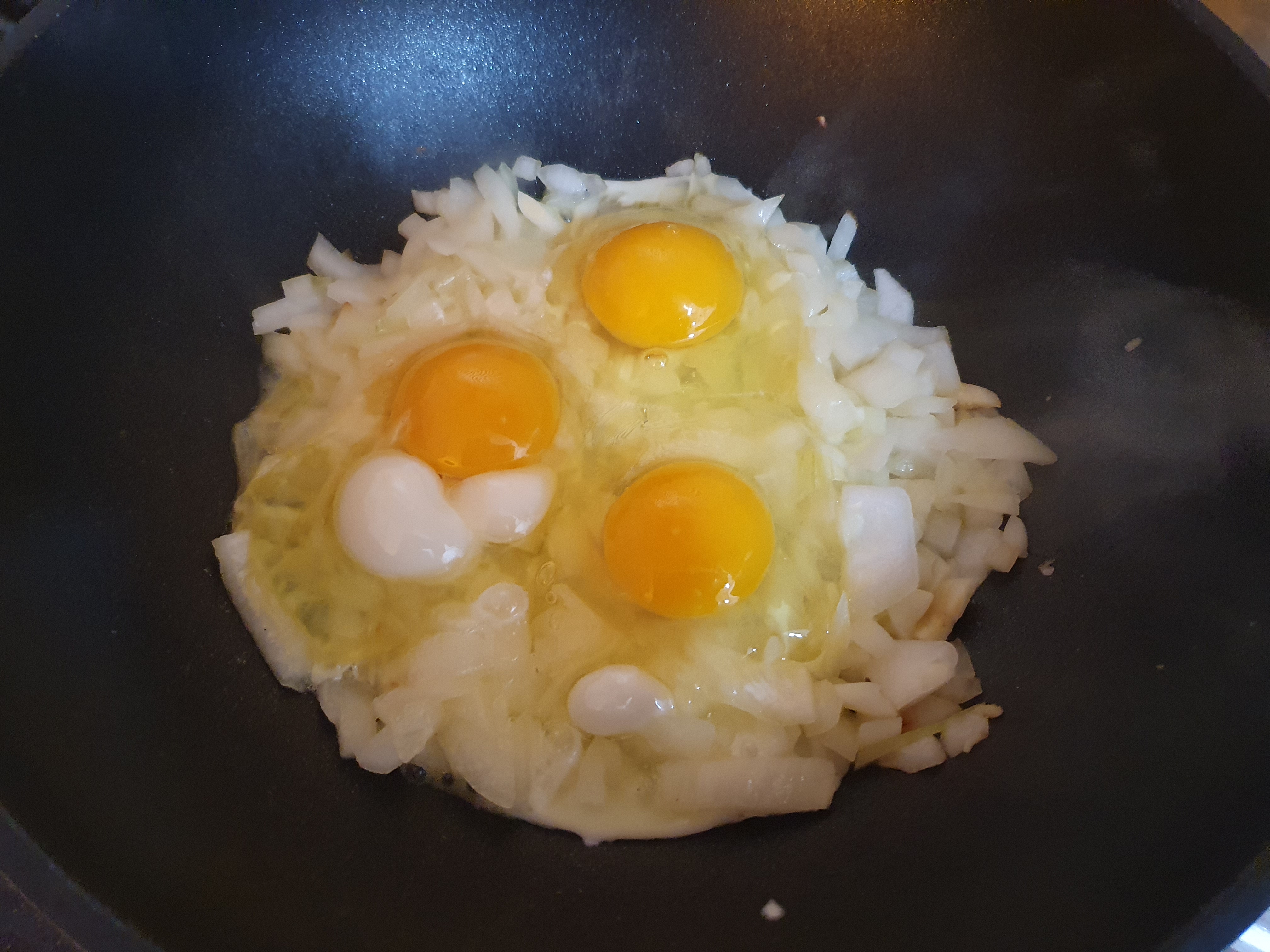 살짝 누리끼리한 빛을 보이려 할 때, 계란을 넣어주고,