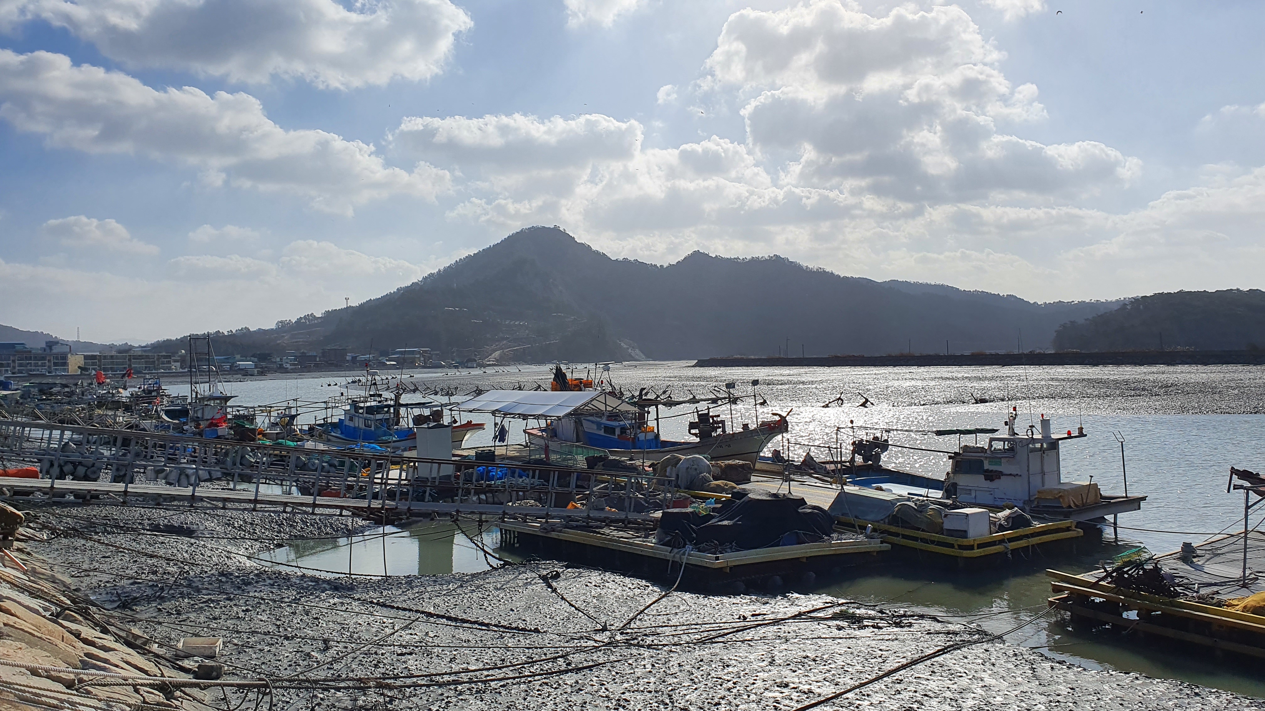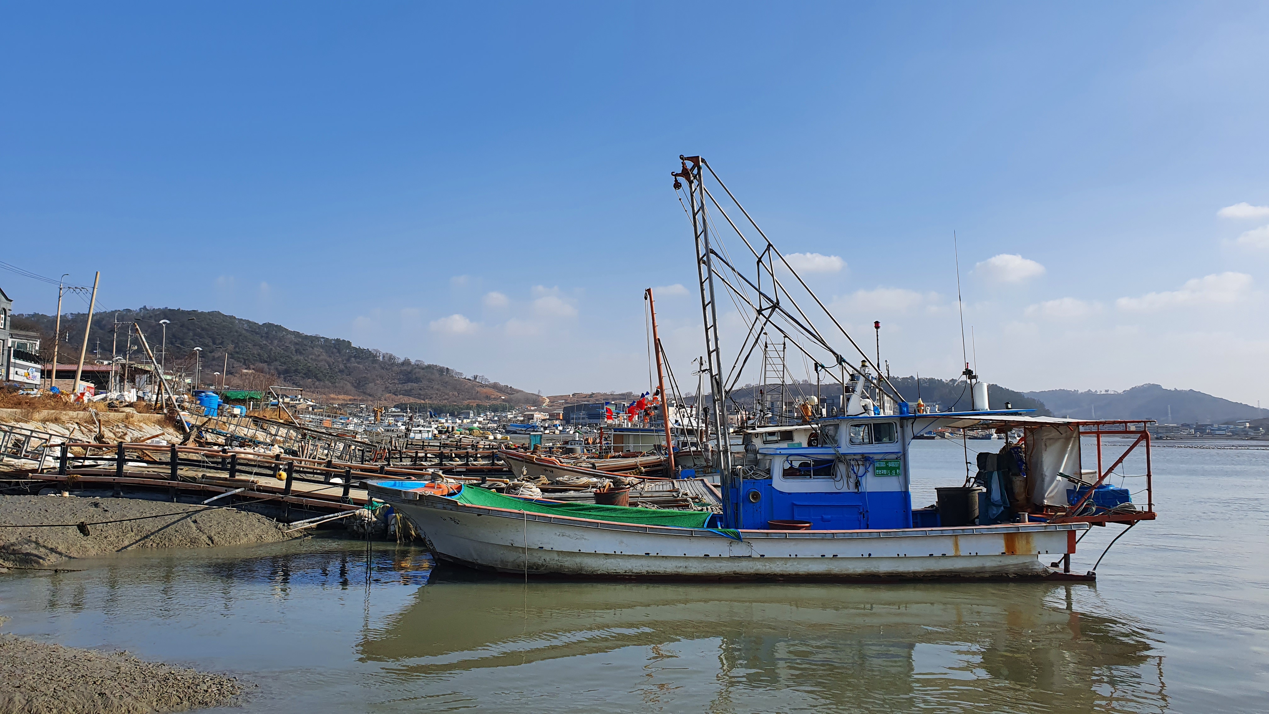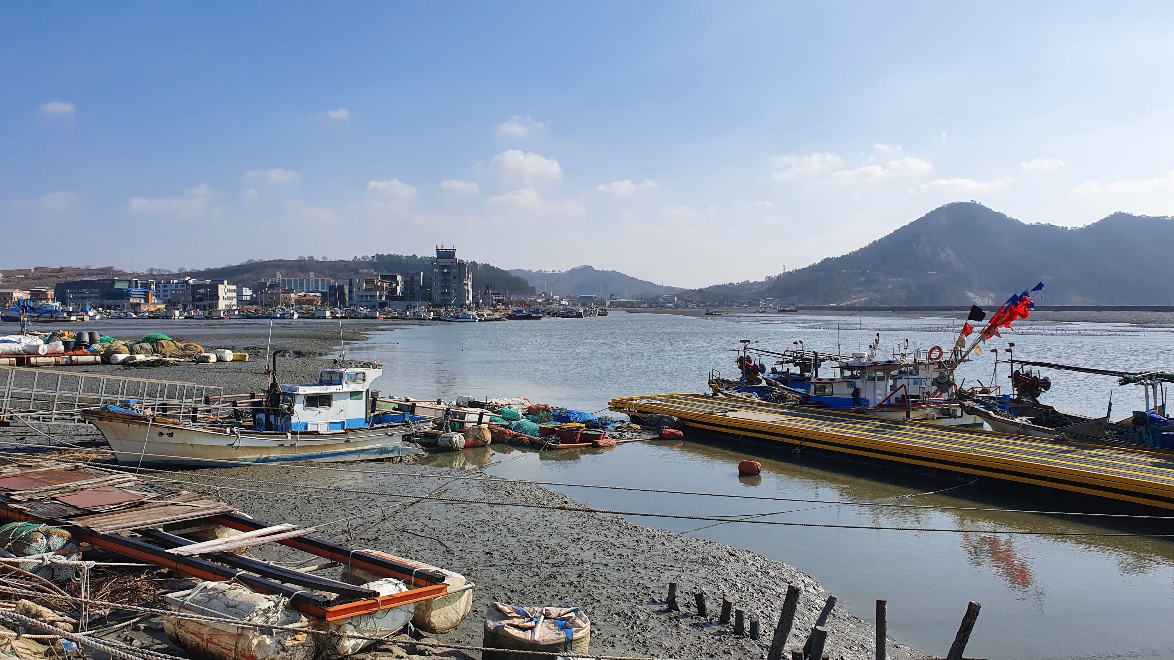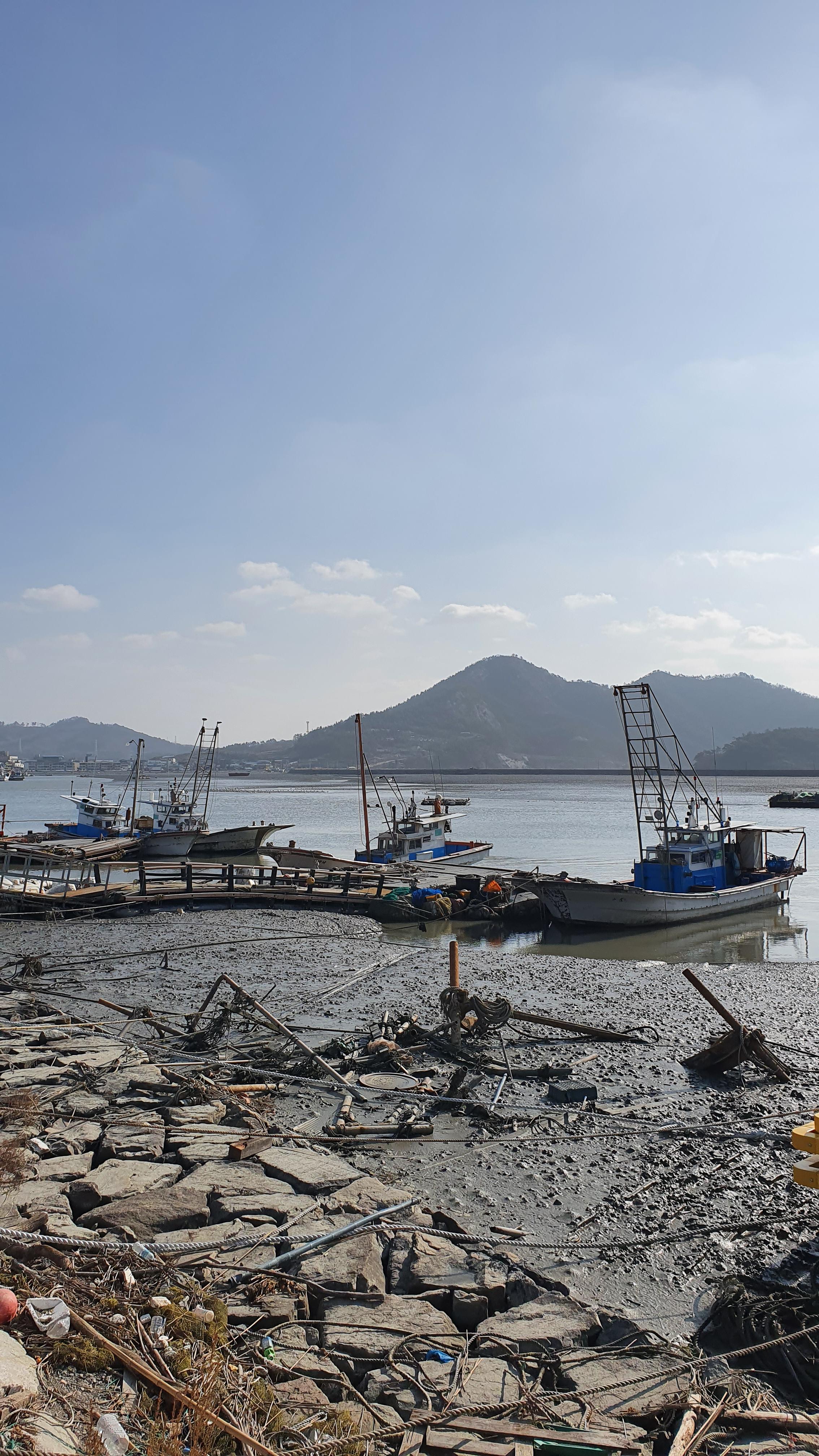 뻘 위에 정박된 배들이 인상적이다.