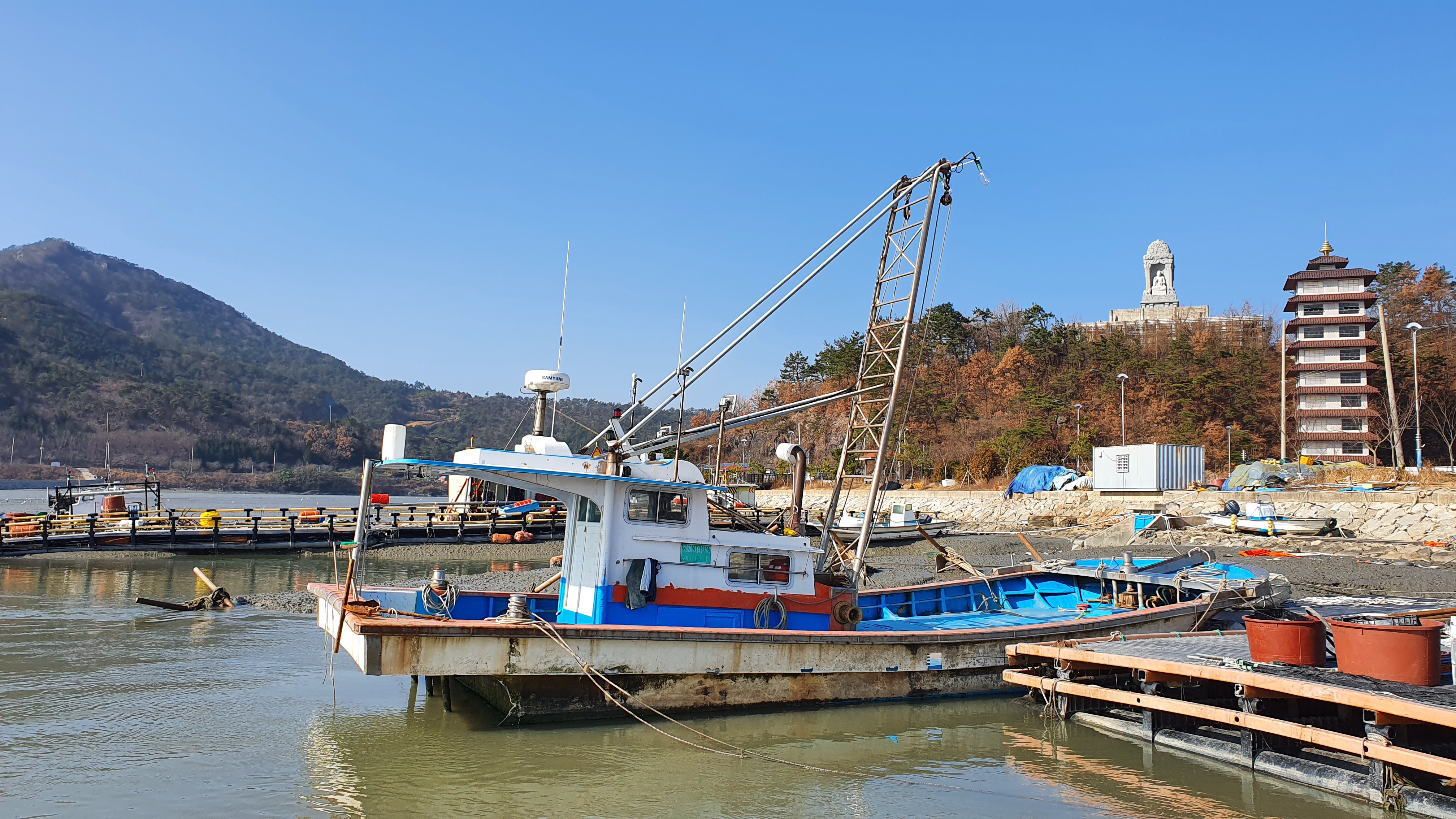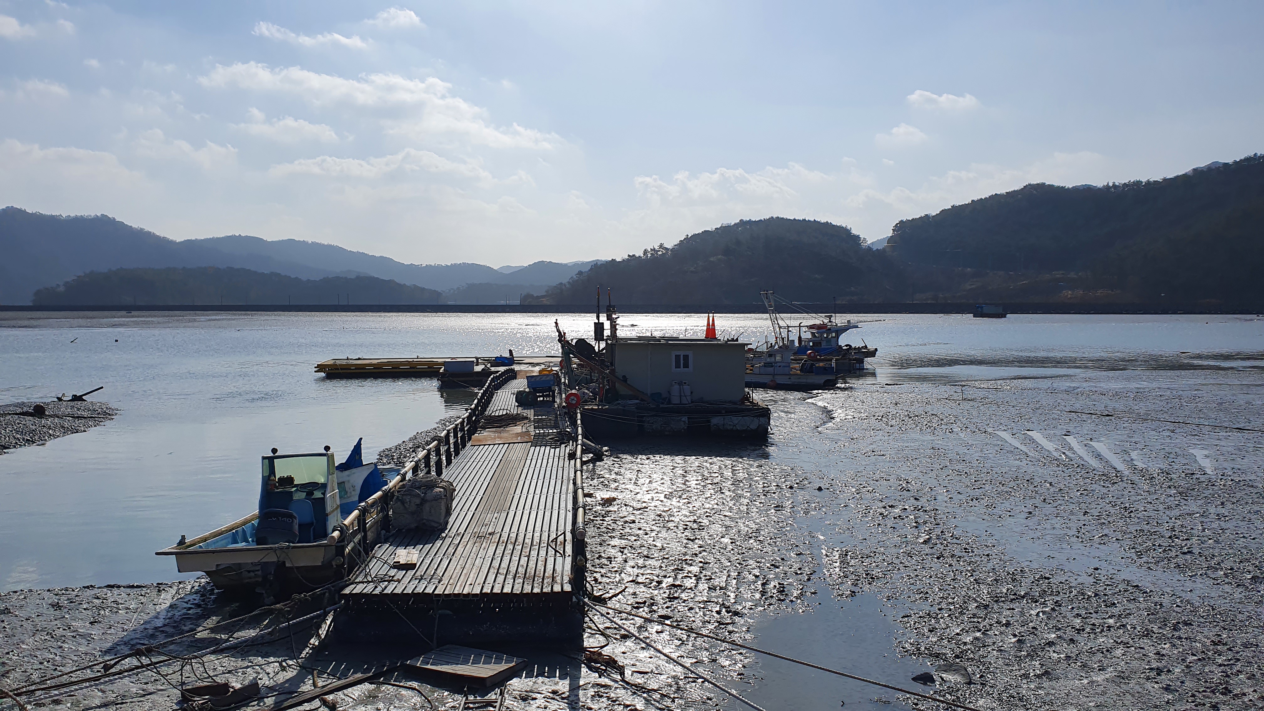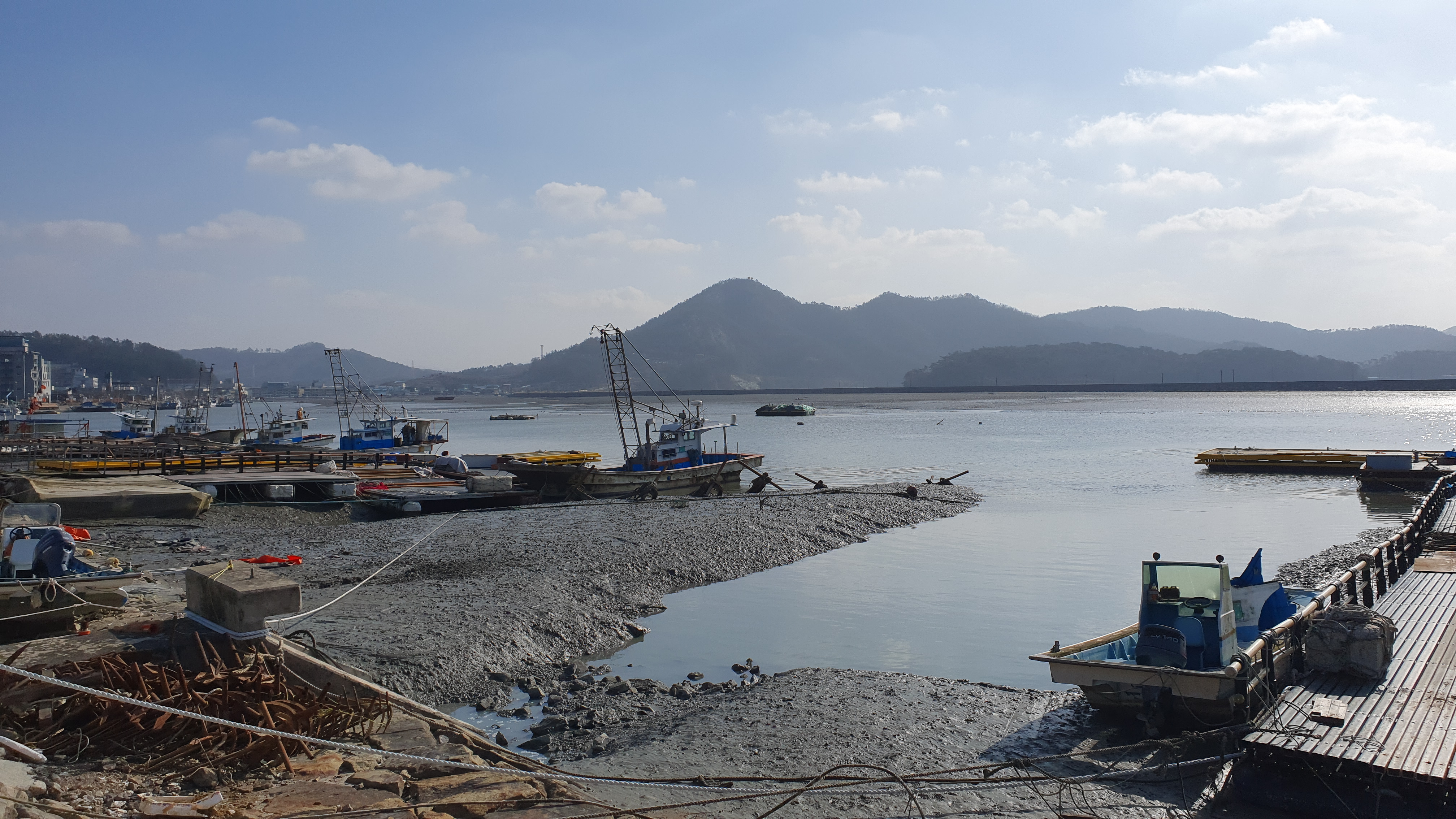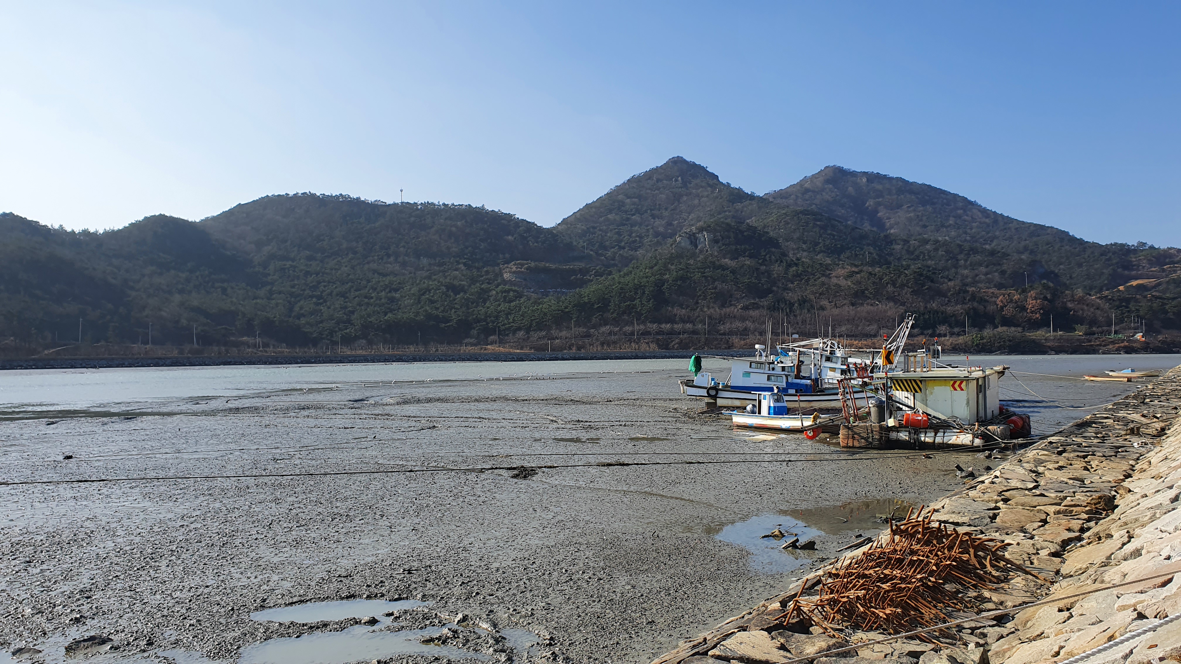 뻘 위에 정박된 배들이 인상적이다.