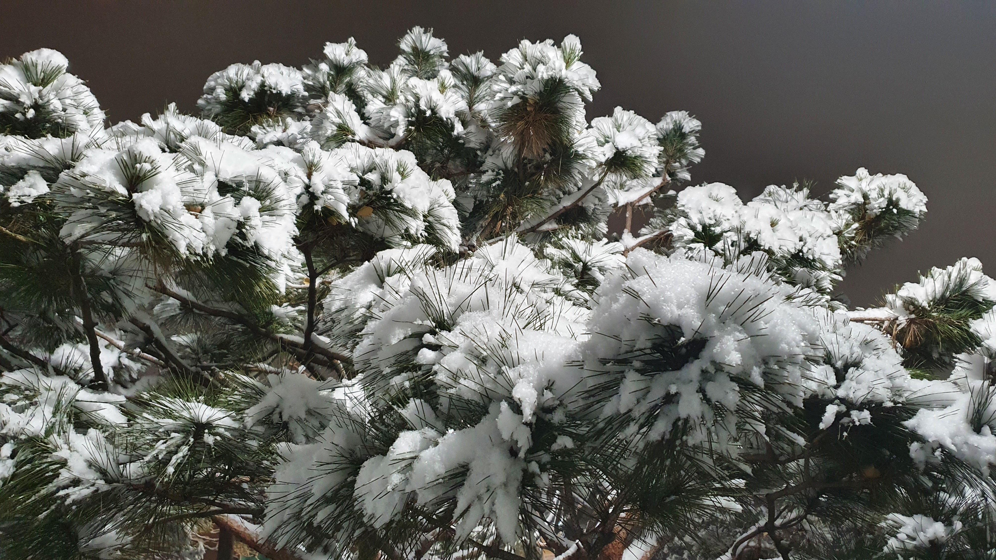 눈 쌓인 침엽수.