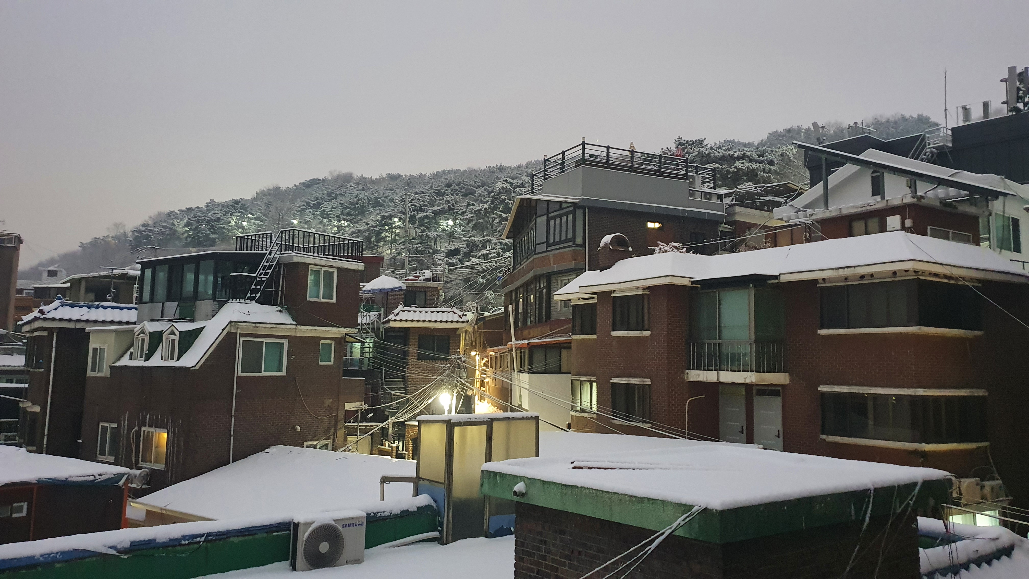 지붕 위에 눈들이 소복소복 쌓여간다.