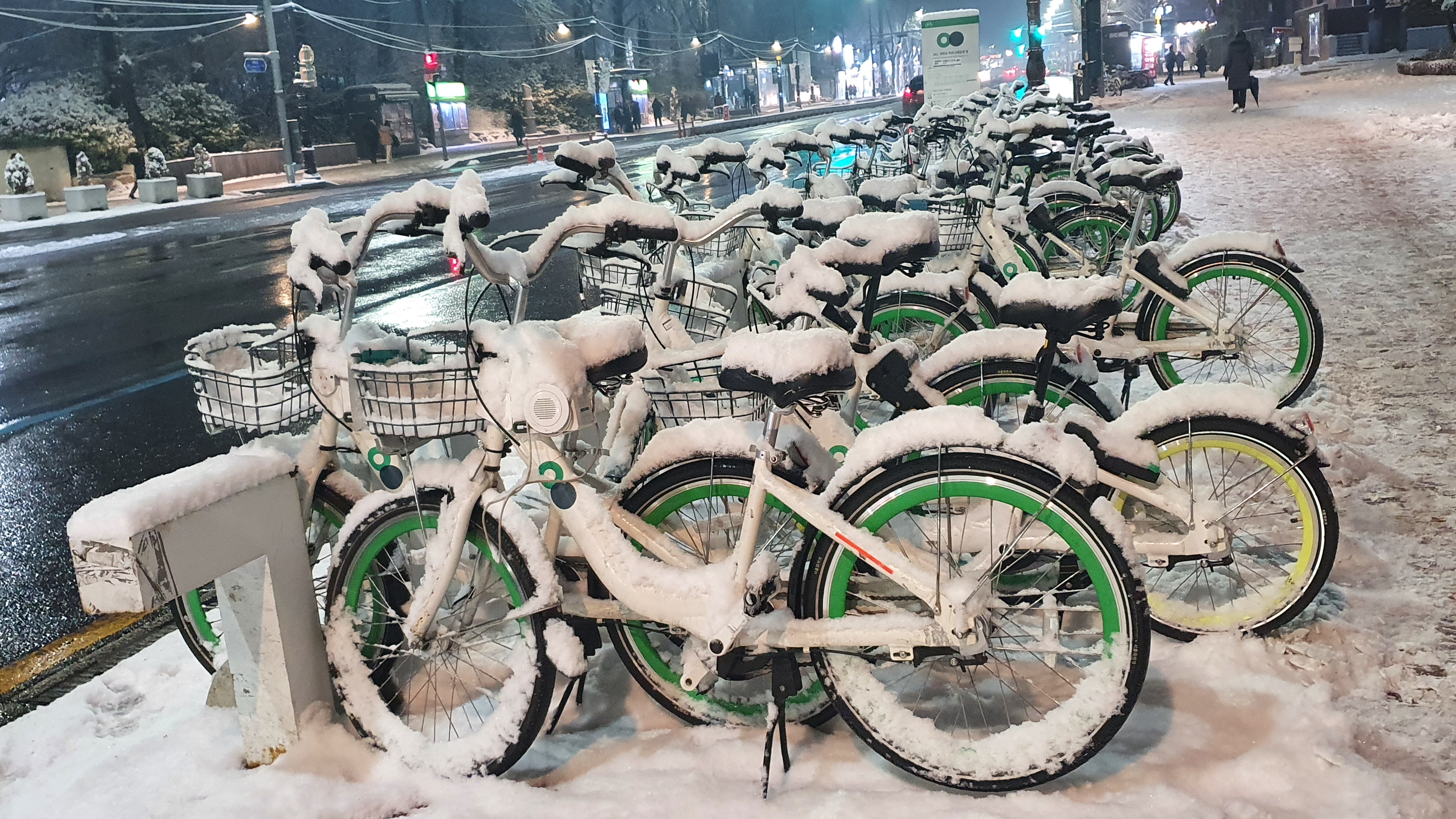 눈 쌓인 따릉이.