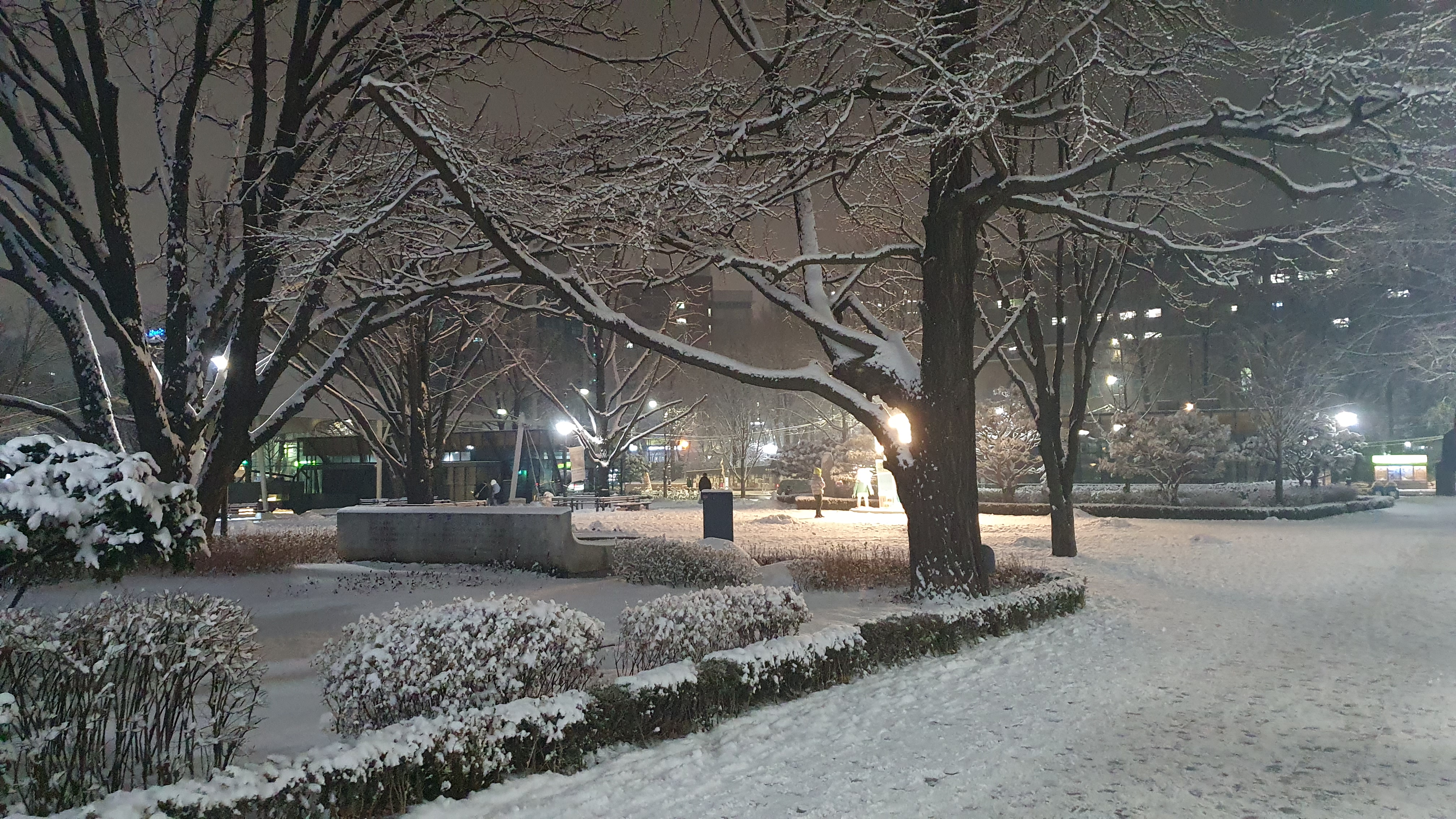 눈이 점점 쌓여가는 마로니에 공원.