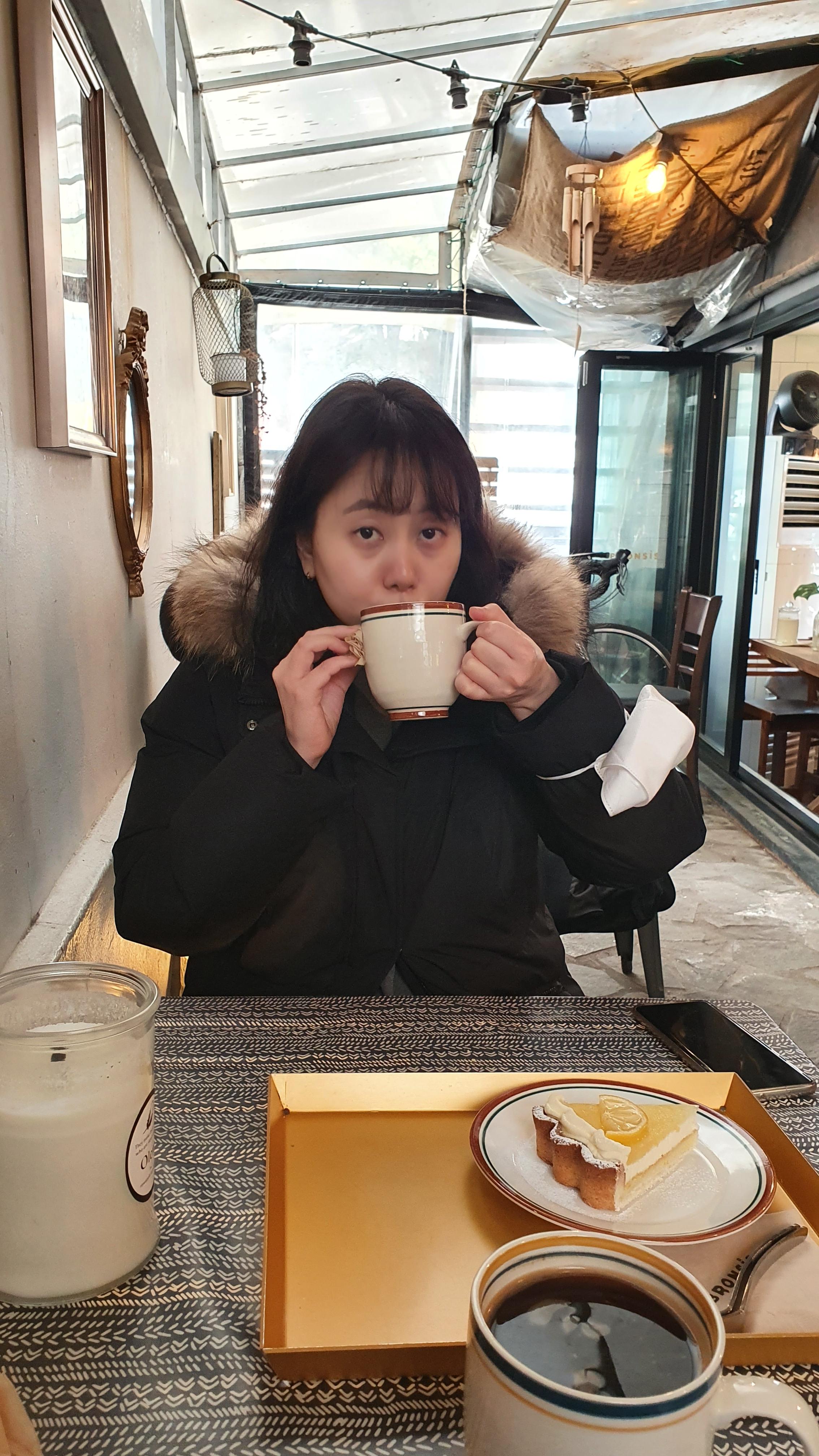 카페에 들어가서 따뜻한 커피를 마시며 이야기를 더 나누기로 한다.