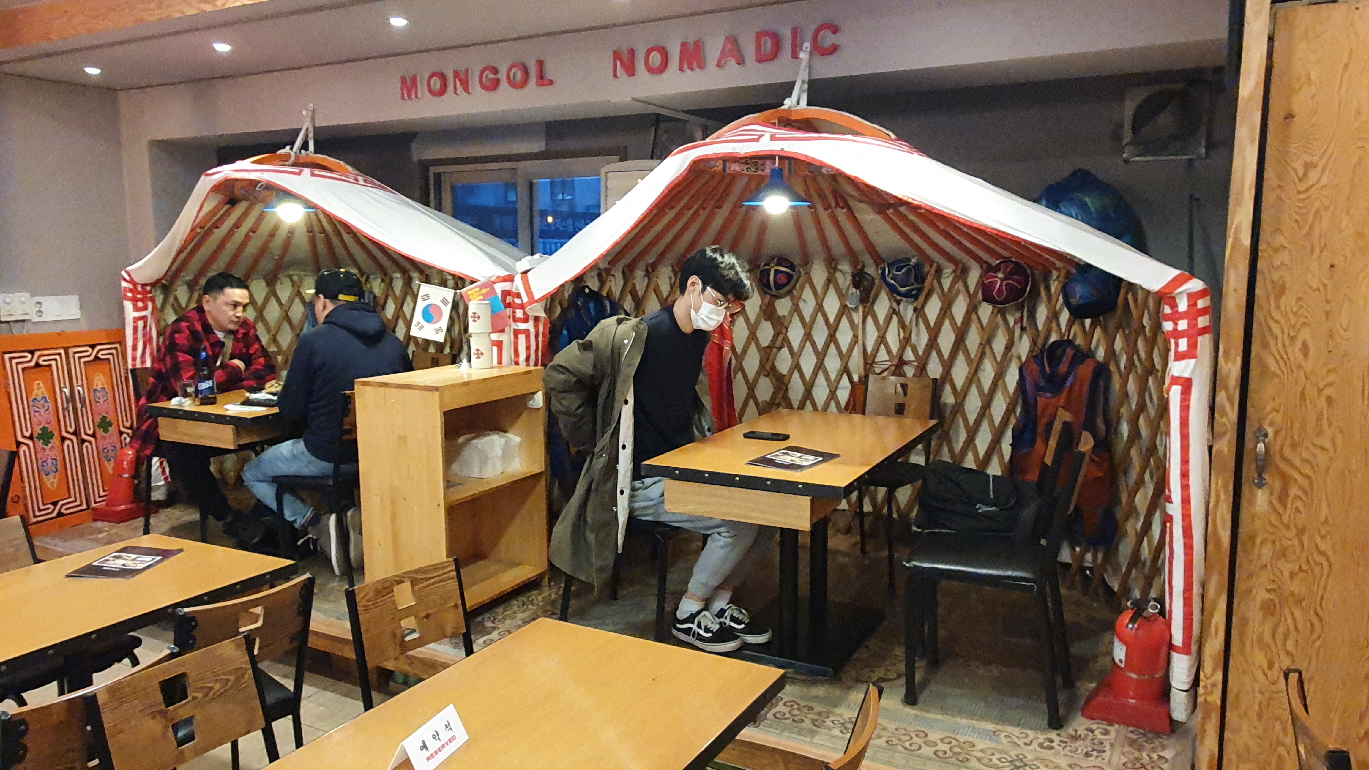 한쪽은 '게르(гэр, Ger)' 를 연상케 하는 좌석도 있다.