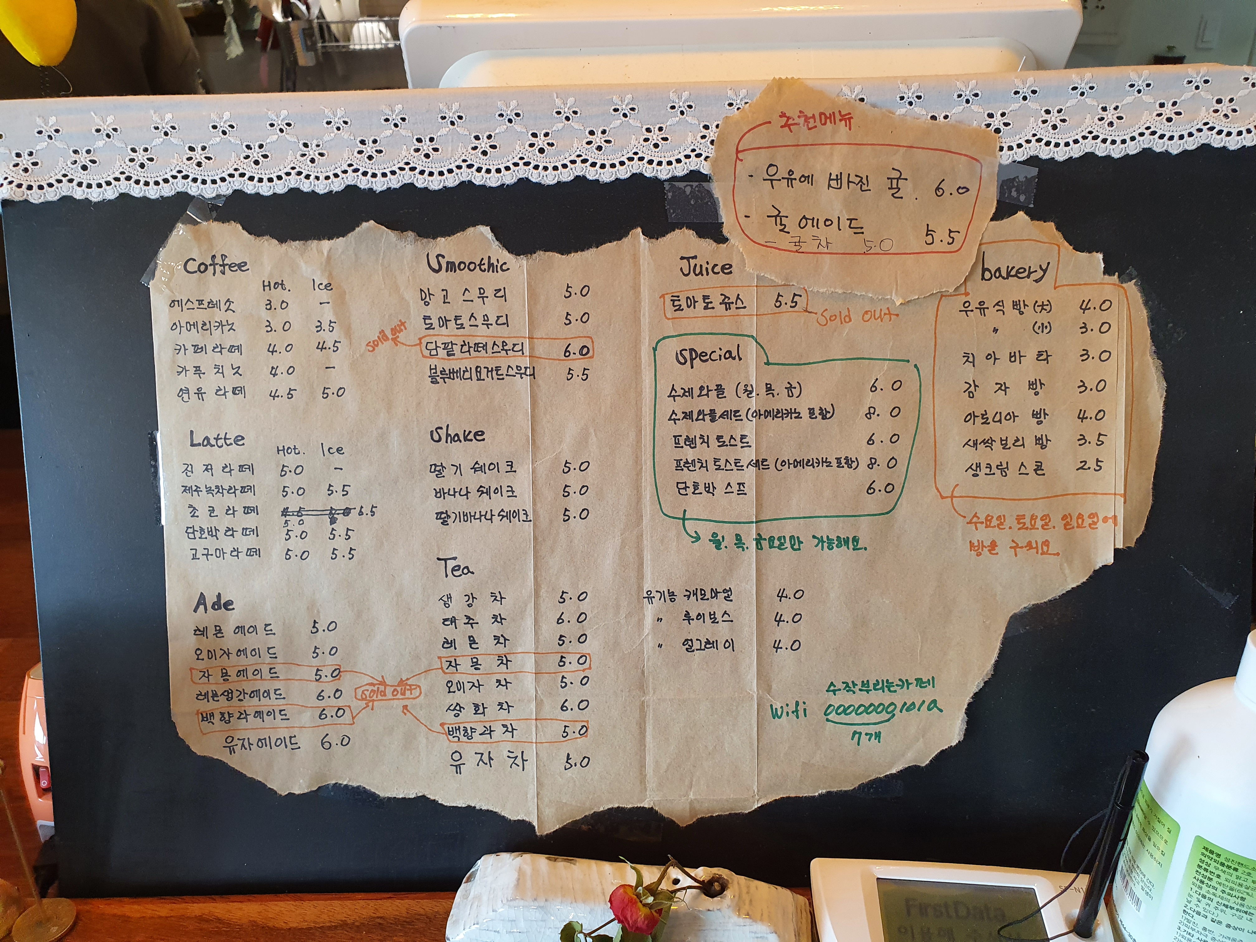 안타깝게도 우리가 방문한 날 베이커리류는 운영하지 않는 날이라 음료만 된다고 했다.